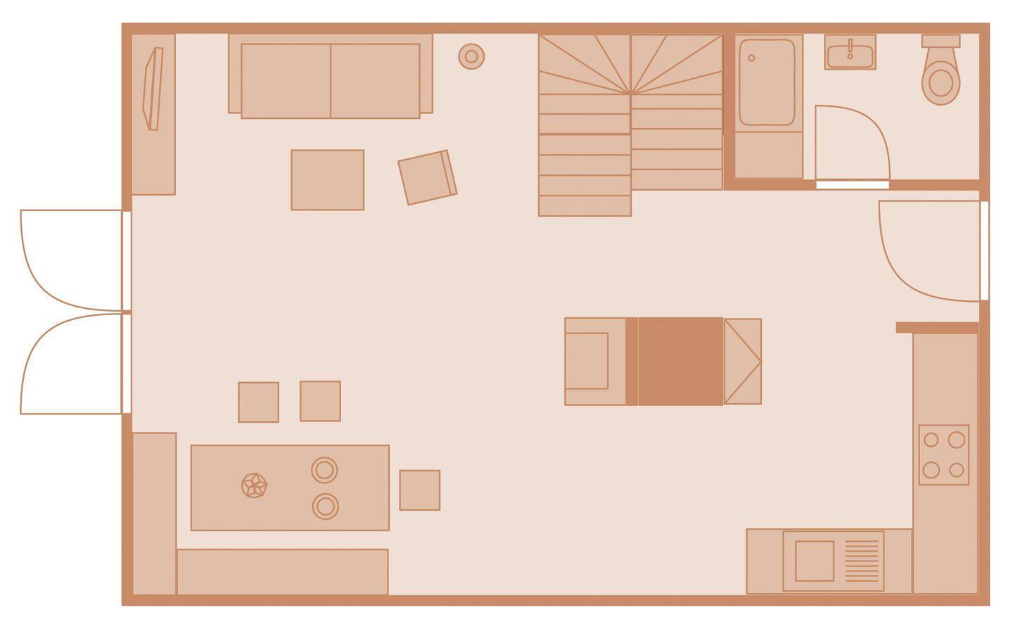 Das Ferien Domizil im Benendikenwai 7 (ca. 110 m²) geht über zwei Etagen mit folgender Aufteilung: