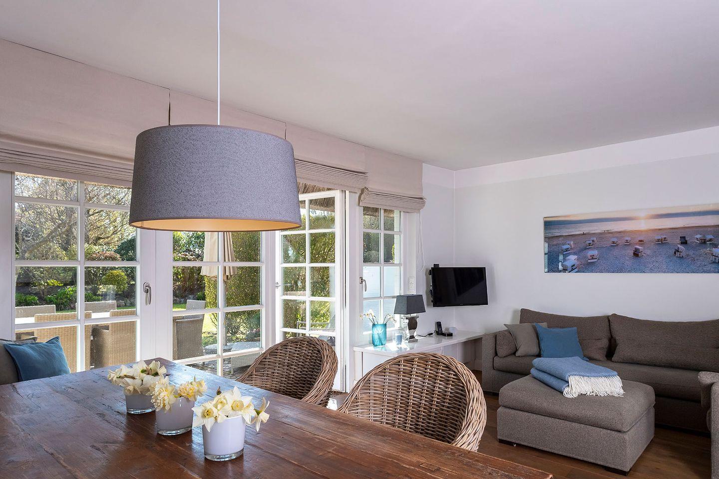 Das exklusive 5-Sterne Ferien Domizil im Benendikenwai 7 in Keitum erstreckt sich über zwei Ebenen und bietet auf 100 m² in moderner Ausstattung viel Platz für maximal vier Personen. Das helle und offene Wohnzimmer mit Essplatz am Kamin als Mittelpunkt sowie die moderne Küche vermitteln ein Gefühl anspruchsvollen und zeitgemäßen Wohnens. Die Köche des Hauses müssen sich ebenso wenig der Gemeinschaft entziehen, wie die am alten Esstisch im Gespräch oder im Spiel vertieften Gäste. Der offene Raum schafft Verbindung. Das Domizil liegt in unmittelbarer Nähe des BENEN-DIKEN-HOF und begeistert unter anderem durch seinen großzügigen Wohnbereich. Die nach Südosten ausgerichtete Terrasse erweitert den Wohnbereich zu den Sonnenplätzen im Garten. Geschmackvolle Gartenmöbel auf der in Naturstein ausgeführten Terrasse laden zum Genießen und Entspannen ein. Gäste, die die Angebote des Hotels – wie die Nutzung des Wellness-Bereiches, der Massagen und der Beauty – intensiver buchen möchten, haben von hier aus eine gute Anbindung zur Hotelanlage.
