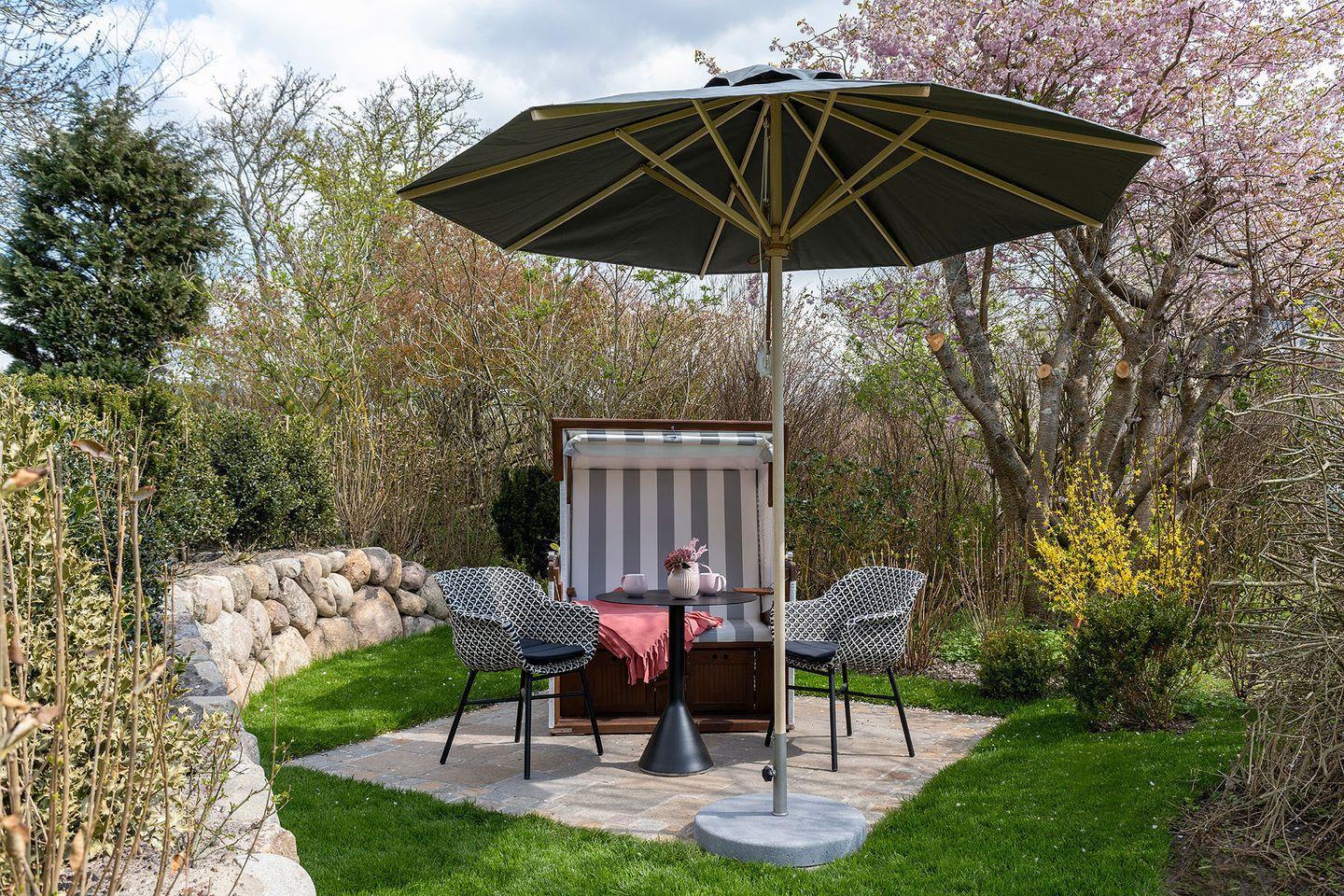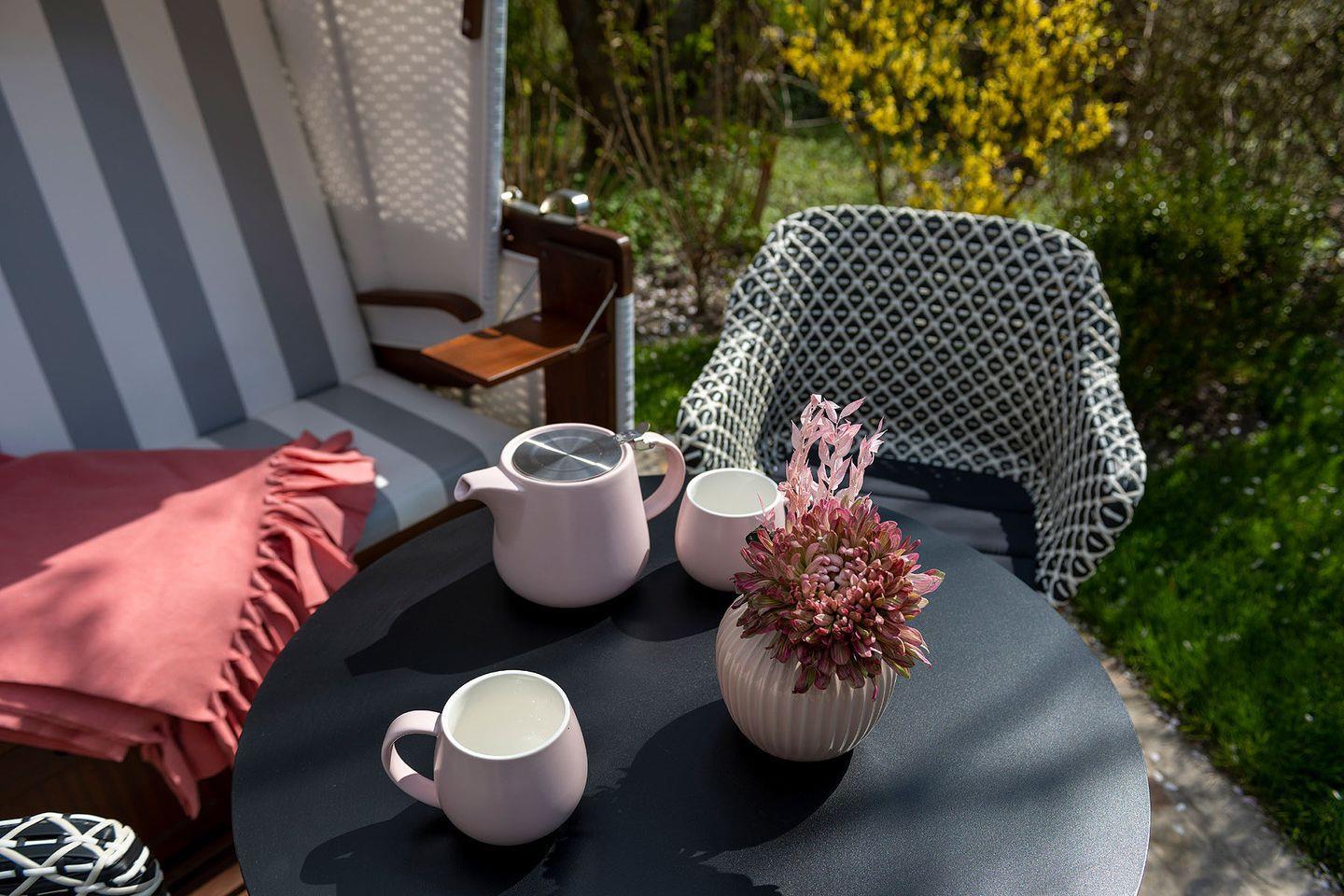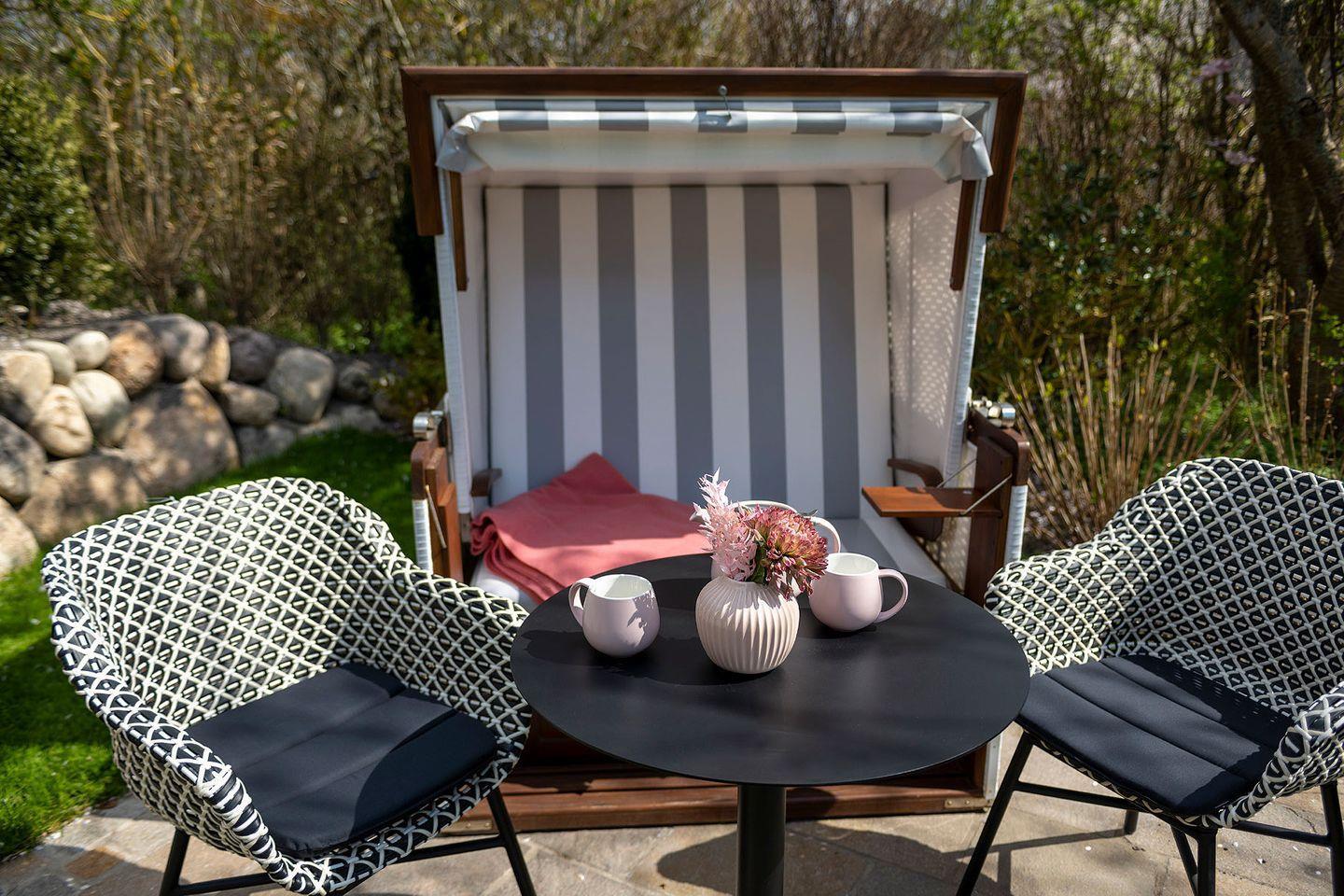 Modernes Ferienapartment „Dünensand“ in Keitum mit Garten, Strandkorb und skandinavischem Design.