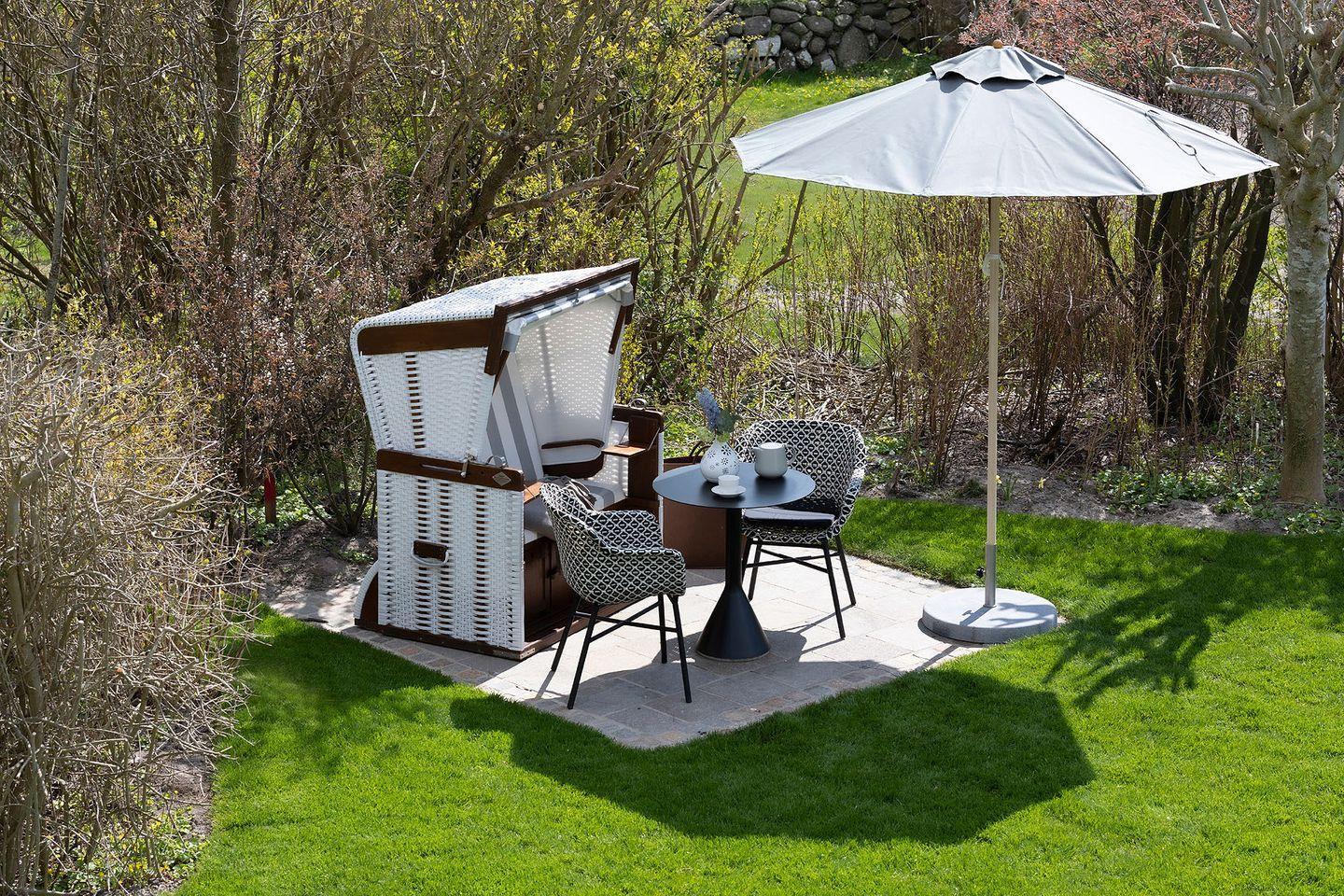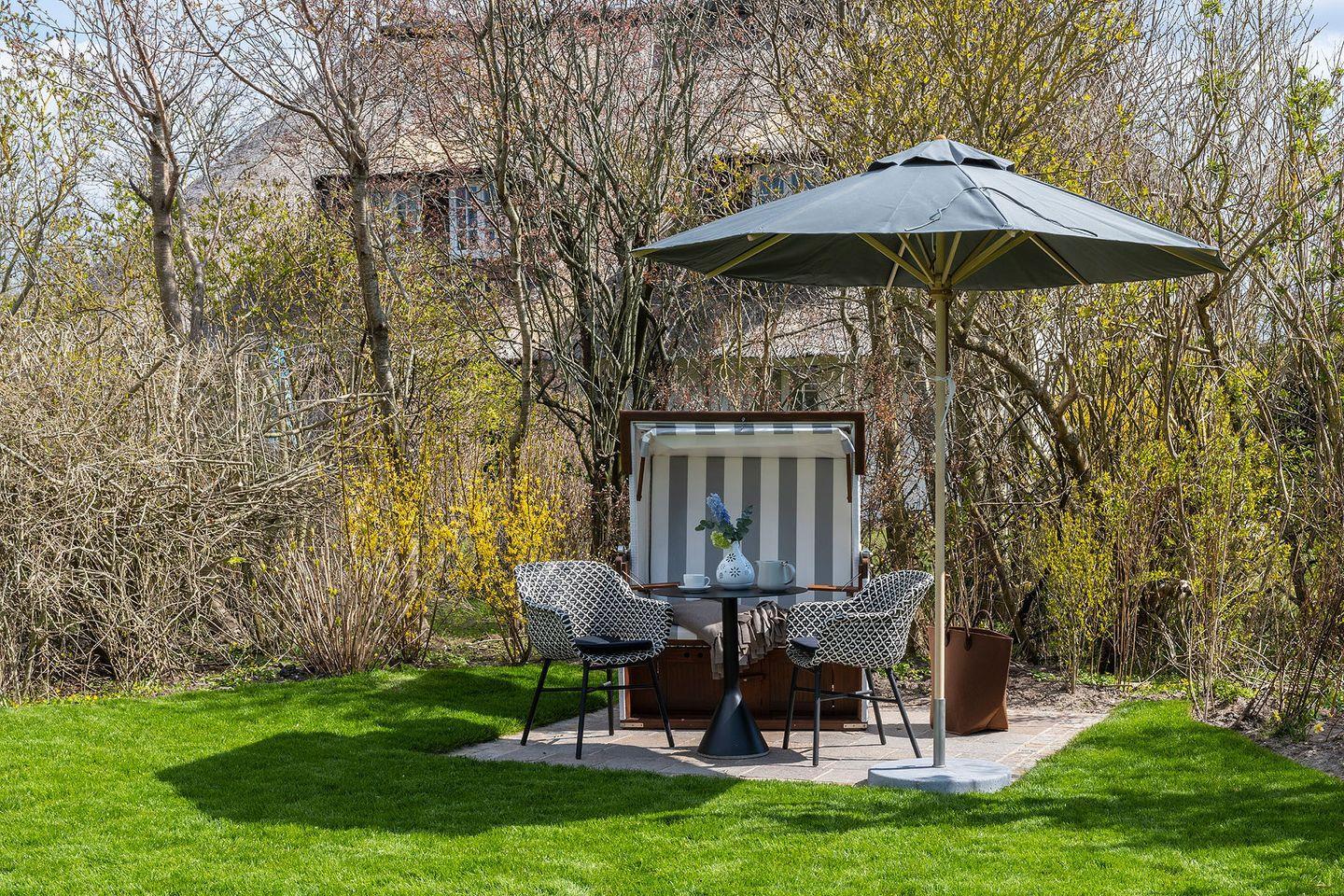 Im Garten steht ein Strandkorb sowie Gartenmöbel zur Verfügung (Ostausrichtung; April - Oktober).