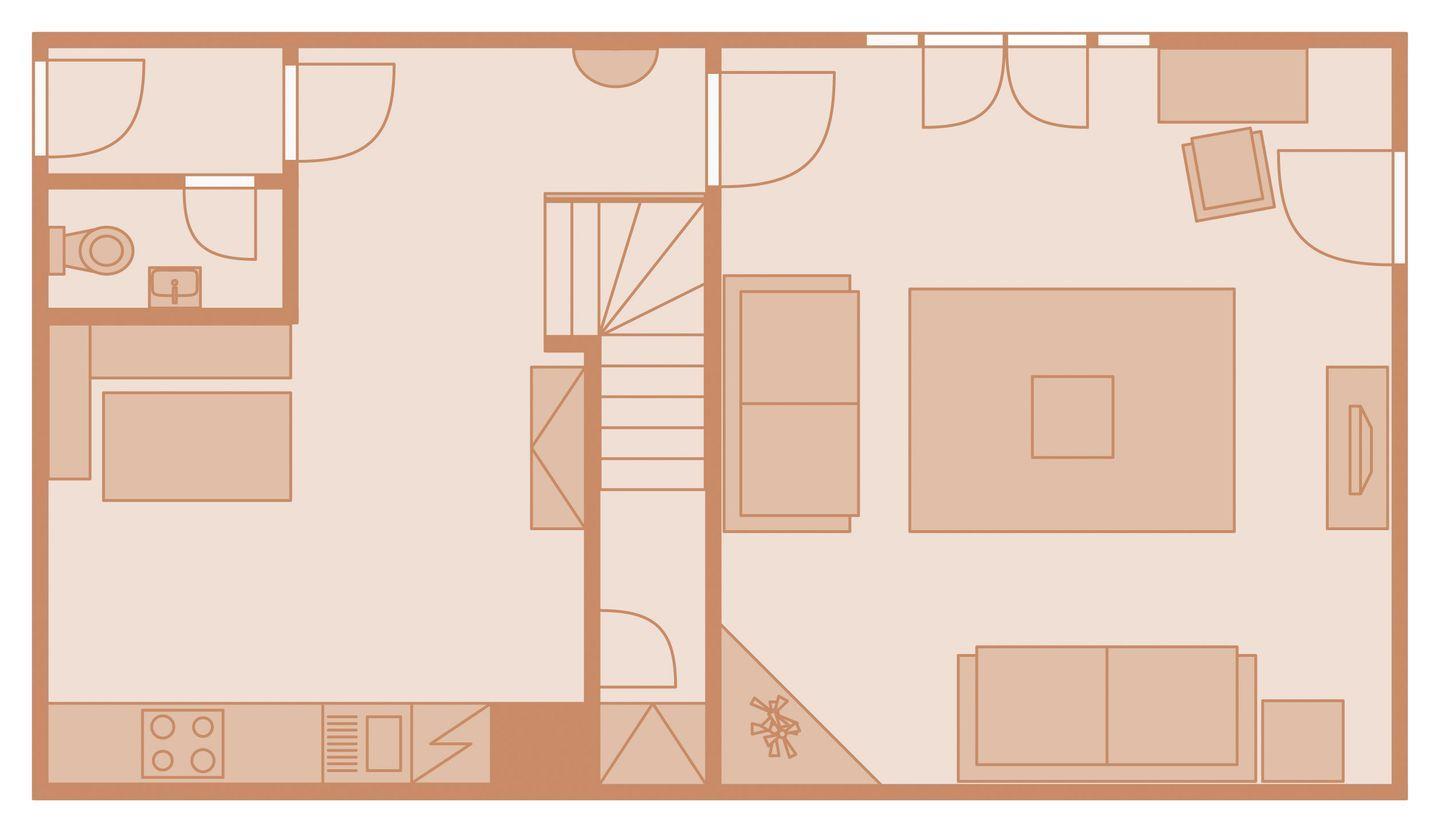 Das Ferien Domizil im Hingstwai 4 (ca.110 m²) geht über zwei Etagen mit folgender Aufteilung: