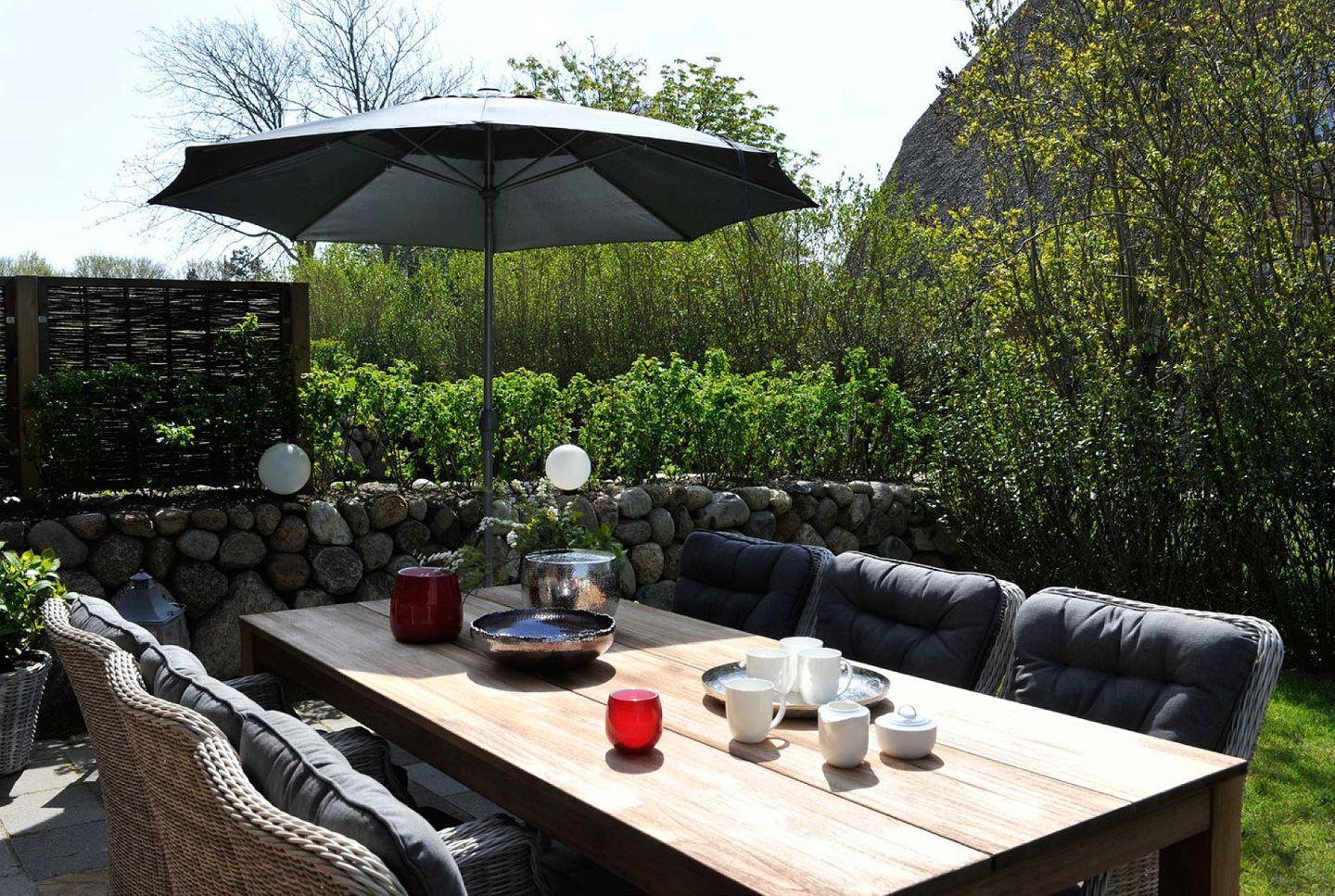 Exklusives Ferienapartment in Keitum mit Garten, moderner Küche und südlicher Terrasse für entspannte Urlaubstage.