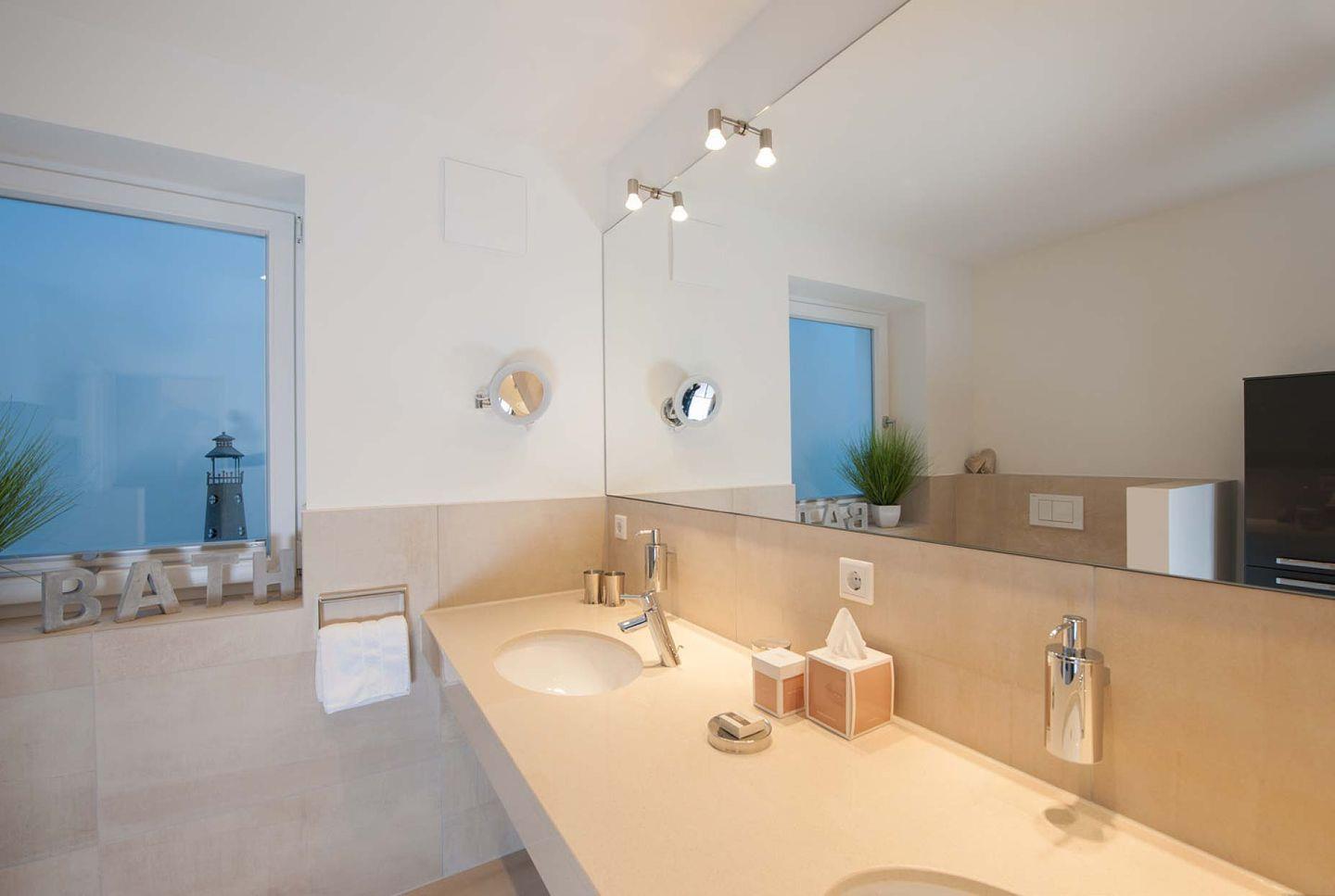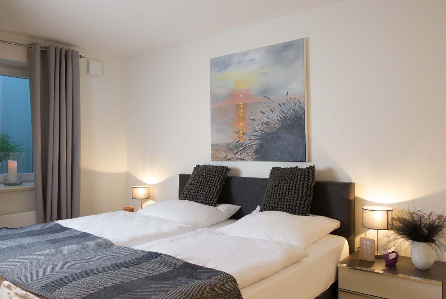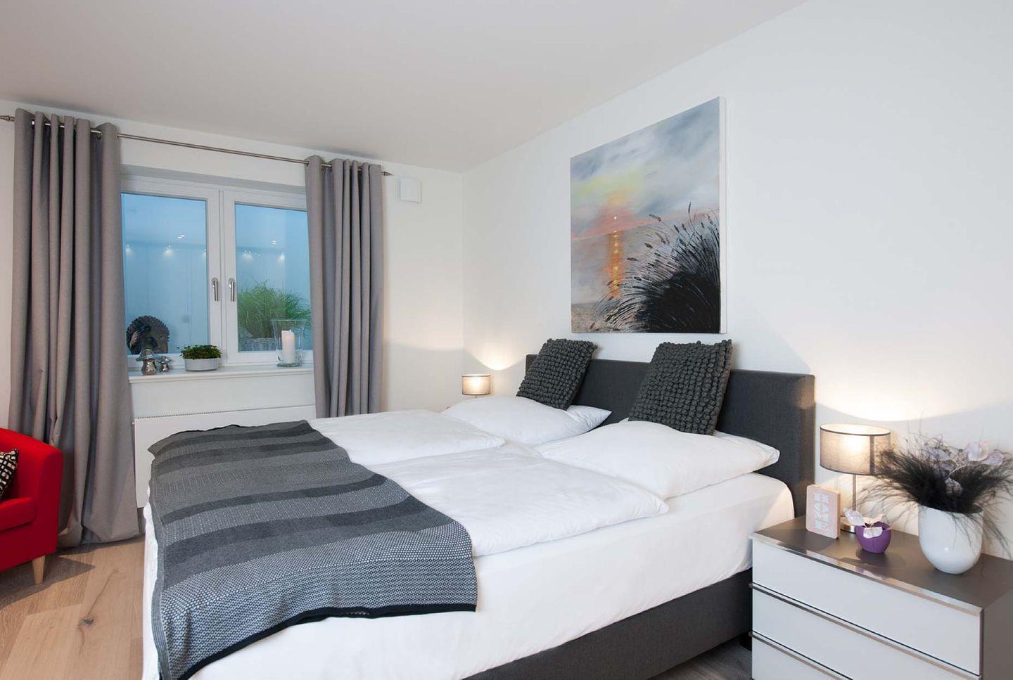Das exklusive Ferien Domizil im Lörkiwai 10 liegt nur wenige Gehminuten vom BENEN-DIKEN-HOF entfernt. Die Wohnung 1 im Neubau bietet auf zwei Ebenen und 95 m² ausreichend Platz für maximal vier Personen. Das Domizil besticht mit Stilsicherheit und einer geschmackvoll eingerichteten, voll ausgestatteten Küche, die keine Kochwünsche offenlässt. Der angrenzende Essplatz vermittelt durch die hellen Holztöne und Farben wie Weiß, Hellgrau und Rotakzente ein Gefühl von Leichtigkeit. Dieser Faden zieht sich durch die gesamte Einrichtung des Apartments. Alles trägt zu einem harmonischen und anspruchsvollem Wohngefühl bei. Die kuschlige Sofalandschaft und der Sessel laden zu ruhigen Stunden mit einem spannenden Buch und einer Tasse Tee ein – das ist Sylter Gemütlichkeit. Vom großzügigen und offen geschnittenen Wohn- und Essbereich führt eine nach Süden ausgerichtete Terrasse in den Garten, es lassen sich die Sonnenstunden in vollem Umfang genießen. Die zwei Schlafräume im Souterrain wurden stilvoll und mit viel Liebe zum Detail an das Wohnkonzept angepasst. Maritime Accessoires runden das Bild einer gemütlichen Rückzugsoase ab.