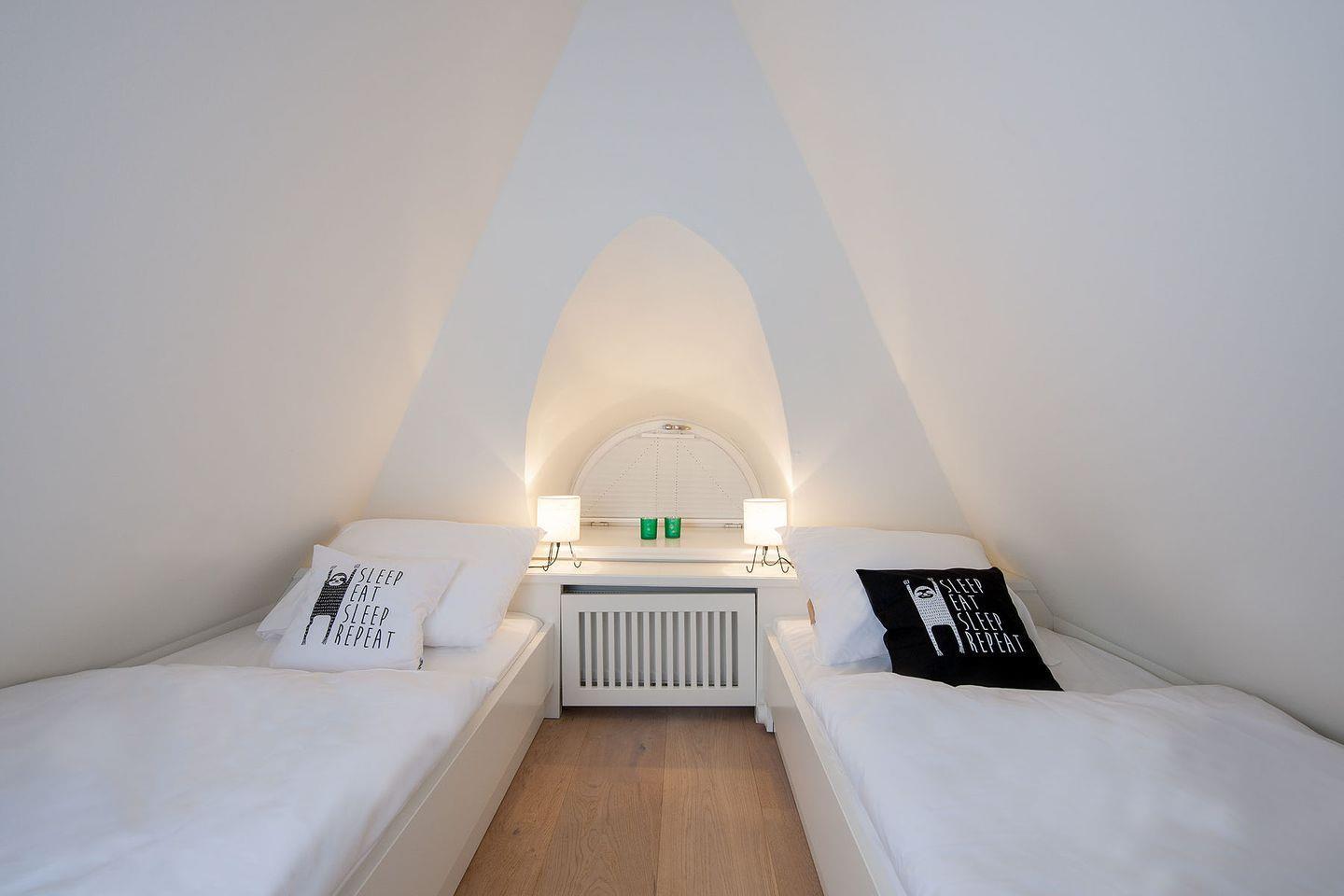 Spitzgiebel: 1 Schlafzimmer mit TV und 2 getrennt stehenden Einzelbetten