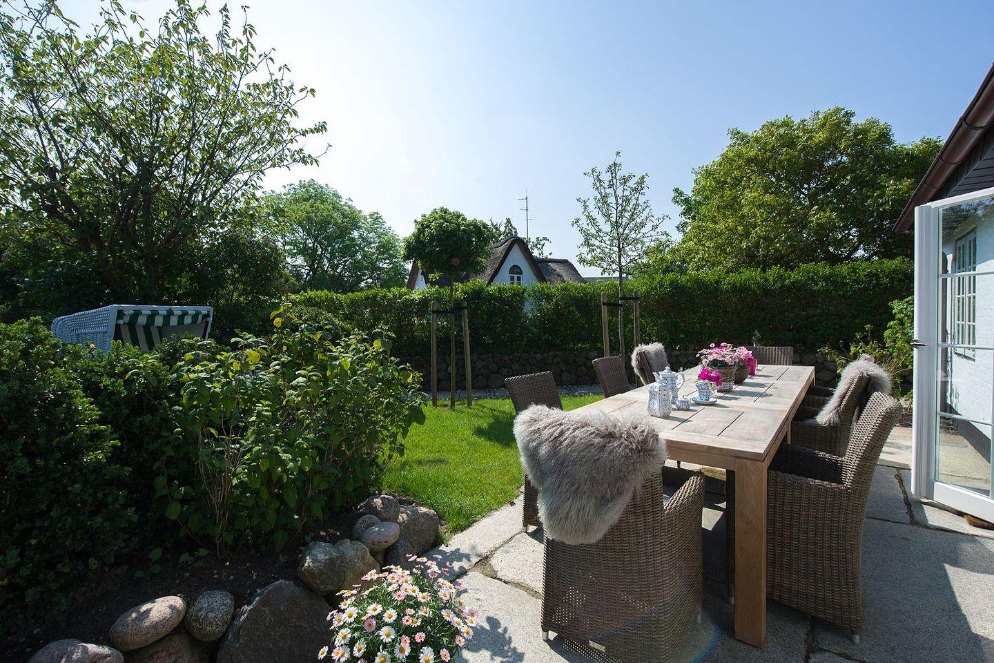 Exklusives 5-Sterne Ferienhaus in Keitum mit Garten, Kachelofen und moderner Ausstattung für entspannte Urlaubstage.