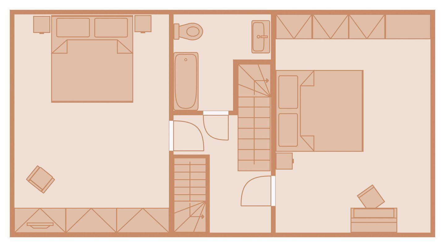 Obergeschoss: 2 Doppelzimmer, Badezimmer mit Badewanne und WC