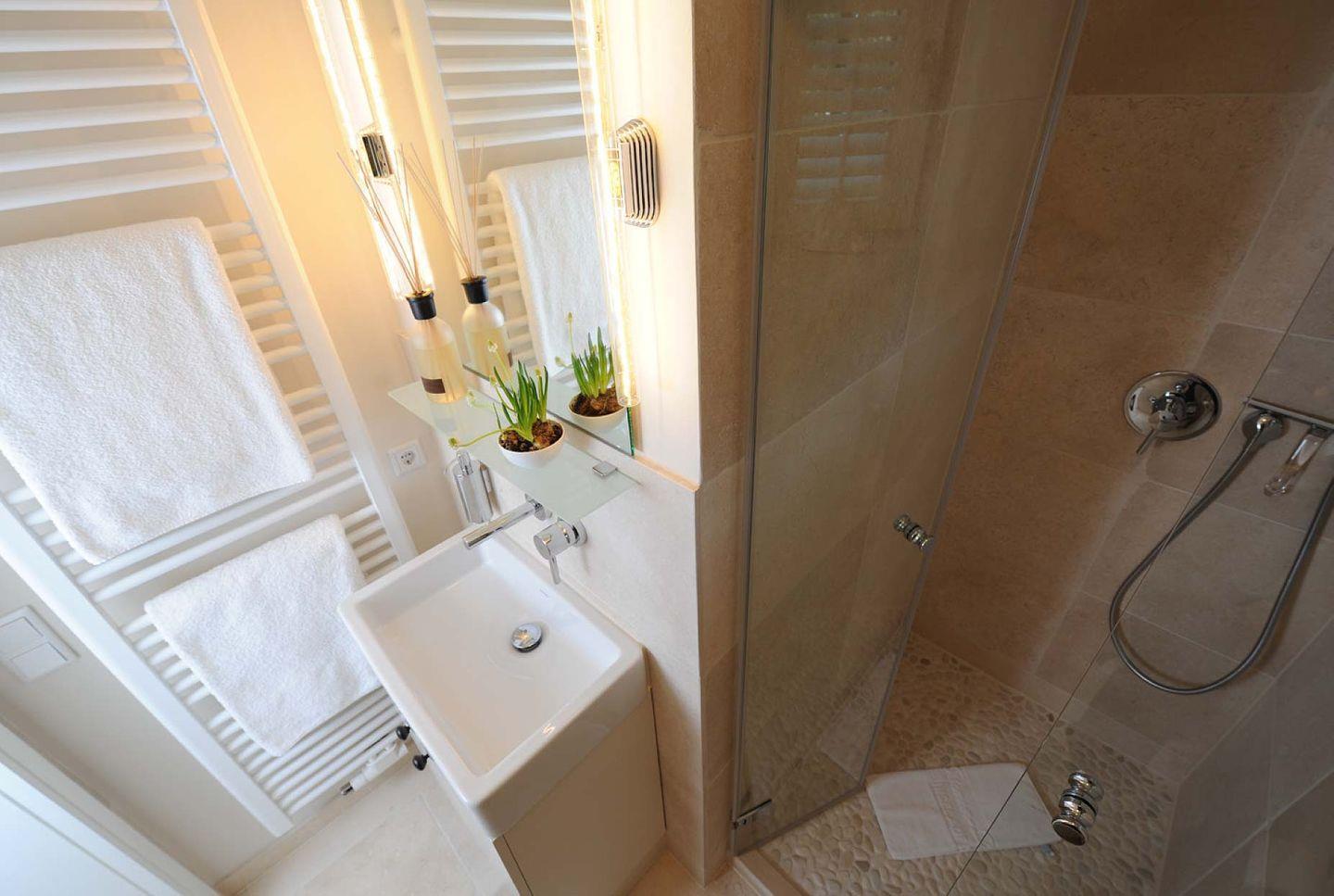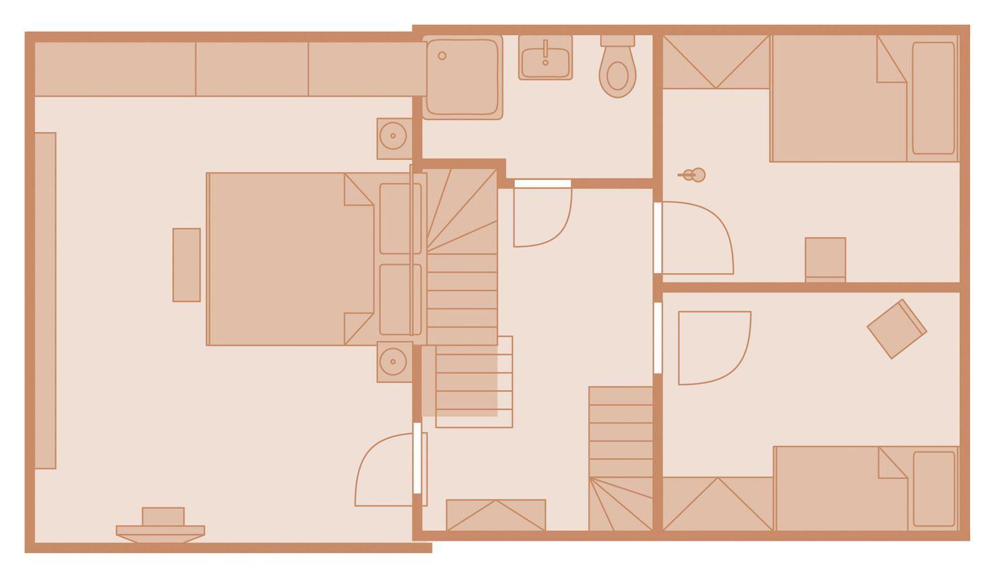 Obergeschoss: 1 Doppelzimmer mit TV, 2 Einzelzimmer, Badezimmer mit Dusche und WC