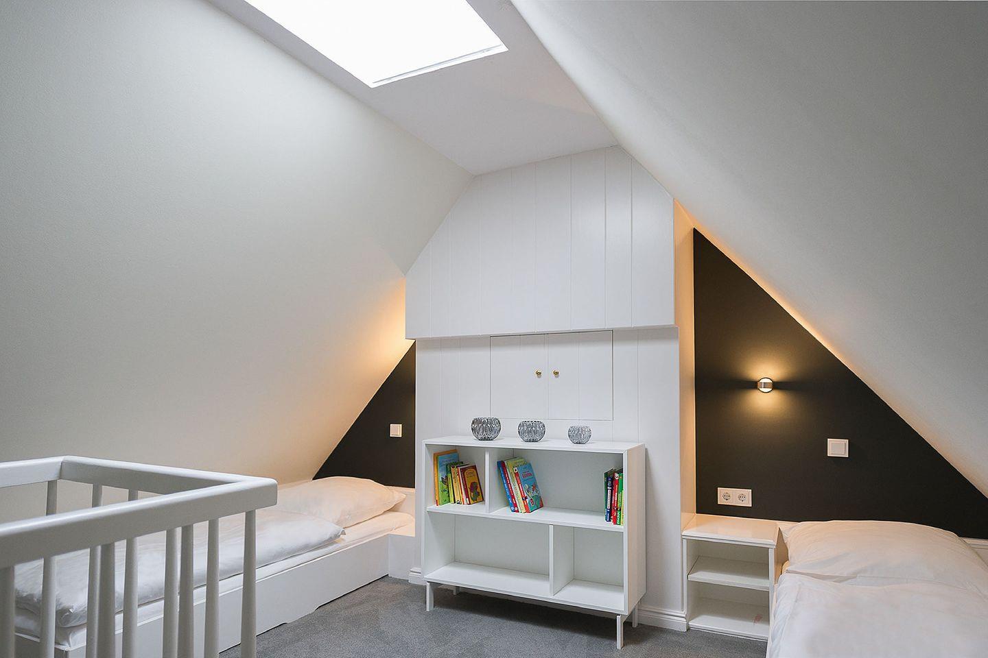 Spitzgiebel: 1 Schlafzimmer mit 2 getrennt stehenden Einzelbetten