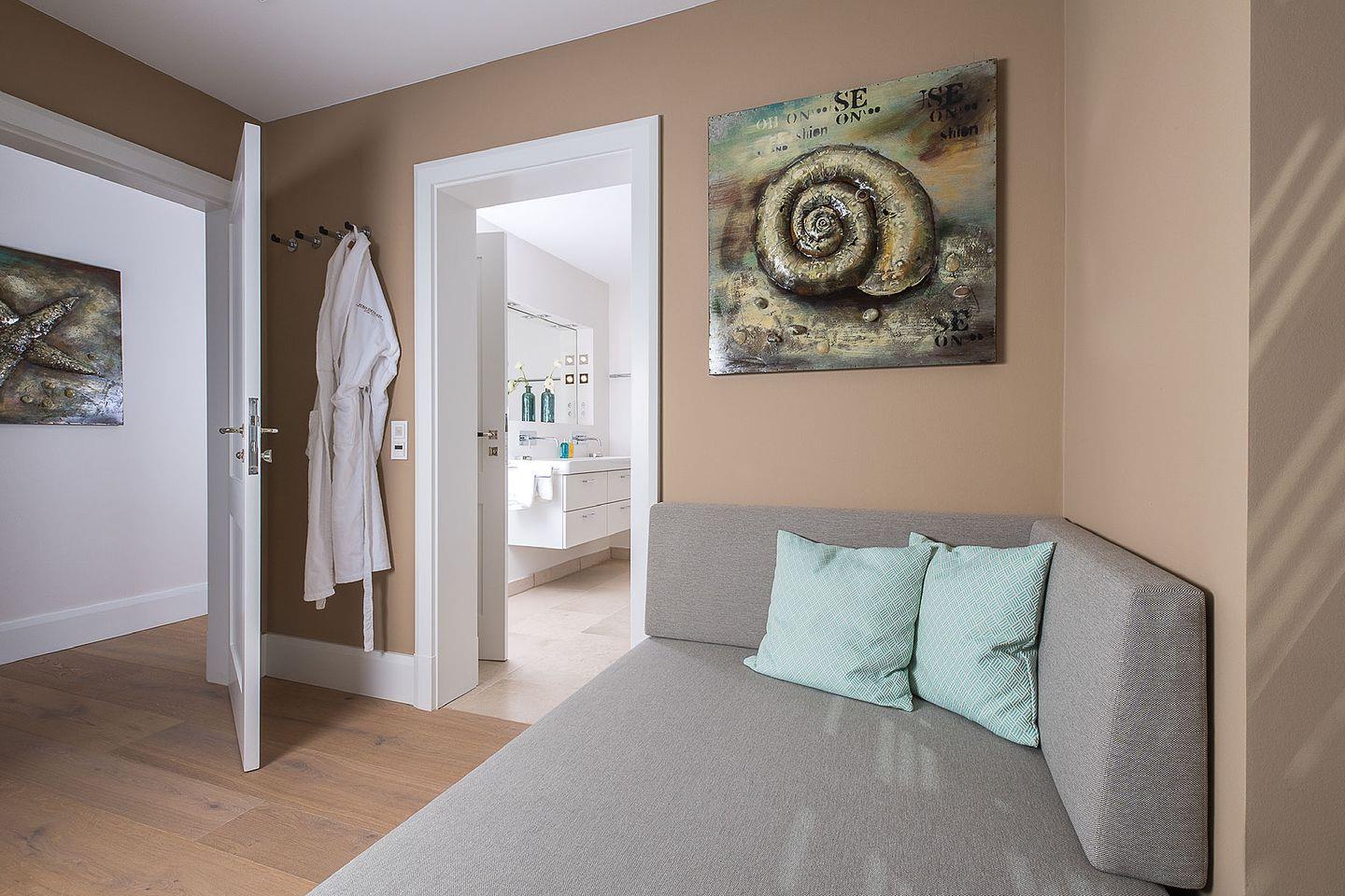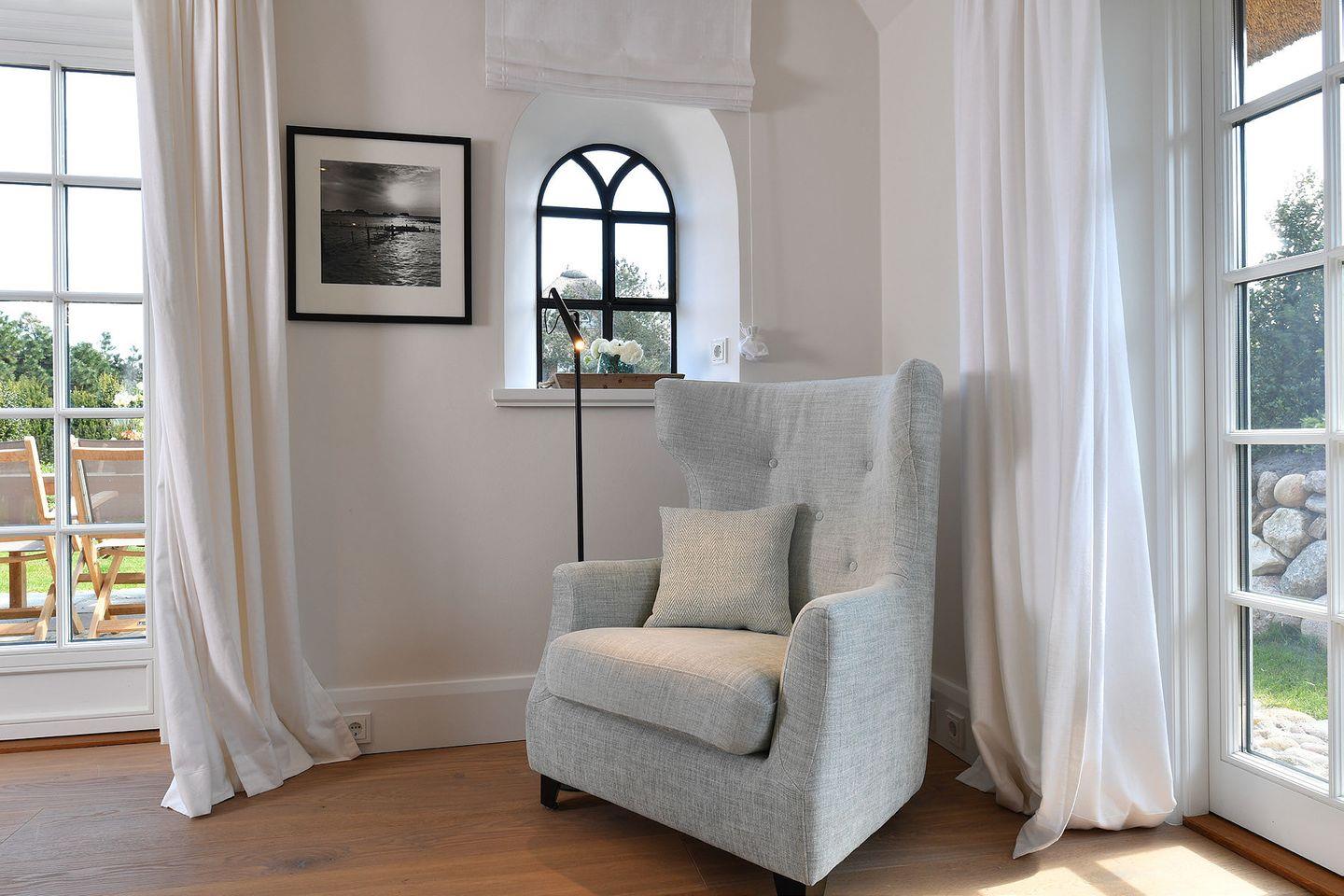 Das großzügige 5-Sterne Ferien Domizil im Westerhörn 54 erstreckt sich über vier Ebenen und 170 m². Es bietet für maximal sechs Personen ausreichend Platz zum gemütlichen Verweilen. Die Haushälfte unter Reet wurde im Jahr 2016 neu erbaut und besticht durch eine geschmackvolle und in Pastelltönen gehaltene Ausstattung. Der nach Süd-Osten ausgerichtete Garten und die Naturstein-Terrasse bieten bereits ab den frühen Morgenstunden die Möglichkeit, viel Zeit im Freien und in der Sonne zu verbringen. Die hochwertige Einrichtung im Landhausstil gepaart mit modernen Elementen schafft einen Rückzugsort, in dem man sich sofort zuhause fühlt. Das offene Erdgeschoss verbindet Küche, Ess- und Wohnbereich, der Kamin bildet einen harmonischen Mittelpunkt für heitere und kommunikative Stunden oder ruhige, gemütliche Auszeiten. Ein Highlight ist die großzügige Sauna mit Ruheliege und separatem Badezimmer. Der wohlige Wellnessbereich erstreckt sich im Souterrain und lädt zum Entspannen oder Aufwärmen nach einem langen Strandspaziergang ein.