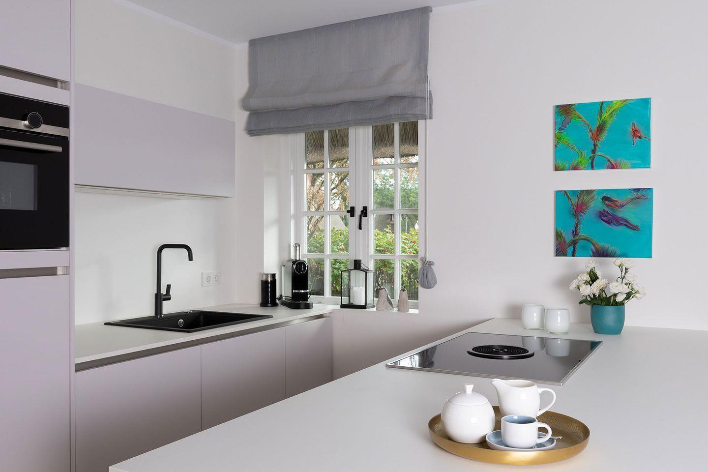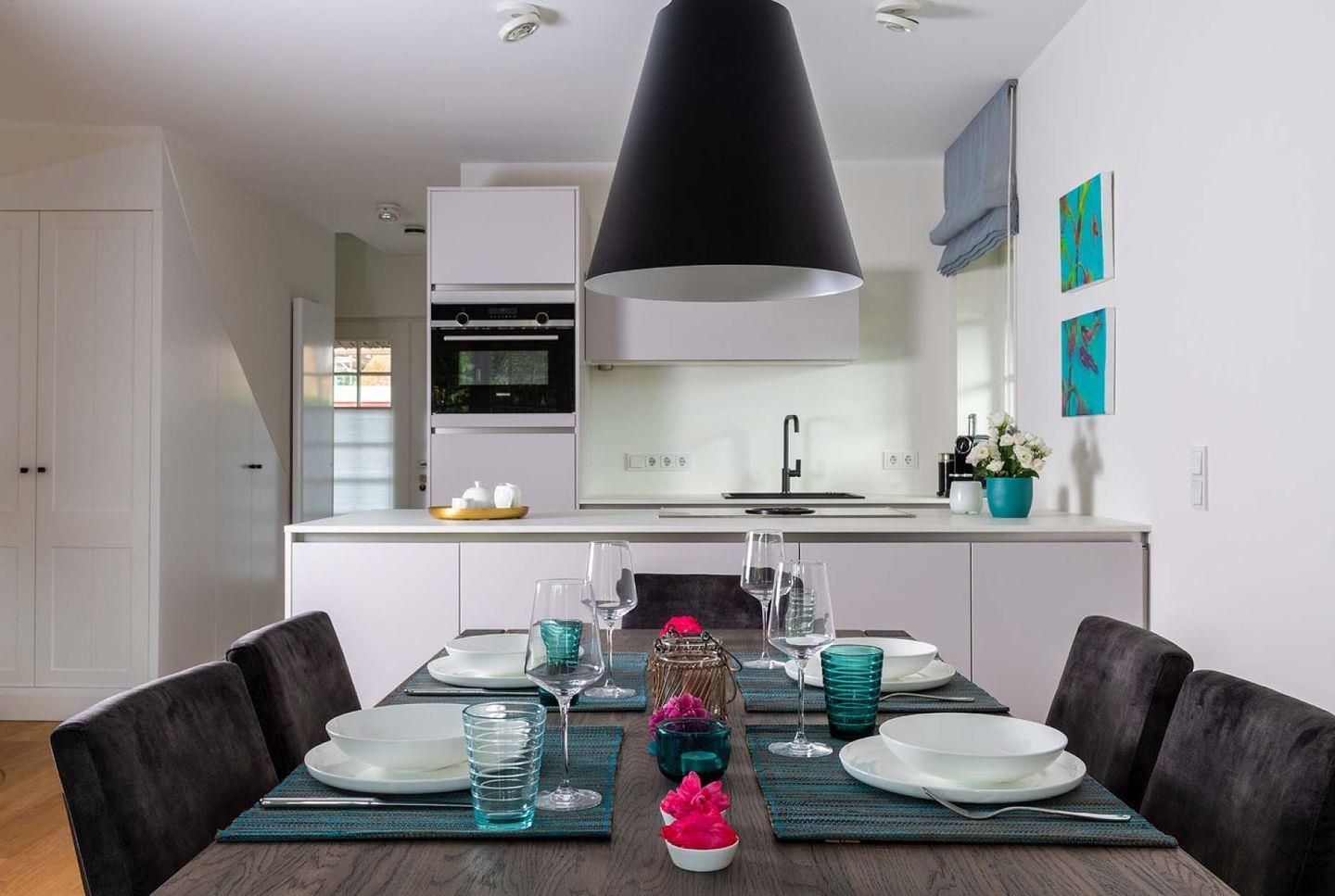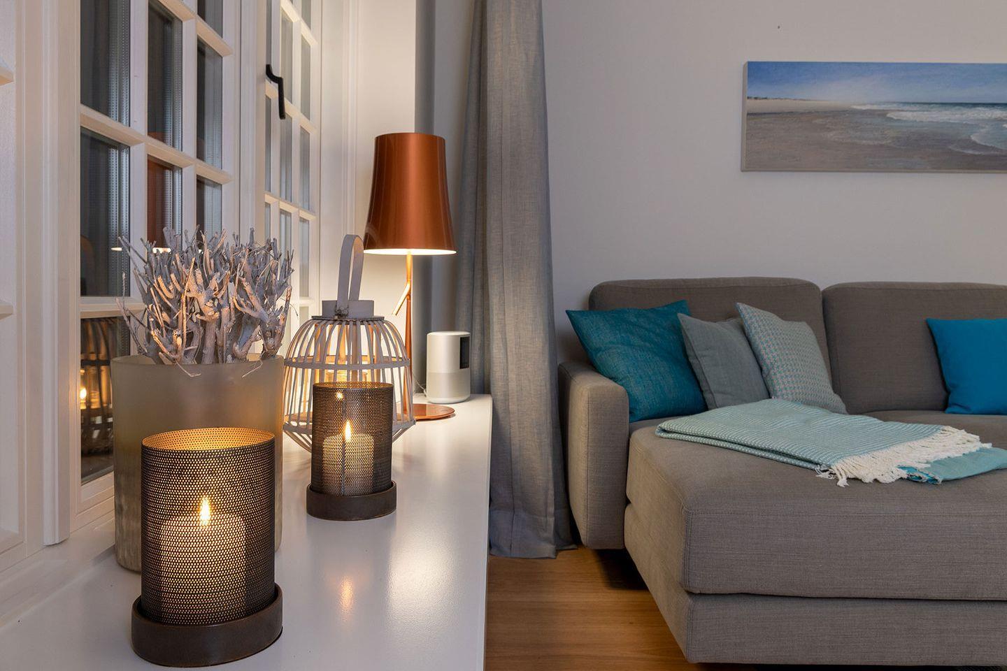 Das exklusive 5-Sterne Ferien Domizil im Westerhörn 16 in Keitum wurde im Sommer 2019 vollständig und hochwertig renoviert und gehört seitdem zum Portfolio des Benen-Diken-Hofs. Es bietet anspruchsvolle Wohnkultur kombiniert mit modernem Badambiente. Vier Personen finden auf drei Ebenen und 105 m² ausreichend Platz. Im sympathischen Ferien-Apartment hat alles seinen Platz. Es bietet mit einem durchdachten Raumsystem viel Platz für seine Bewohner und für Mitgebrachtes. Im offenen Wohn- und Essbereich befindet sich ein großzügiger Esstisch und eine kuschelige Wohnlandschaft. Die offene Küche zeugt von moderner Raumgestaltung und bietet mit ihrer Ausstattung alles für ein gemeinsames Kochvergnügen. An kalten Tagen spendet ein Kachelofen angenehme Wärme. Wände in pastelligen Türkis- und Blautönen verwandeln die Schlafräume in den beiden oberen Etagen in Inseln der Ruhe. Das klare und pure Raumkonzept setzt sich auch hier fort. Die nach Süd-Westen ausgerichtete in Naturstein ausgeführte Terrasse öffnet den Wohnbereich zu den Sonnenplätzen im 200 m² großen Garten. Es ist ein wunderbarer, sonnenbeschienener Rückzugsort mit Gartenmöbeln und Strandkorb. Hier lässt sich die Freiheit, die eines großen Gartens zu eigen ist, finden und intensiv genießen.