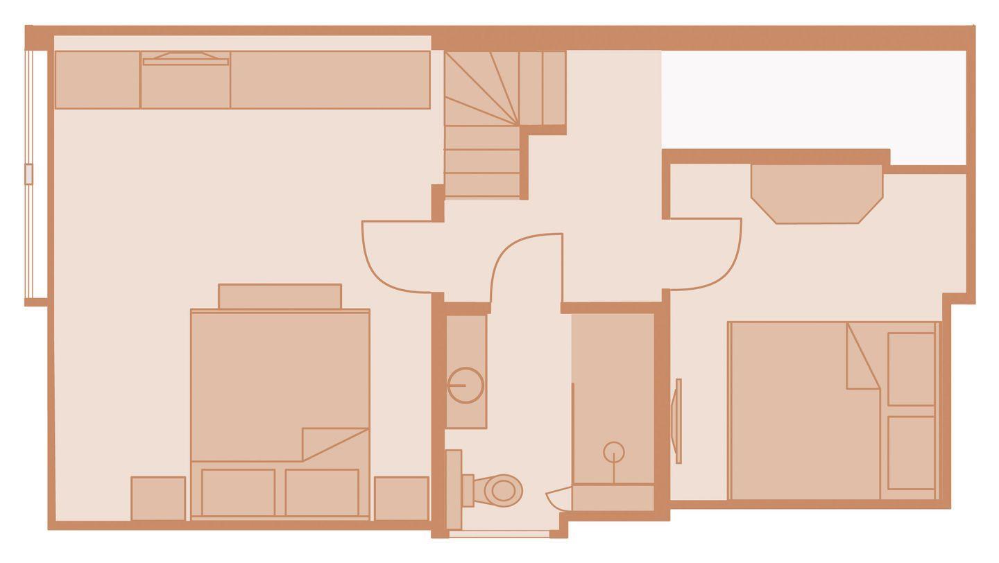 Obergeschoss: 1 Doppelzimmer, 1 Grandlizimmer, Badezimmer mit Dusche und WC