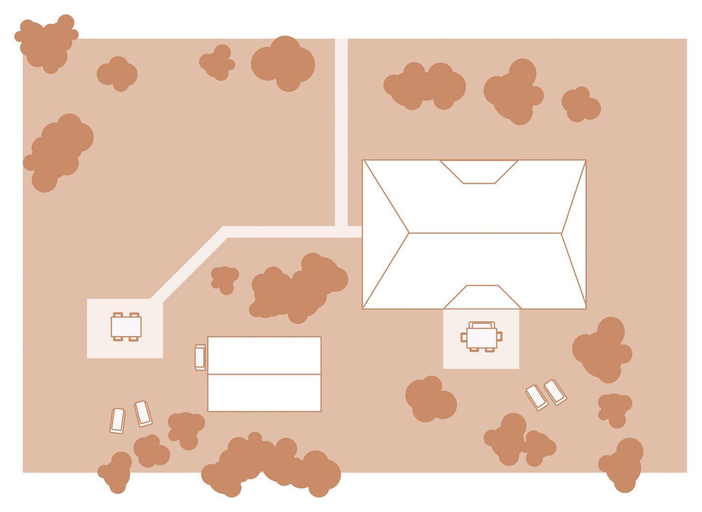Flur, komplett eingerichtete separate Küche mit Essbereich und Nespresso-Maschine, Gäste-WC, 1 Doppelzimmer mit TV und ensuite Badezimmer mit Dusche und WC, Wohnzimmer mit TV, 1 Doppelzimmer mit TV, 1 Doppelzimmer, Badezimmer mit Badewanne und WC, großer eingewachsener Garten, Südwest-Terrasse mit Gartenmöbeln