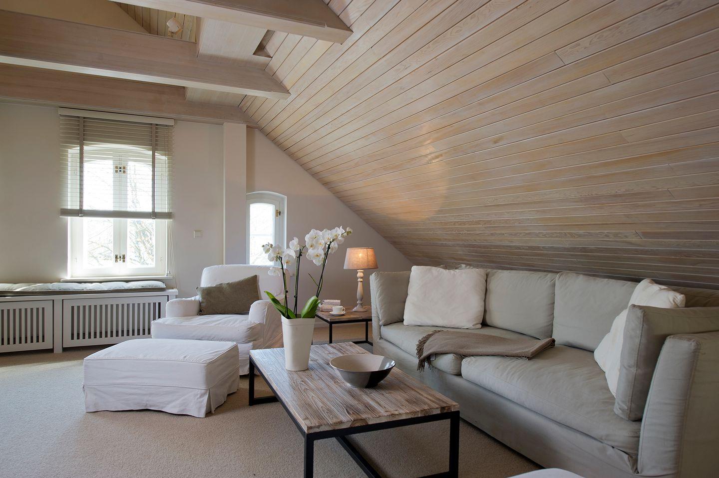 Die Dachgeschoss-Wohnung Zollhaus 2 im Gurstig 52 in Keitum bietet auf 94 m² Platz für maximal vier Personen. Das Ferien Domizil lebt vom großzügigen Wohn- und Essbereich, der sich bis zum First öffnet. Die geschickt in den Wohnraum integrierte Küche ist mit allem Komfort ausgestattet und erfreut sich bei Hobby- und Profiköchen großer Beliebtheit. Am geselligen Esstisch lässt es sich ordentlich »tafeln«, denn er bietet Platz für bis zu acht Personen. Angeregte Diskussionen, ausgiebige Gespräche führt man stilvoll in der gemütlichen Sitzgruppe am schönen Kamin. Auf der Empore, die über eine Leiter erreichbar ist, befindet sich ein besonderer Rückzugsort für Kinder. Mit zwei schönen Schlafzimmern sowie zwei Bädern ist das Dachgeschoss sehr familienfreundlich ausgestattet. Zur Wohnung gehören eine große Terrasse im Westen des Gartens gelegen sowie ein PKW-Stellplatz auf dem Grundstück, eine komplette Küchenausstattung, TV, WLAN, Musikanlage und iPod Dockingstation.“ Damals noch unter dänischer Hoheit wurde das Königliche Zollhaus sowie ein kleines Stallgebäude mitten in Keitum errichtet. Bis 1902 diente das Haus als Zollamt, welches dann nach Westerland verlegt wurde. Mitte der 90er Jahre sind beide Gebäude in Zusammenarbeit mit Fachleuten der Denkmalpflege liebevoll restauriert worden. In 2012 folgte erneut eine vollständige Renovierung, der eigentliche Luxus des Hauses besteht darin, inmitten Keitums in historischer Kulisse auf großem und modernem Raum wohnen und leben zu können.