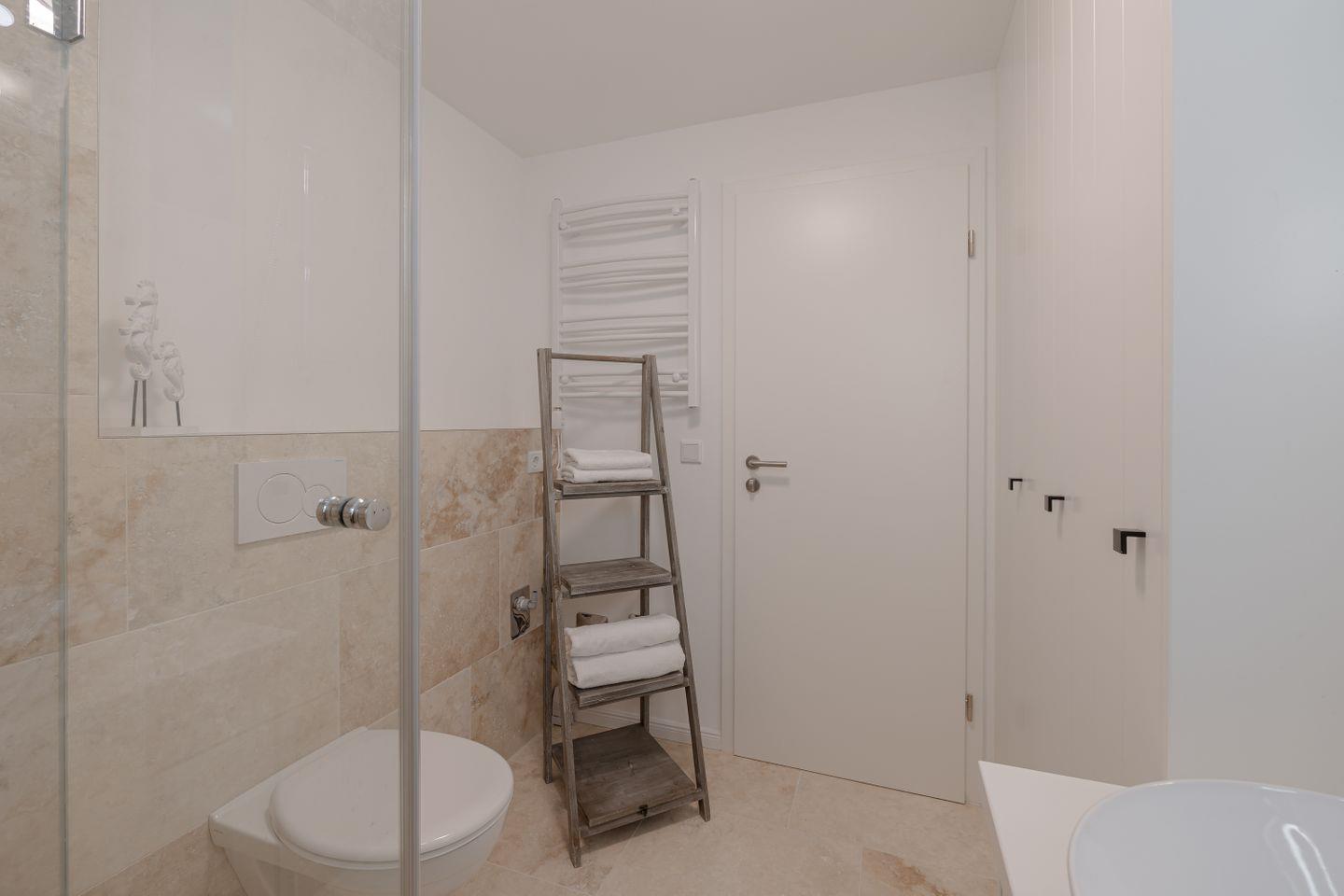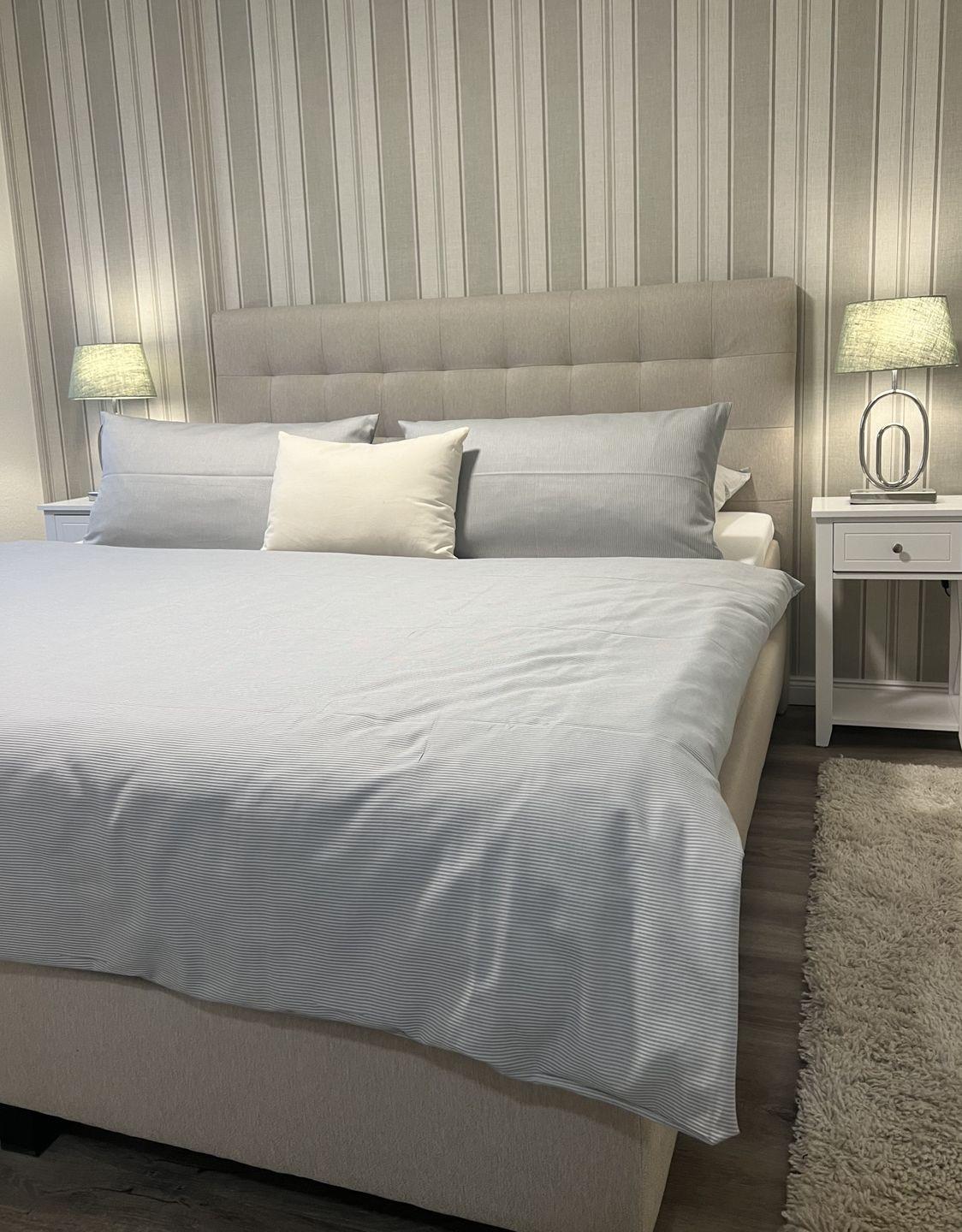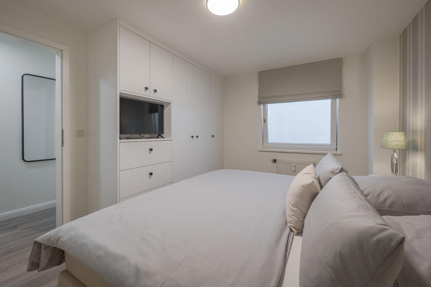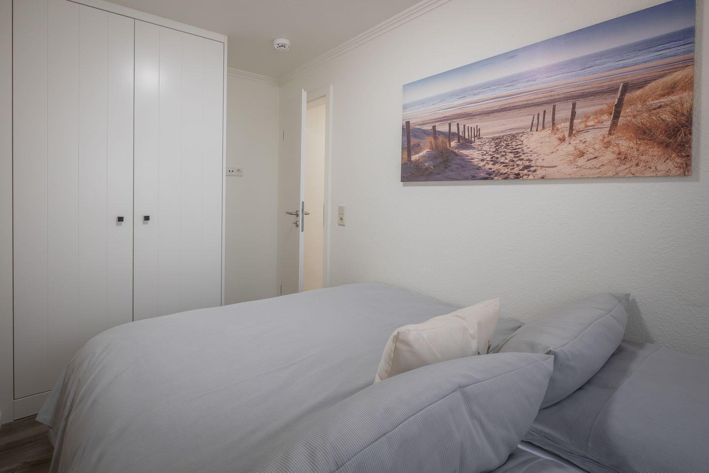 Das moderne Natursteinbad ist mit einer ebenerdigen Dusche, einem Handtuchwärmer, Kosmetikspiegel und Fenster mit Fliegengitter ausgestattet. Kostenloses WLAN und TV (32 Zoll) im Master Bedroom sorgen für zusätzlichen Komfort, sowie Fliegengitter in beiden Schlafzimmern. Ein privater Parkplatz steht direkt am Haus zur Verfügung (Einfahrt über Westerhörn 42, letzter Parkplatz).