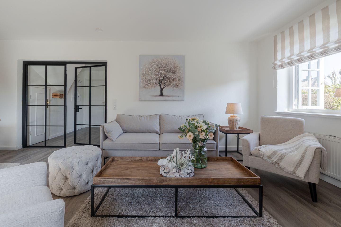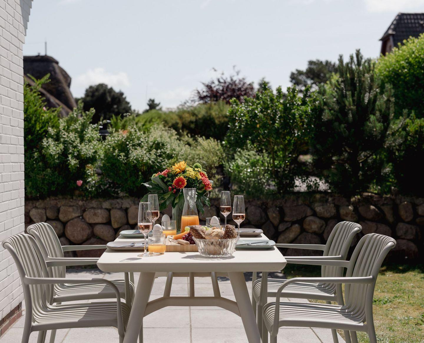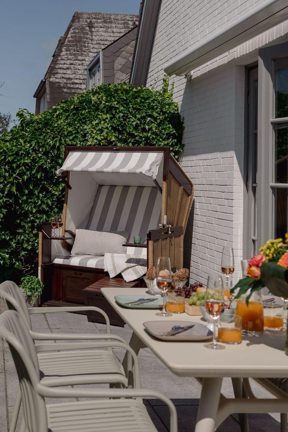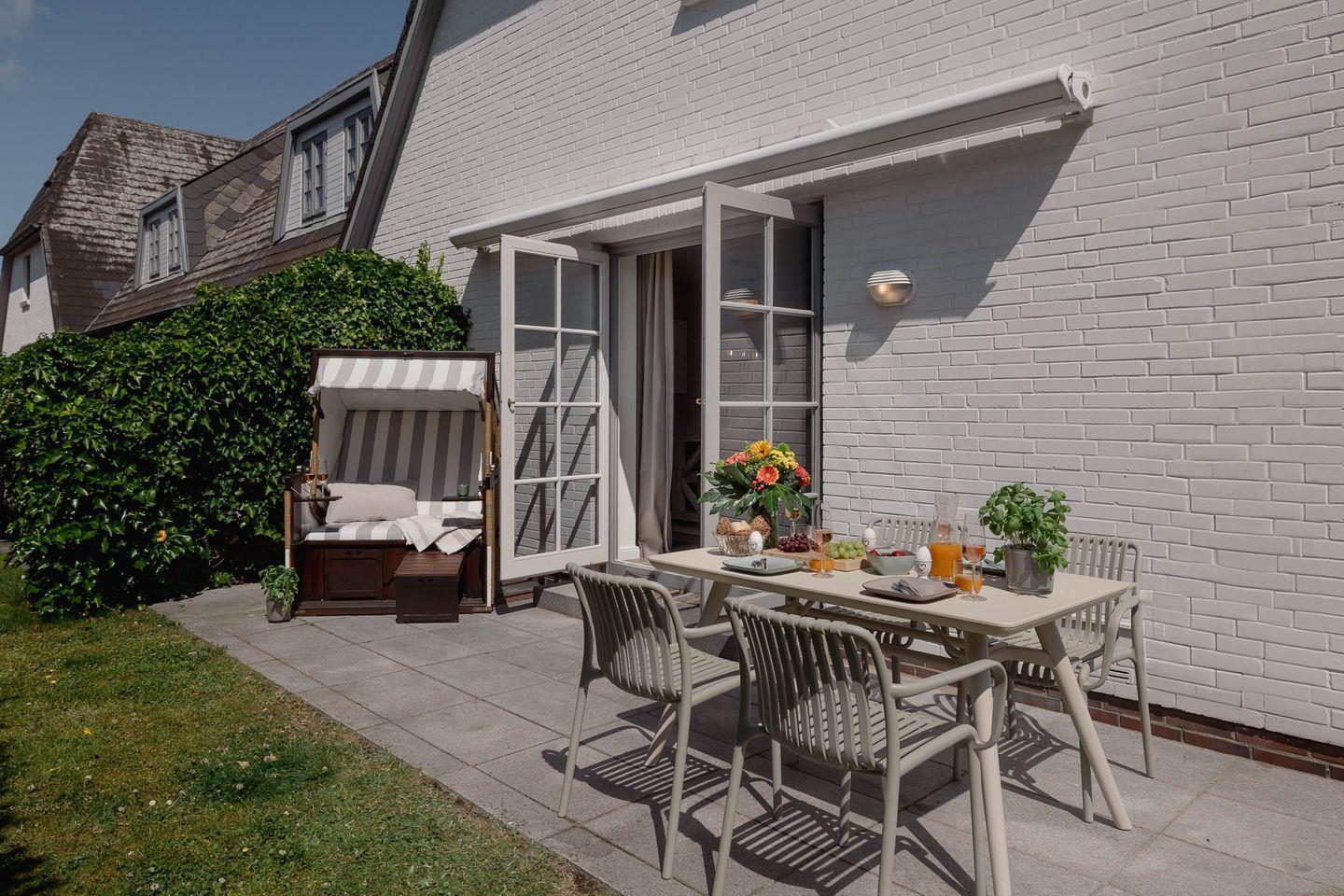 Das liebevoll renovierte Baileys Hüs in Keitum auf Sylt bietet stilvollen Komfort und eine Terrasse zum Entspannen.