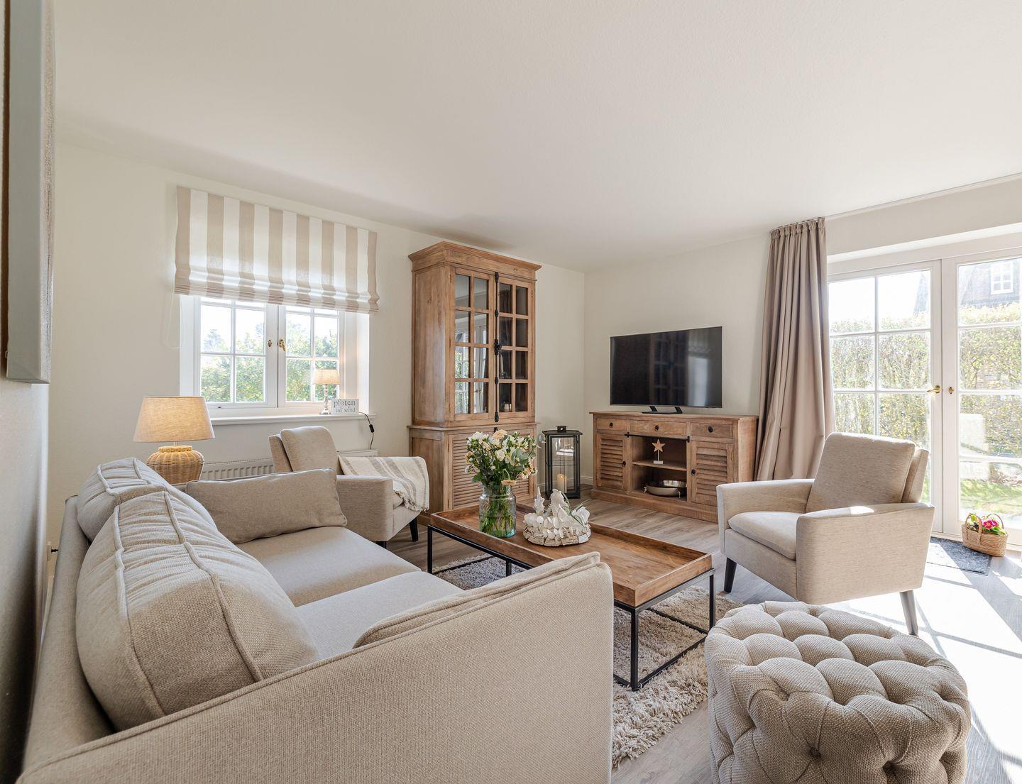 Tauchen Sie ein in die entspannte Atmosphäre unseres liebevoll renovierten "Baileys Hüs" im malerischen Keitum auf Sylt. Diese exklusive Ferienwohnung wurde im Frühjahr 2025 mit viel Liebe zum Detail komplett renoviert und bietet auf 82 m² und zwei Ebenen ausreichend Platz für bis zu 4 Personen. Die offene Raumgestaltung mit warmen Farben und hochwertigen Tischlerarbeiten schafft ein behagliches Ambiente. Zwei komfortable Schlafzimmer mit Boxspringbetten (180x200 cm und 160x200 cm) und Fliegengittern sorgen für erholsame Nächte. Der großzügige Wohnbereich mit gemütlichem Sofa und einem 50-Zoll-TV lädt zum Entspannen ein. Für gemeinsame Mahlzeiten steht ein großer Esstisch bereit, und die moderne, offene Küche ist bestens ausgestattet – inklusive Nespresso-Maschine, Siemens-Geräten und allem, was das Herz eines Hobbykochs begehrt.