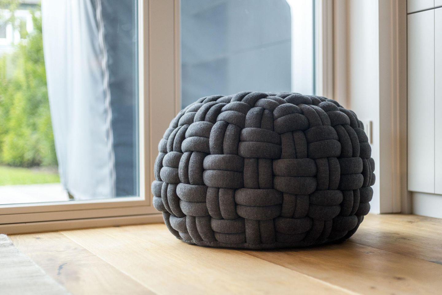 Das geräumige Wohnzimmer lädt mit einem modernen Ecksofa und hochwertigen Tischlereinbauten zum Entspannen ein. Der Mylin Kachelofen spendet wohlige Wärme. Vom Wohnzimmer aus haben Sie direkten Zugang zur sonnigen Südterrasse, die mit einem eigenen Strandkorb und Sitzgelegenheiten ausgestattet ist – der perfekte Ort für erholsame Stunden an der frischen Luft. Die Essecke, harmonisch in den Wohnbereich integriert, bietet Platz für gesellige Abende.