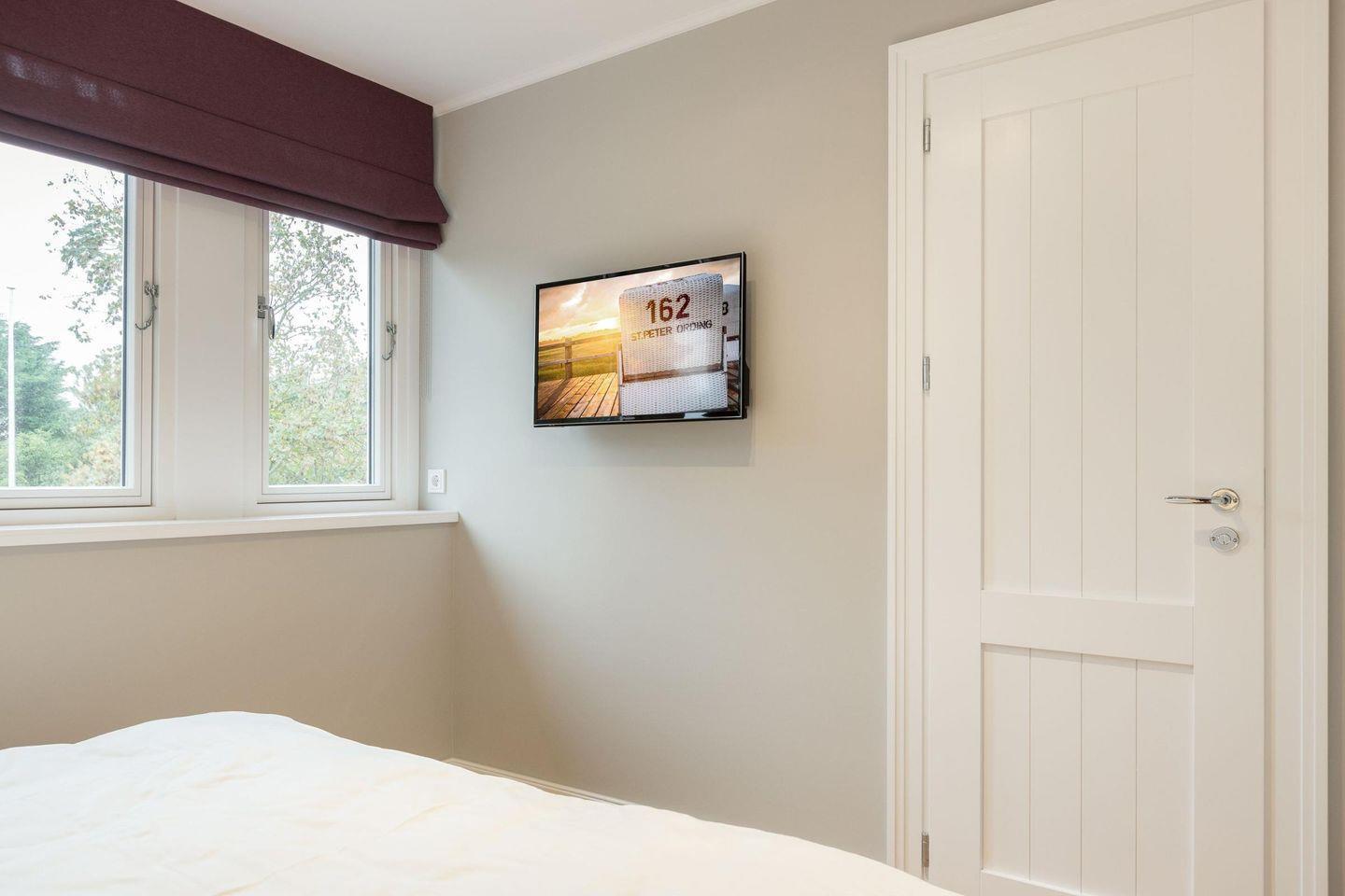 Die drei stilvoll eingerichteten Schlafzimmer sind mit Doppelbetten (je 180x200 cm) und TVs ausgestattet. Ein Schlafzimmer bietet direkten Zugang zum zweiten Badezimmer, welches mit einer bodengleichen Dusche, Fußbodenheizung und Tageslicht punktet. Die ruhige Atmosphäre der Zimmer sorgt für erholsamen Schlaf und Entspannung.