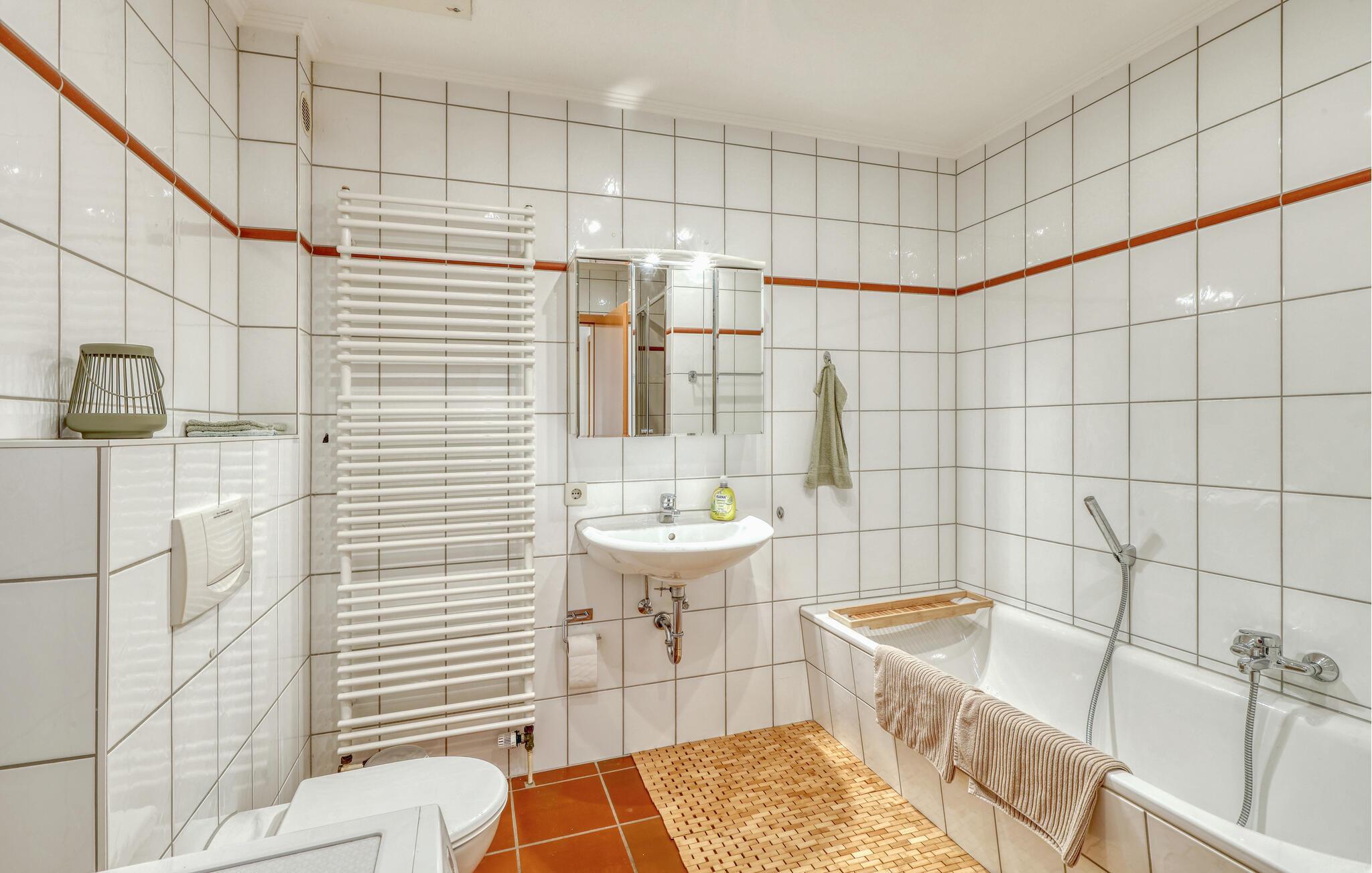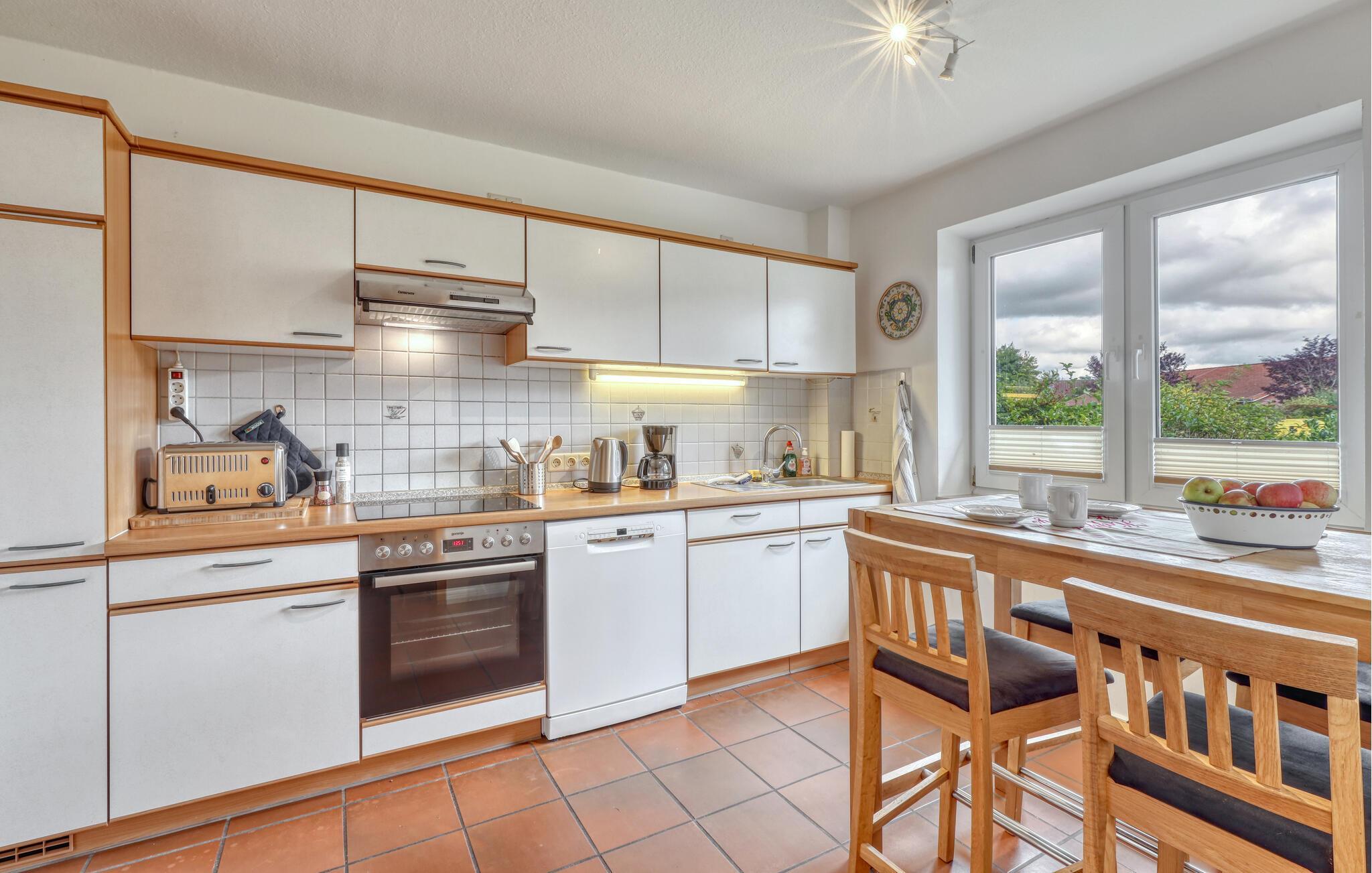Diese in schöner Landschaft gelegene Wohnung ist wie geschaffen für eine erholsame Auszeit vom Alltag. Durch bodentiefe Fenster fällt viel helles Tageslicht ins Innere, während Sie einen schönen Blick in den Garten genießen. Entspannen Sie sich auf dem bequemen Sofa beim Plaudern, Musikhören oder Fernsehen. In der modern ausgestatteten Küche können Sie leckere Mahlzeiten zubereiten und im Kreise Ihrer Lieben genießen.