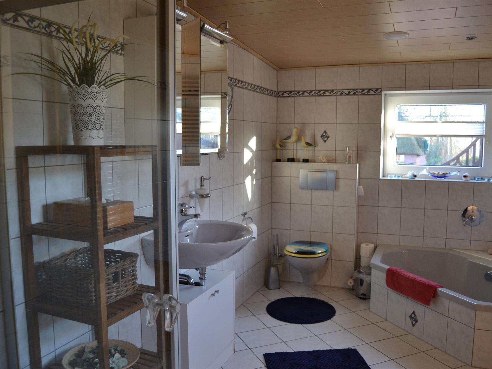Auf 95 qm stehen Ihnen drei Schlafräume zur Verfügung. Die Haushälfte verfügt im Erdgeschoss über eine Diele und eine komplett eingerichtete Küche. Die Küche ist mit einem Umluftherd mit Ceranfeld, Geschirrspülmaschine, Mikrowelle, Kühlschrank mit Gefrierfach, Thermomix, Kaffeevollautomat und allem was zu einer Küchenausstattung gehört ausgestattet. Das Wohnzimmer ist gemütlich eingerichtet, mit Fernseher, DVD-Player und Musikanlage. Ebenso befindet sich hier das Badezimmer mit Wanne, Dusche und WC. Im Obergeschoss finden sich sowohl ein Schlafzimmer mit Doppelbett als auch ein Schlafraum mit Einzelbett. Das ausgebaute Dachgeschoß bietet eine offene Galerie mit einem Doppelbett. Für kleine Gäste steht ein Reisebett bereit. Bettwäsche und Handtücher sind im Preis enthalten und WLAN steht den Gästen kostenfrei zur Verfügung. Ab Oktober 2022 wird Strom und Gas nach Verbrauch zusätzlich berechnet.