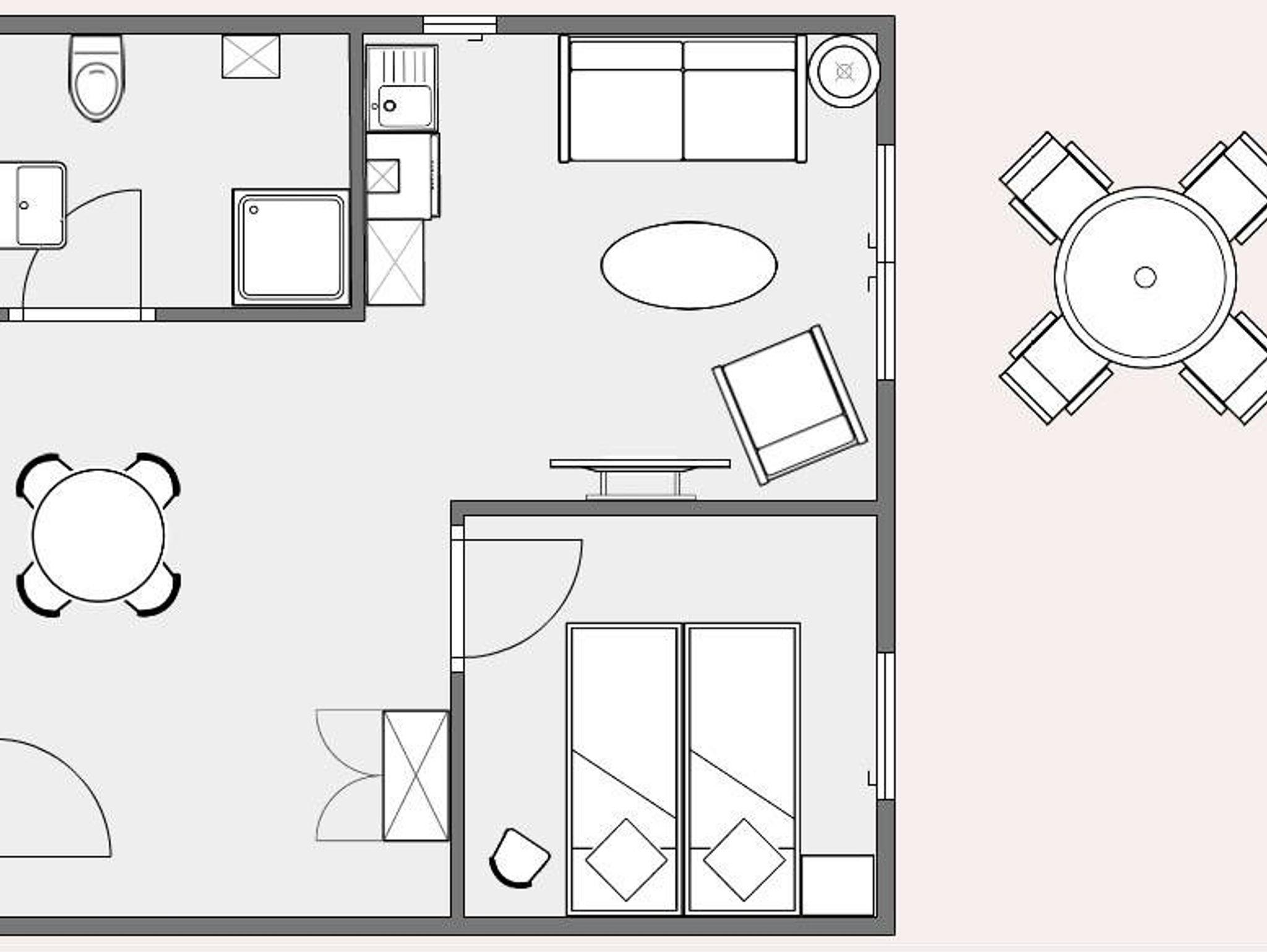 gelangen Sie auf die sonnige Terrasse und den großen Garten. Das Duschbad ist mit einer ebenerdigen Dusche, Waschtisch und WC ausgestattet. Das Schlafzimmer ist mit einem Doppelbett ausgestattet und bietet auch Platz für ein Babybett. Zusätzliches separates Schlafzimmer auf Anfrage möglich.