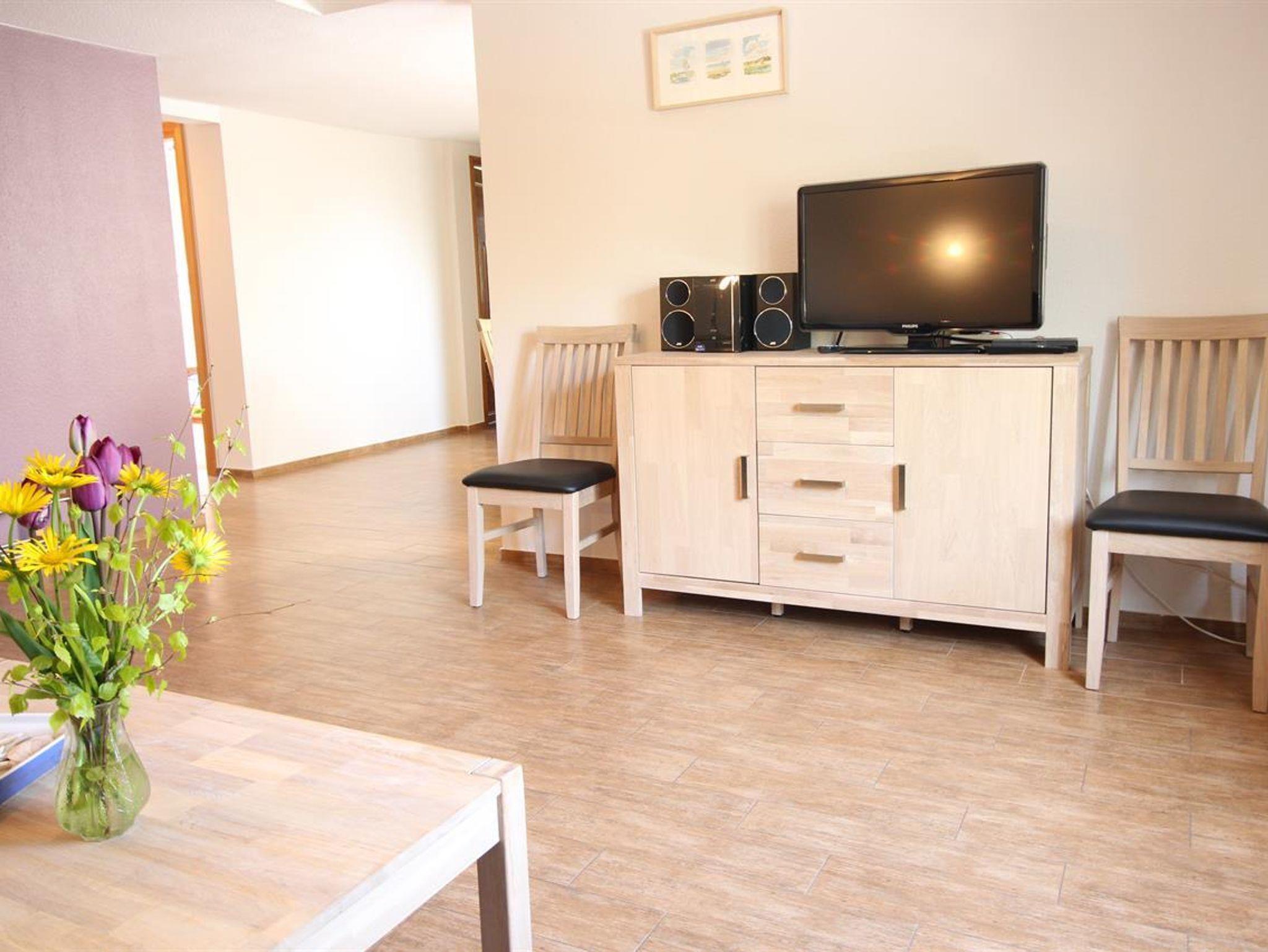 Es erwartet Sie die große Ferienwohnung mit 80 qm für 6 Personen (+maximal ein Baby) im Obergeschoß des Hauses mit einem Südbalkon.