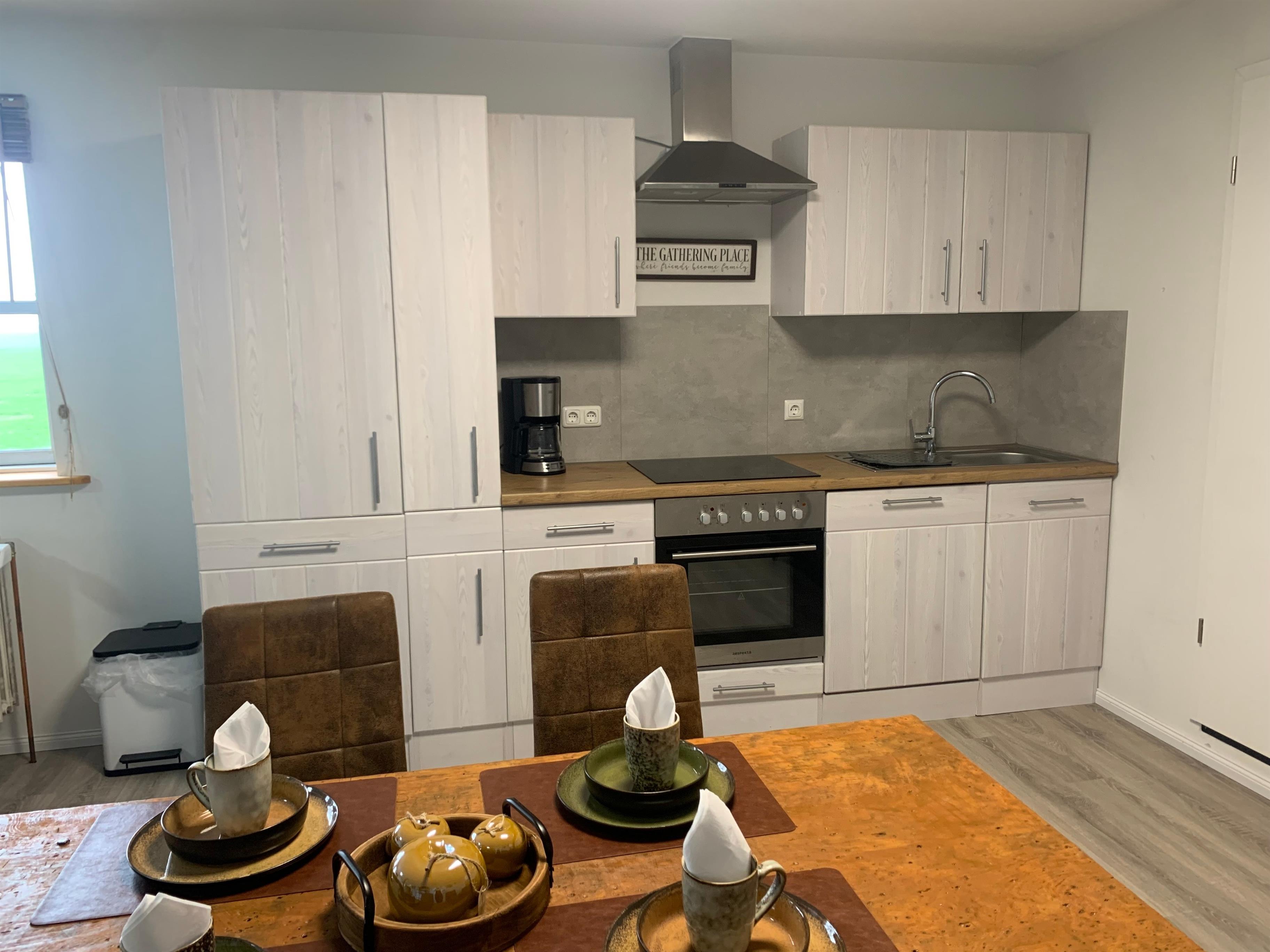 Unsere modern eingerichtete Ferienwohnung bietet ausreichend Platz für 2 Erwachsene und 2 Kinder. Der einladende Wohn- und Essbereich mit offener Küche lädt zum verweilen ein. Im Kinderschlafzimmer befindet sich ein Etagenbett. Direkt vor der Tür findet auch ein grosser Pkw Platz. In unserem weitläufigen Garten finden sie auch eine separate Grillecke mit Essplatz.