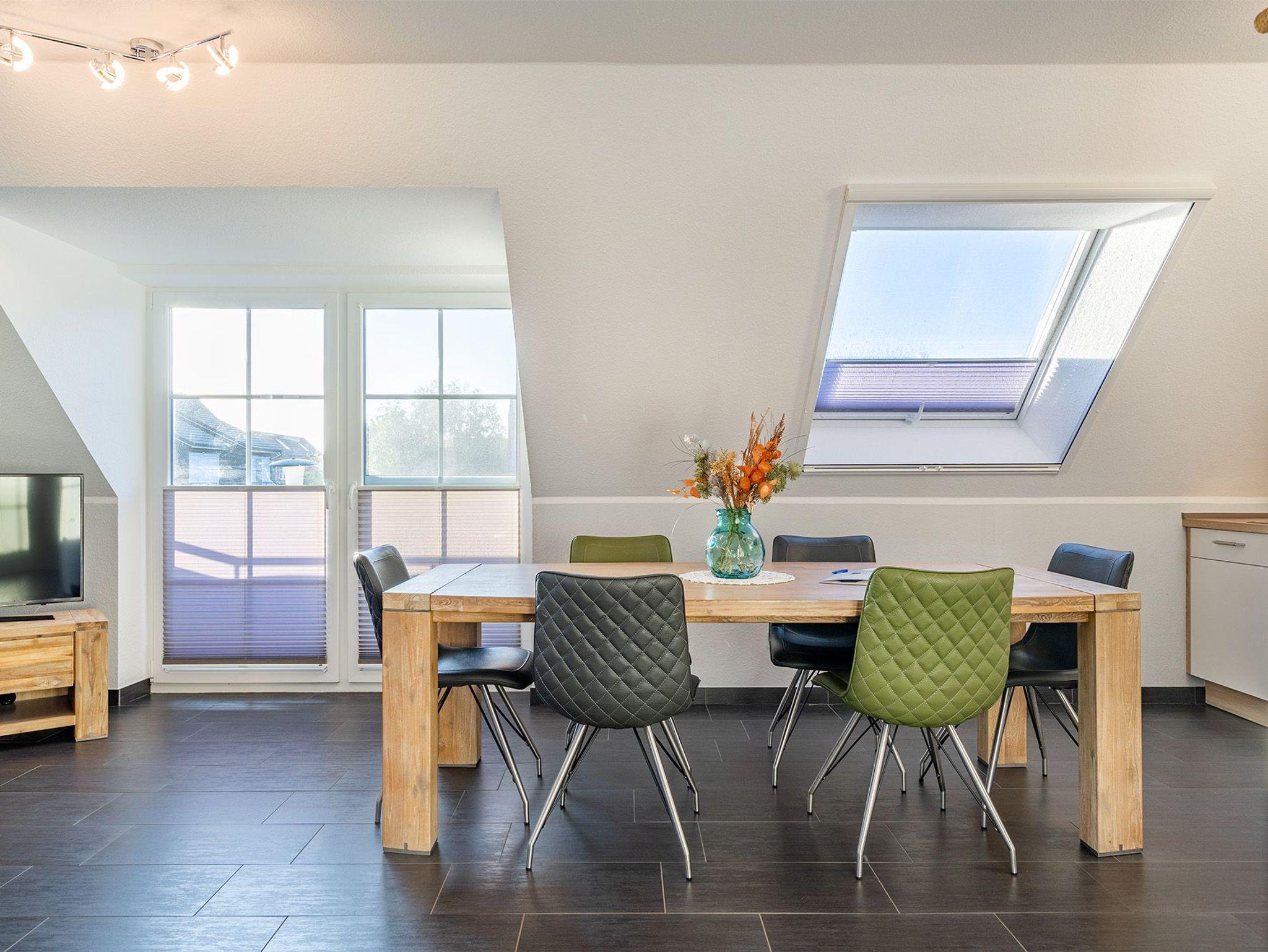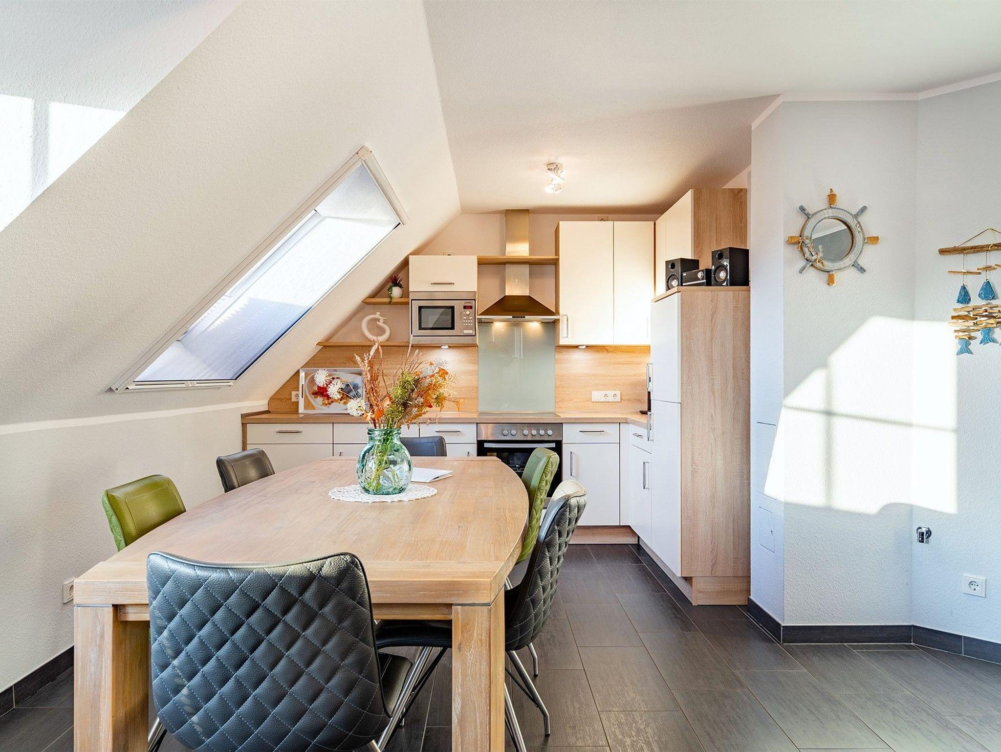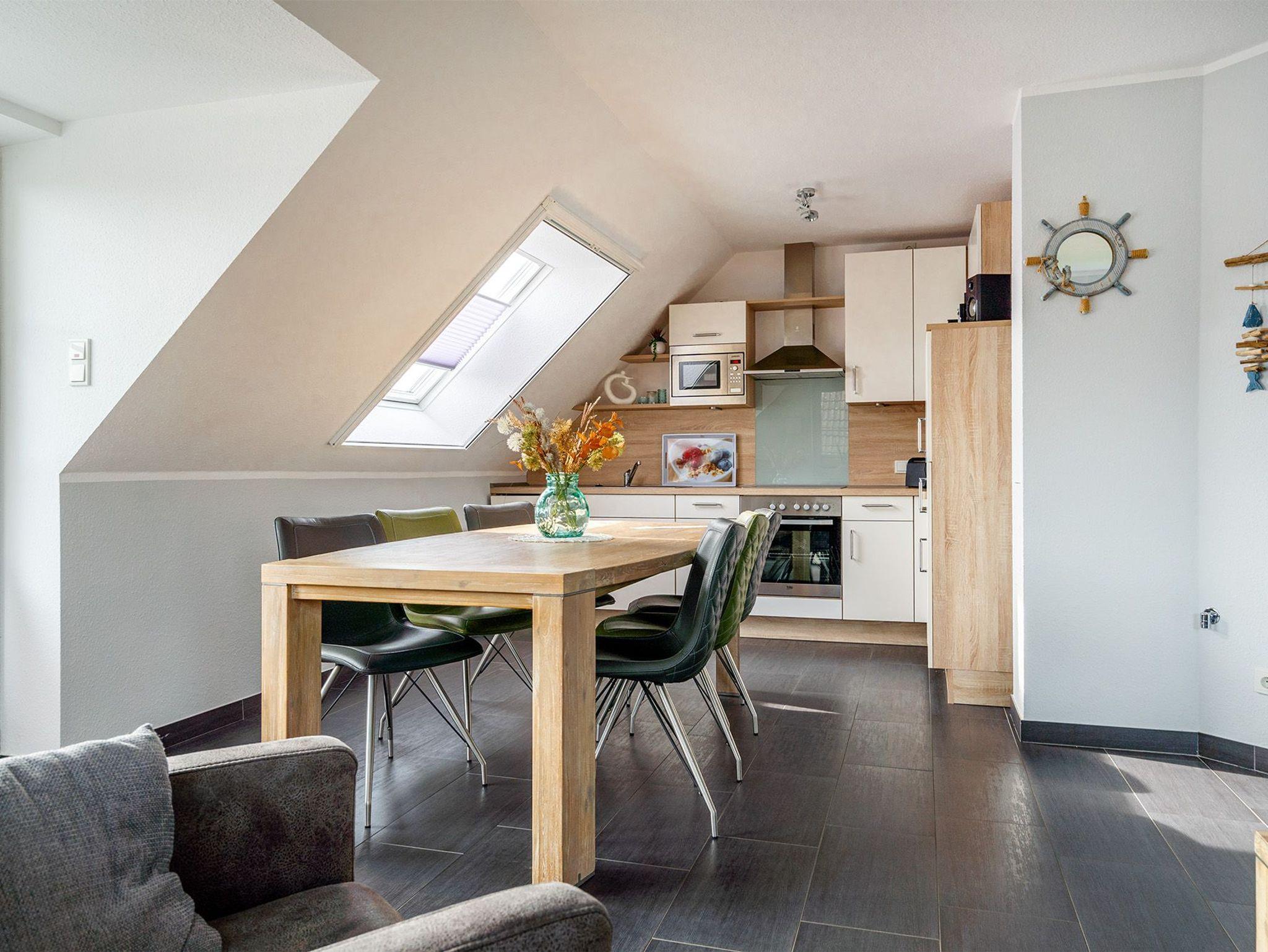 Herzlich willkommen in unserer Ferienwohnung Küstenzeit. Zur modernen und hochwertigen Einrichtung dieser Wohnung im Obergeschoss gehören zwei Schlafzimmer, ein Tageslichtbad, Fußbodenheizung sowie eine voll ausgestattete Küche. Der lichtdurchflutete und gemütliche Wohnraum bietet mit seinem großen Esstisch viel Platz zum gemeinsamen Verweilen, sowie Zugang zum möbilierten Balkon, von dem aus Sie die bekannten Greetsieler Zwillingsmühlen sehen und die Sonnenstunden genießen können. Das Hauptschlafzimmer bietet Ihnen ein gemütliches Doppelbett und einen geräumigen Kleiderschrank. Das zweite Schlafzimmer befindet sich im ausgebauten Spitzboden (Galerie) und verfügt über zwei Einzelbetten und eine Sitzecke. Selbstverständlich stehen Ihnen ein eigener Parkplatz, sowie eine Abstellraum für Ihre Fahrräder zur Verfügung.
