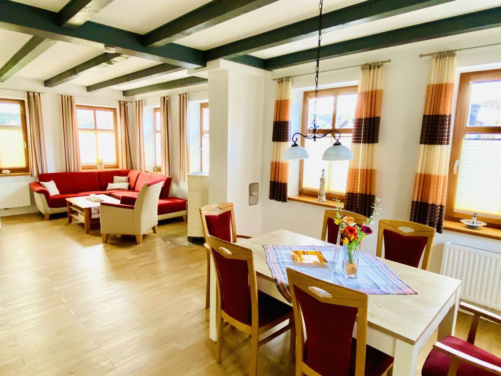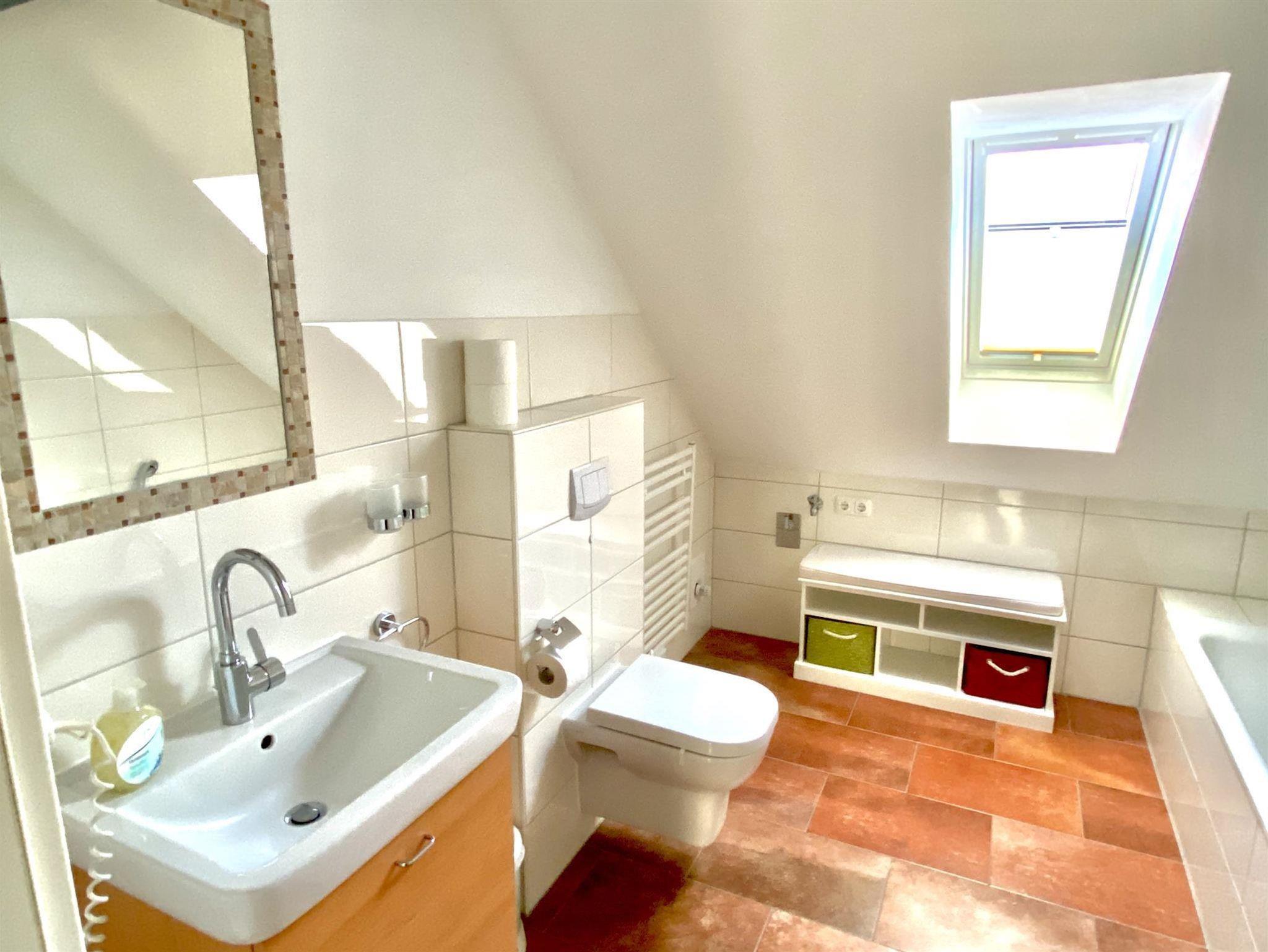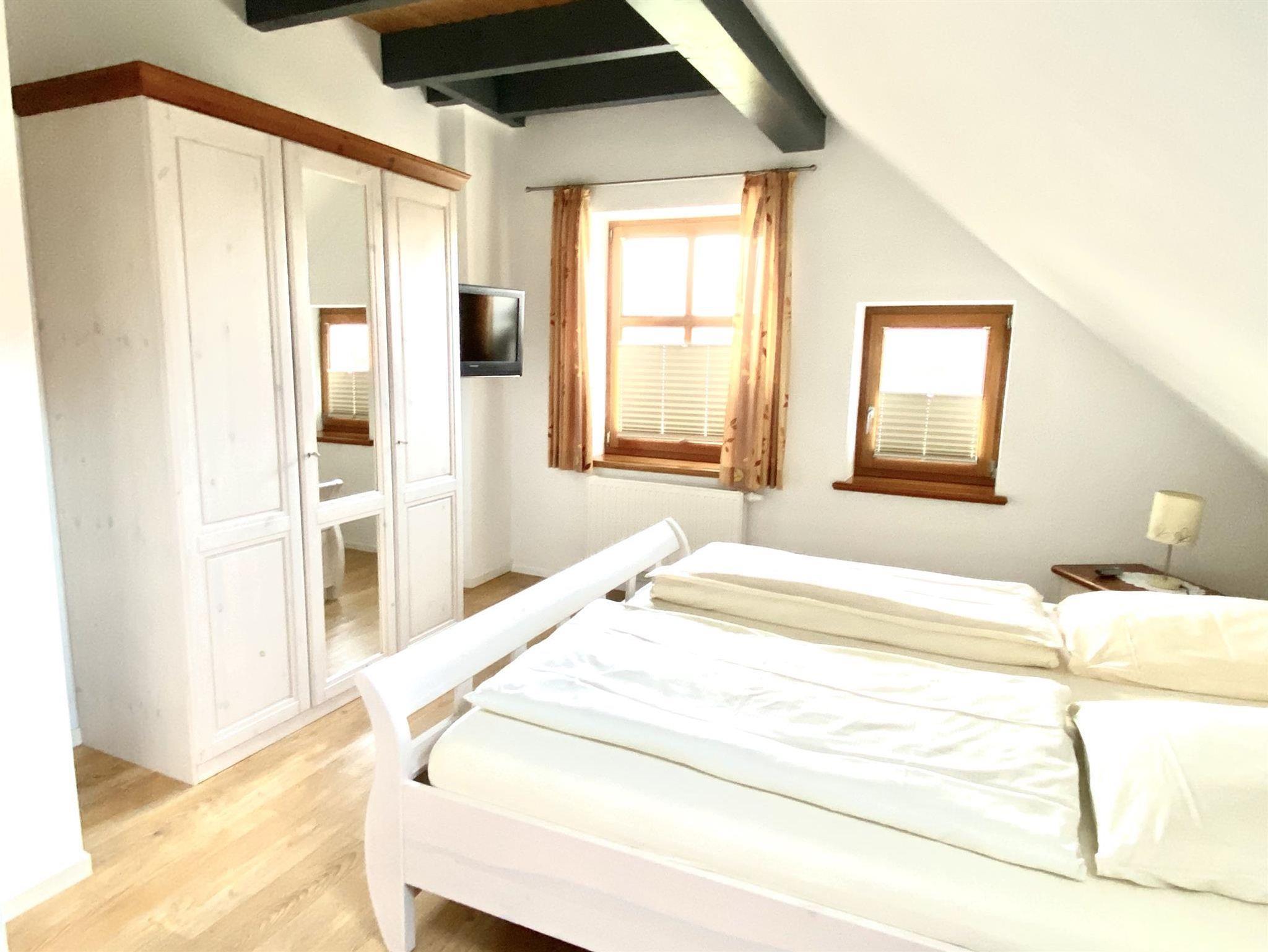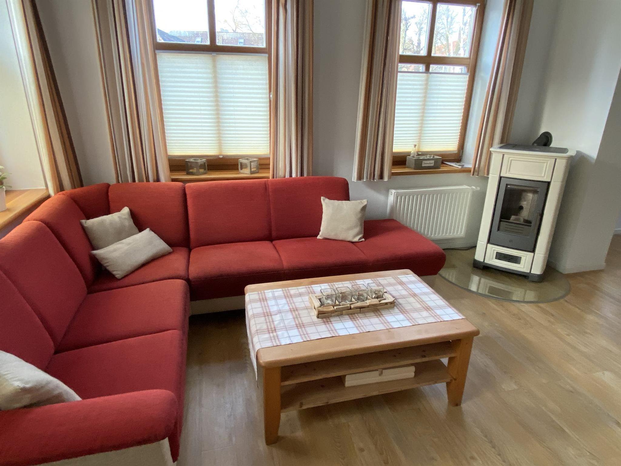 Die Wohnung 3 hat eine Wohnfläche von 90 m² und besteht aus einem großen Wohnzimmer mit Kamin, einer Essecke und Einbauküche, zwei Schlafzimmern mit TV und zwei Badezimmern. Auch diese Wohnung liegt direkt am Deich und ist nur 2 Minuten vom Ortskern entfernt.