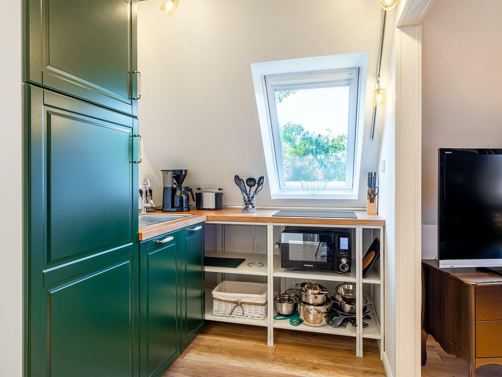 * Die Treppe zur Wohnung ist mit einer Absturzsicherung für Kinder und Hunde versehen. Außerdem verfügt die Wohnung über zwei Schlafsofas, sodass auf Anfrage 4 Personen untergebracht werden können. *