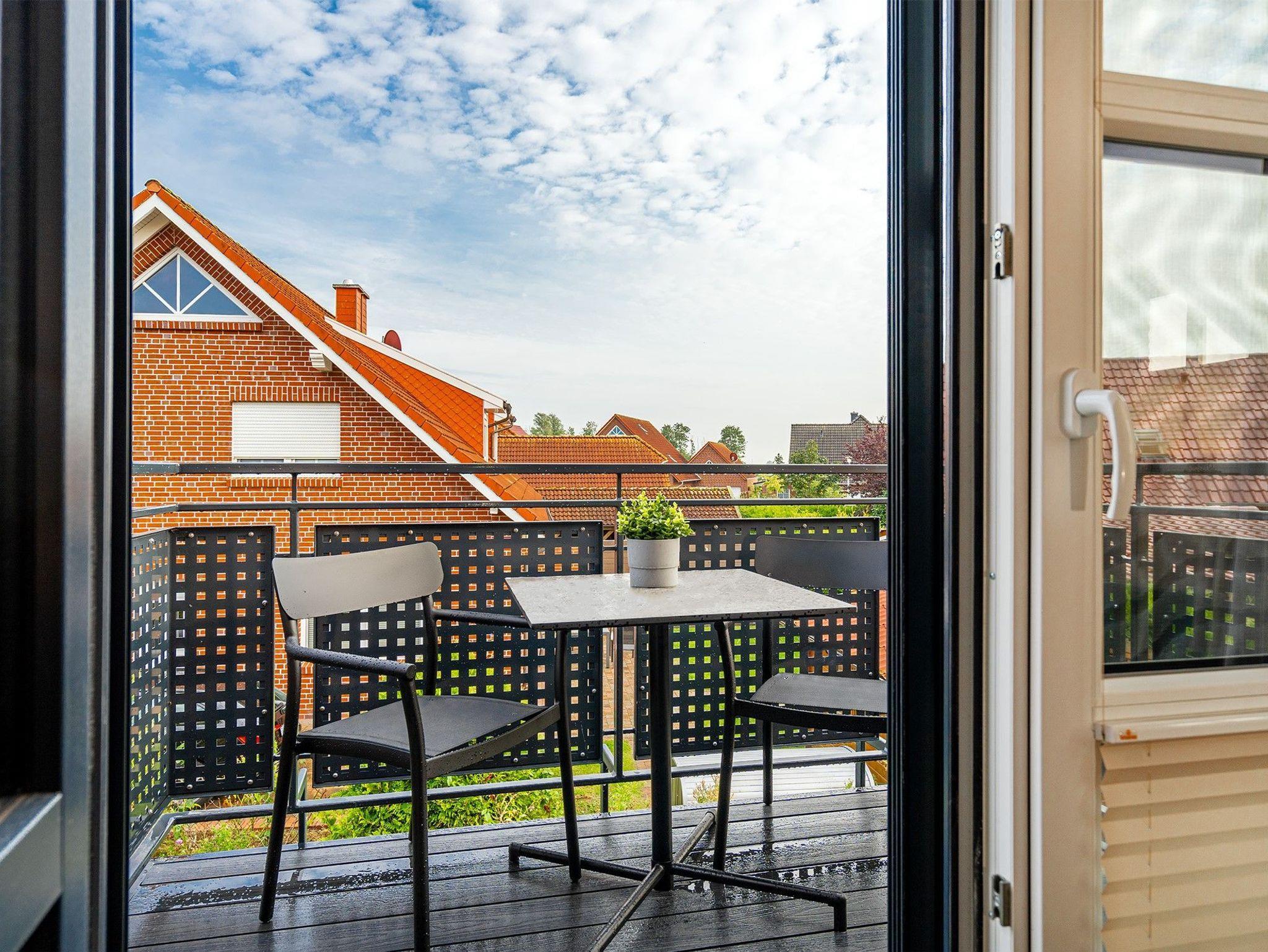 Charmante Obergeschosswohnung Möwenkoje in Greetsiel mit Balkon und moderner Ausstattung für erholsamen Nordseeurlaub.