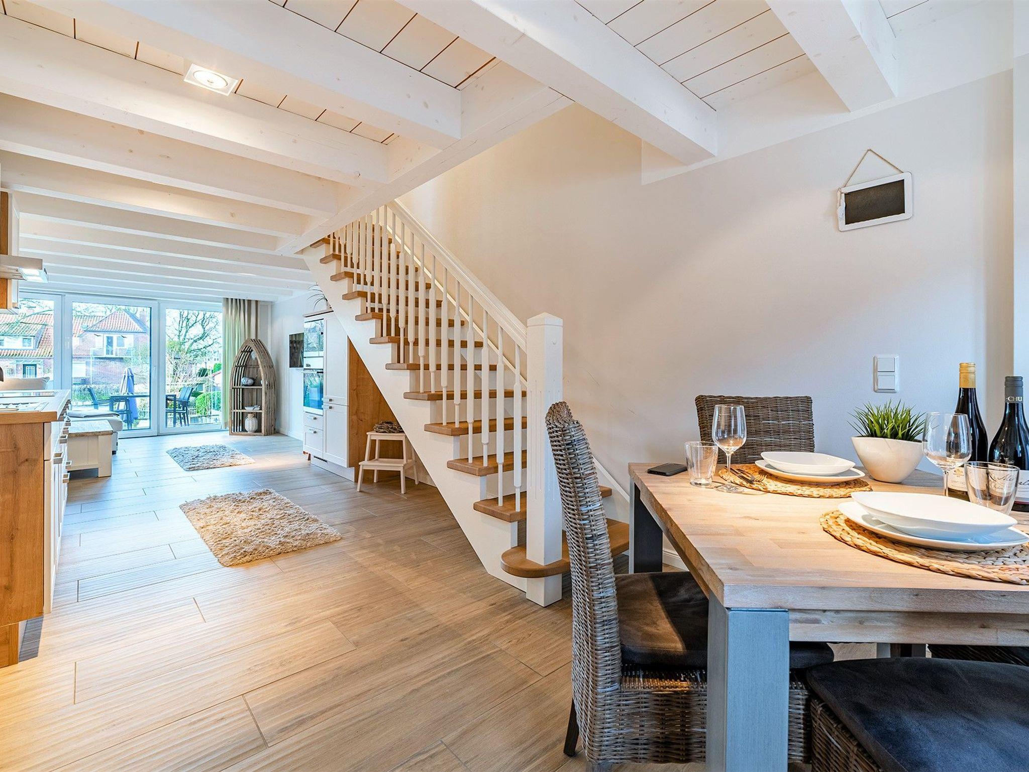 Das beliebte Ferienhaus befindet sich ganz zentral im historischen Zentrum Greetsiels, von hier aus sind es nur 150m zum Hafen. Es liegt ruhig in einer Seitenstraße und verfügt über direkten Wasserzugang mit wunderschöner Terrasse am Greetsieler Sieltief. Nach der aufwändigen Renovierung ist das Haus mit seiner modernen, wohnlichen und liebevollen Einrichtung ein gemütlicher Rückzugsort mit direktem Blick auf das Wasser. Neben einer offenen Küche, zwei Schlafzimmern und einem großen Badezimmer im Obergeschoss verfügt das komfortable Haus ebenfalls über ein Gäste-WC im Erdgeschoss. Ihre Fahrräder können Sie auf der Gemeinschaftsterrasse parken.
