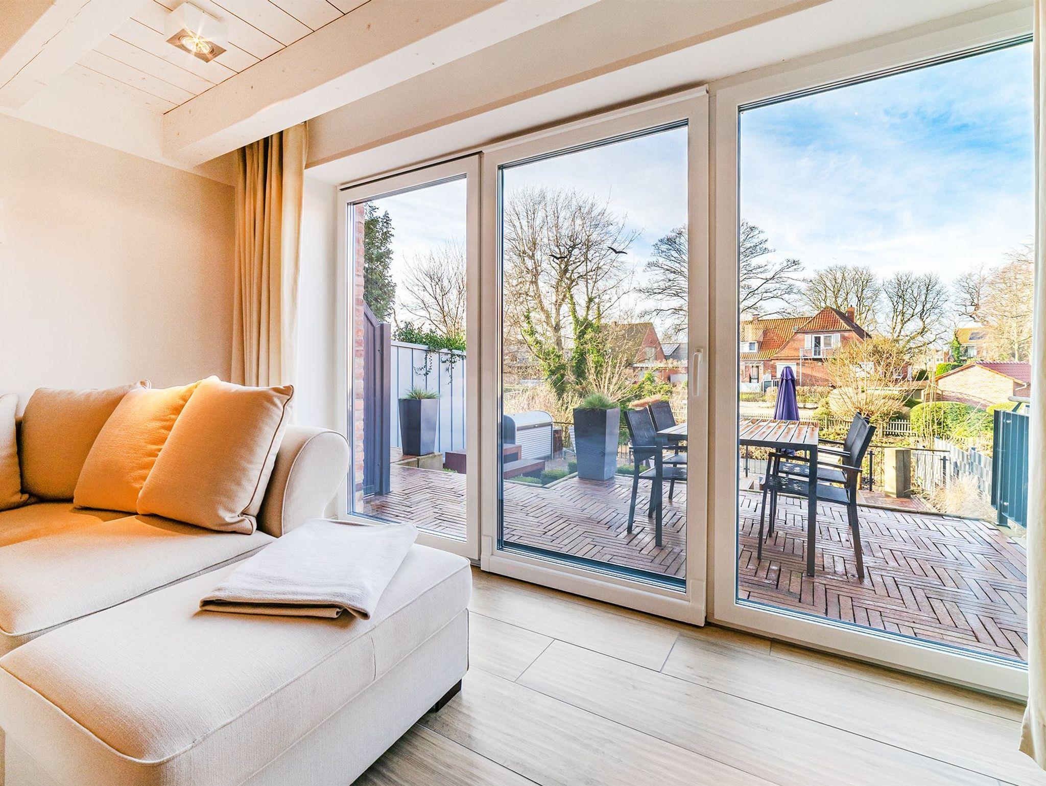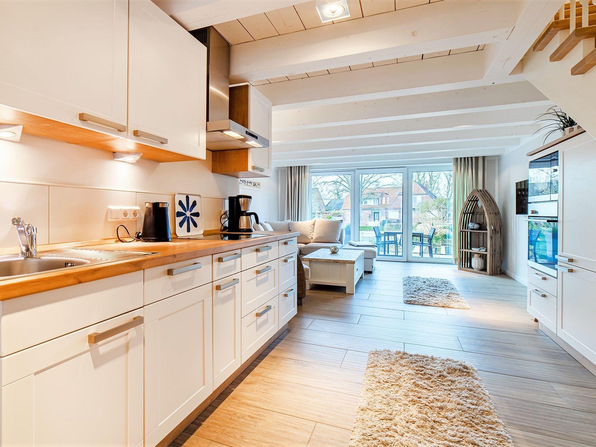 Das moderne Ferienhaus im historischen Greetsiel bietet eine ruhige Lage mit direktem Wasserblick und nur 150 m zum Hafen.