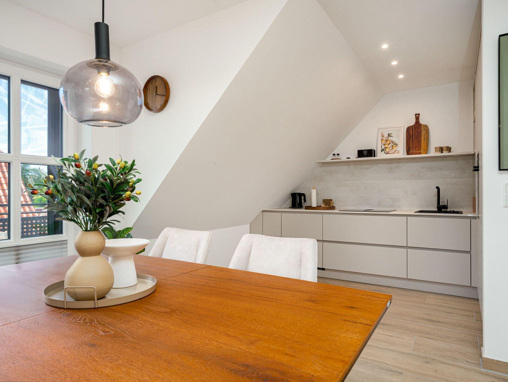 Unsere Ferienwohnung Windhuus 5 liegt im Obergeschoss eines Hauses mit sechs Wohneinheiten und verfügt über ca. 50qm Wohnfläche. Im offenen Wohn- und Essbereich mit integrierter Küchenzeile fühlen Sie sich sofort wohl. Von hier aus gelangen Sie direkt auf den Balkon, der zu entspannten Stunden an der frischen Nordseeluft einlädt. Das Schlafzimmer ist mit einem komfortablen Doppelbett ausgestattet und verspricht erholsame Nächte. Ergänzt wird die Wohnung durch ein modernes Tageslichtbad mit ebenerdiger Dusche. Durch die zentrale Lage erreichen Sie den historischen Hafen von Greetsiel, gemütliche Restaurants und kleine Läden bequem zu Fuß. Ob Spaziergänge, Radtouren oder einfach das Genießen der ostfriesischen Landschaft hier wird Ihr Aufenthalt zum Erlebnis.