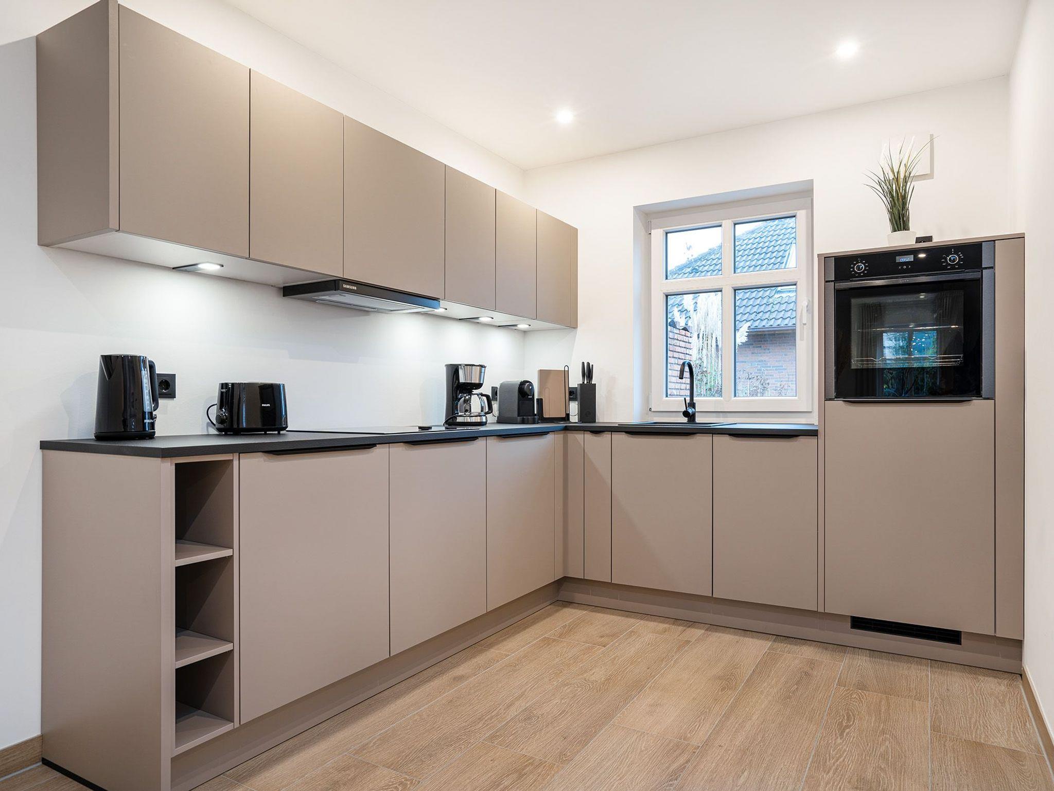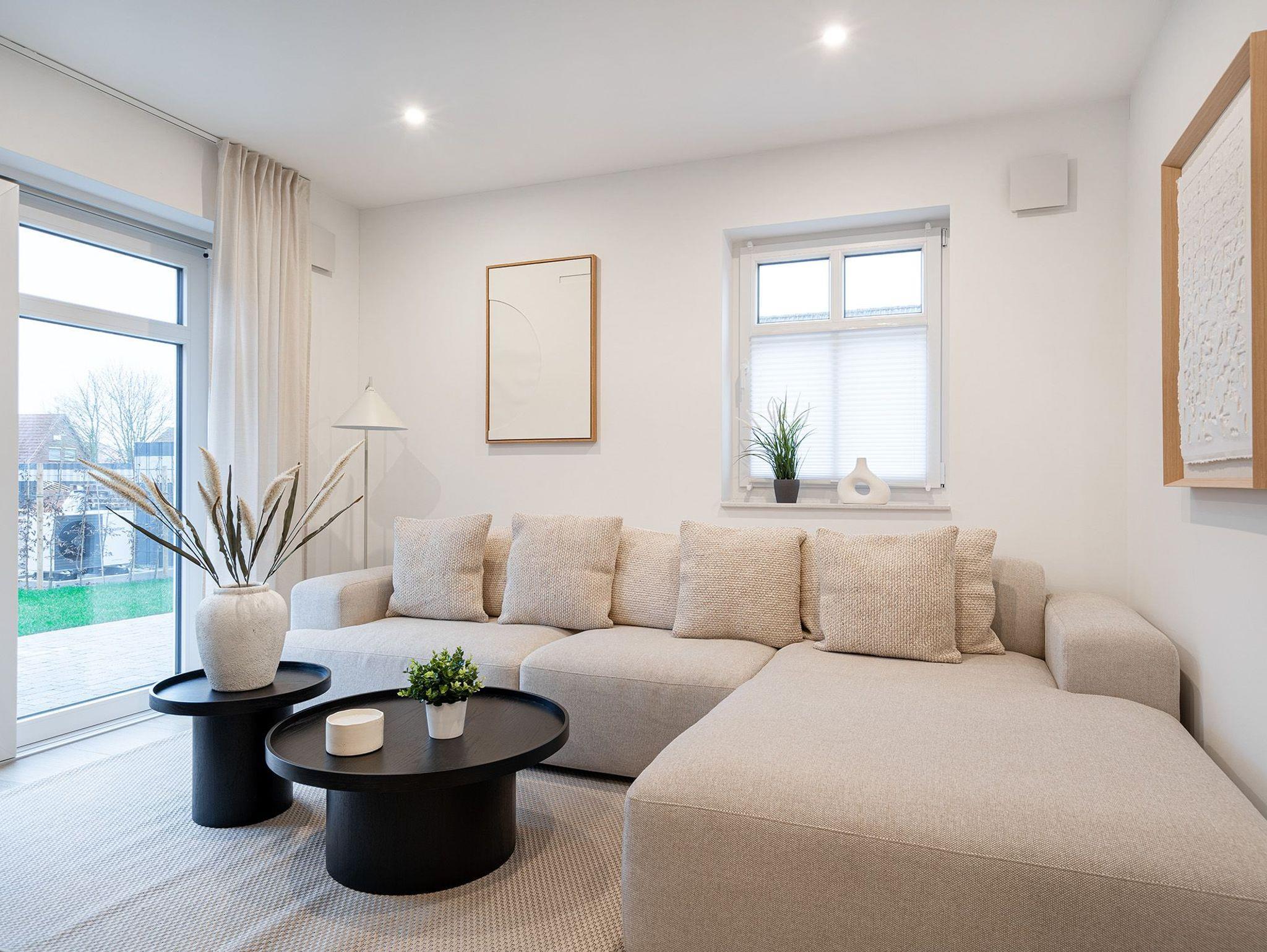 Unser neues Ferienhaus HafenKISTE 2 liegt ideal in einer ruhigen Sackgasse im Zentrum Greetsiels. Schon beim Betreten des Hauses kann man sich nur wohlfühlen, denn die Einrichtung des Haus in warmen Erdtönen wurde äußerst hochwertig und mit viel Liebe zum Detail ausgewählt. Im Erdgeschoss finden Sie einen einladenden Wohnbereich mit einer bequemen Sofalandschaft und Zugang zum Garten, eine große Einbauküche mit hochwertigen Geräten, ein äußerst geschmackvoller Essbereich sowie einen Abstellraum. Das helle Tageslichtbad mit ebenerdiger Dusche und Doppelwaschbecken rundet die Exklusivität ab. Im Obergeschoss befindet sich neben den beiden geräumigen Schlafzimmern ein weiteres Tageslichtbad mit Dusche, was das Haus sehr komfortabel für den gemeinsamen Urlaub mit Freunden oder der Familie macht. Besonders hervorzuheben ist die seltene Kombination, die in einer zentralen Lage kaum zu finden ist: mitten im Herzen Greetsiels gelegen, verfügt das Haus nicht nur über eine ruhige Atmosphäre, sondern auch über einen eigenen Garten, eine Terrasse und sogar zwei private Parkplätze.