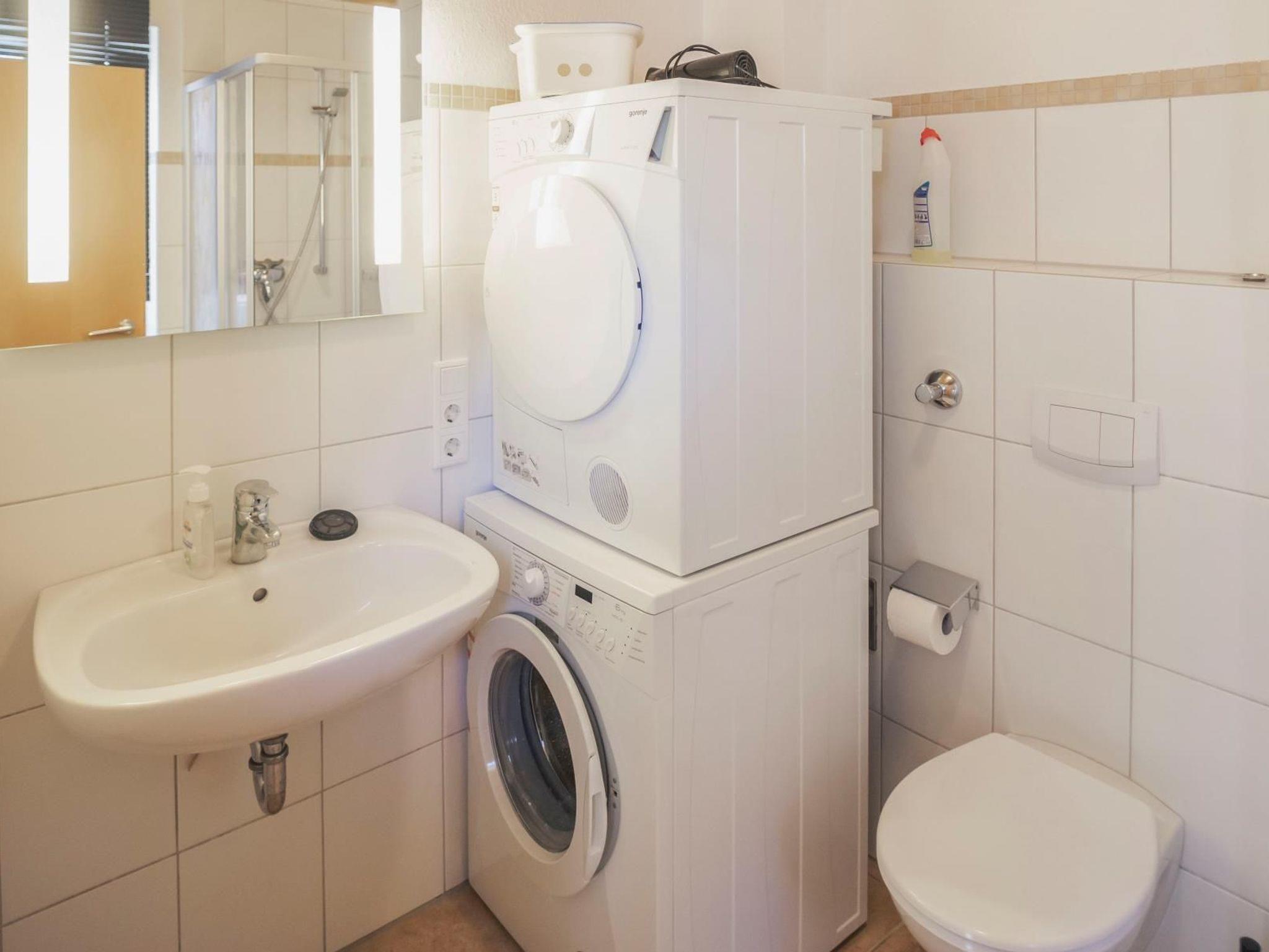 Bad mit Fenster im EG mit Dusche, Waschmaschine und Wäschetrockner.