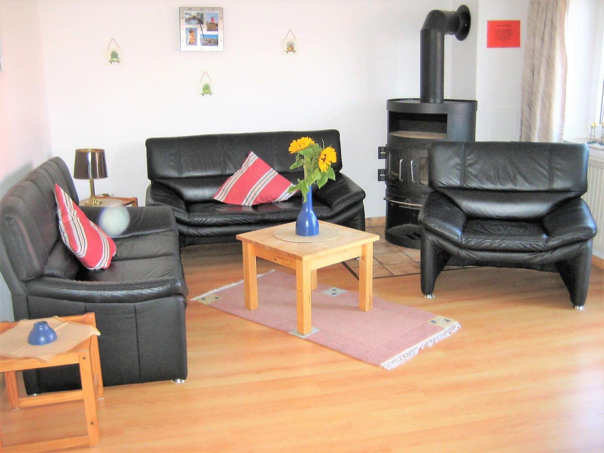 Wohnraum mit integrierter Küchenzeile und Essecke, 2 Schlafzimmer, Du / WC, Balkon und Garten, Sat-TV, Stereoanlage, Kaminofen(nur noch als Notfallheizung nutzbar), Bettwäsche auf Anfrage.