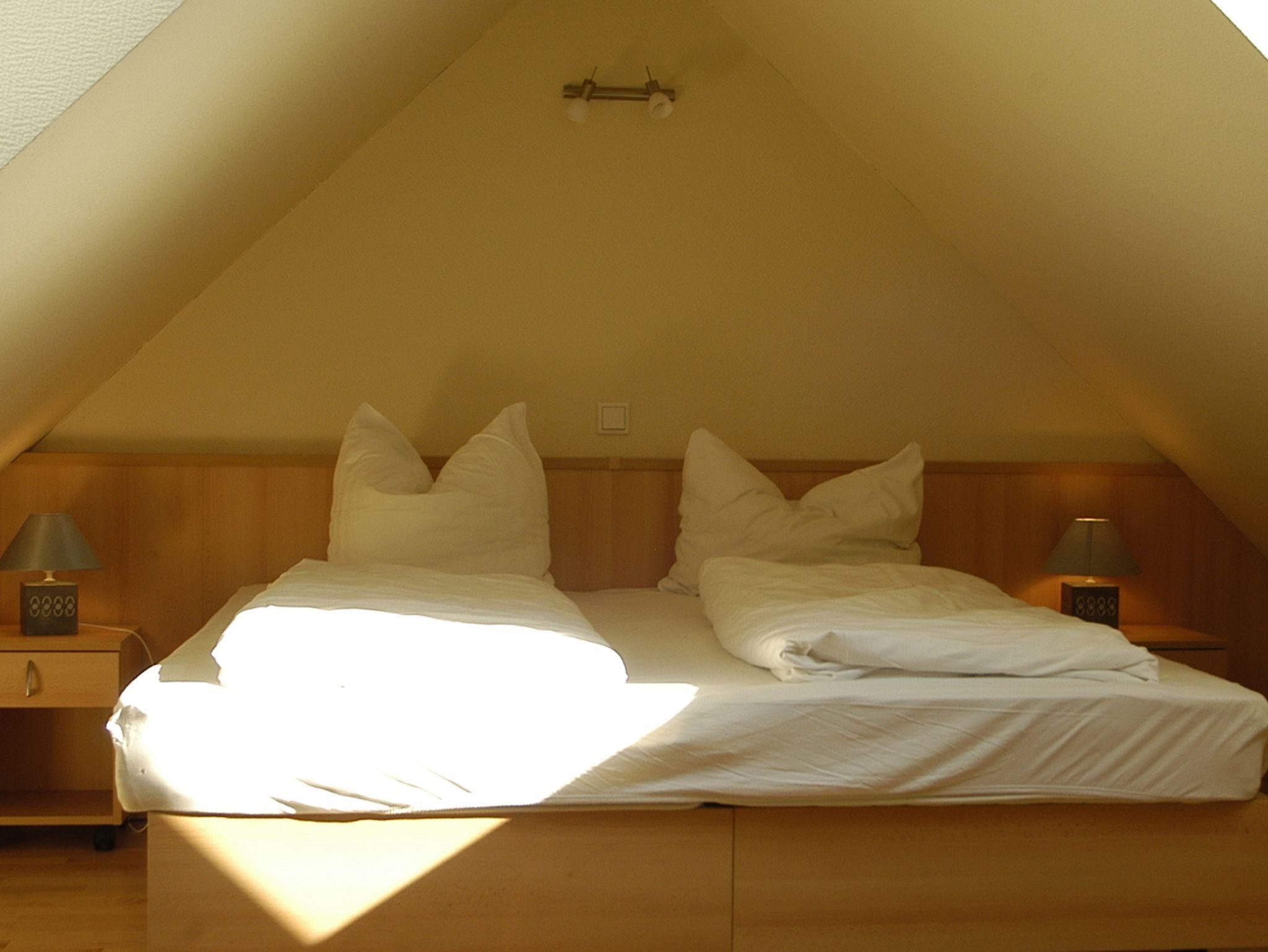 * offenes Dachgeschoss-Schlafzimmer mit Doppelbett
