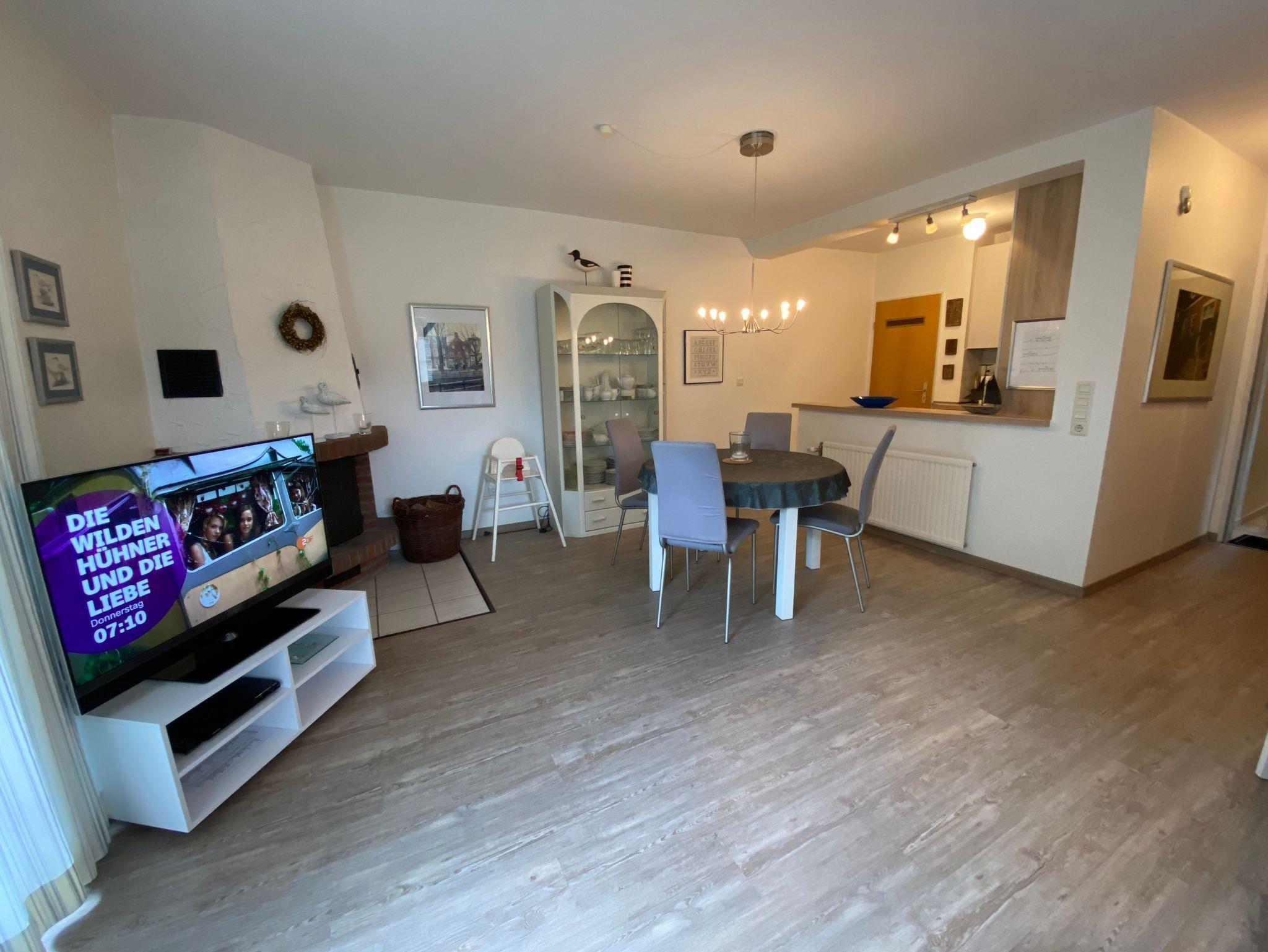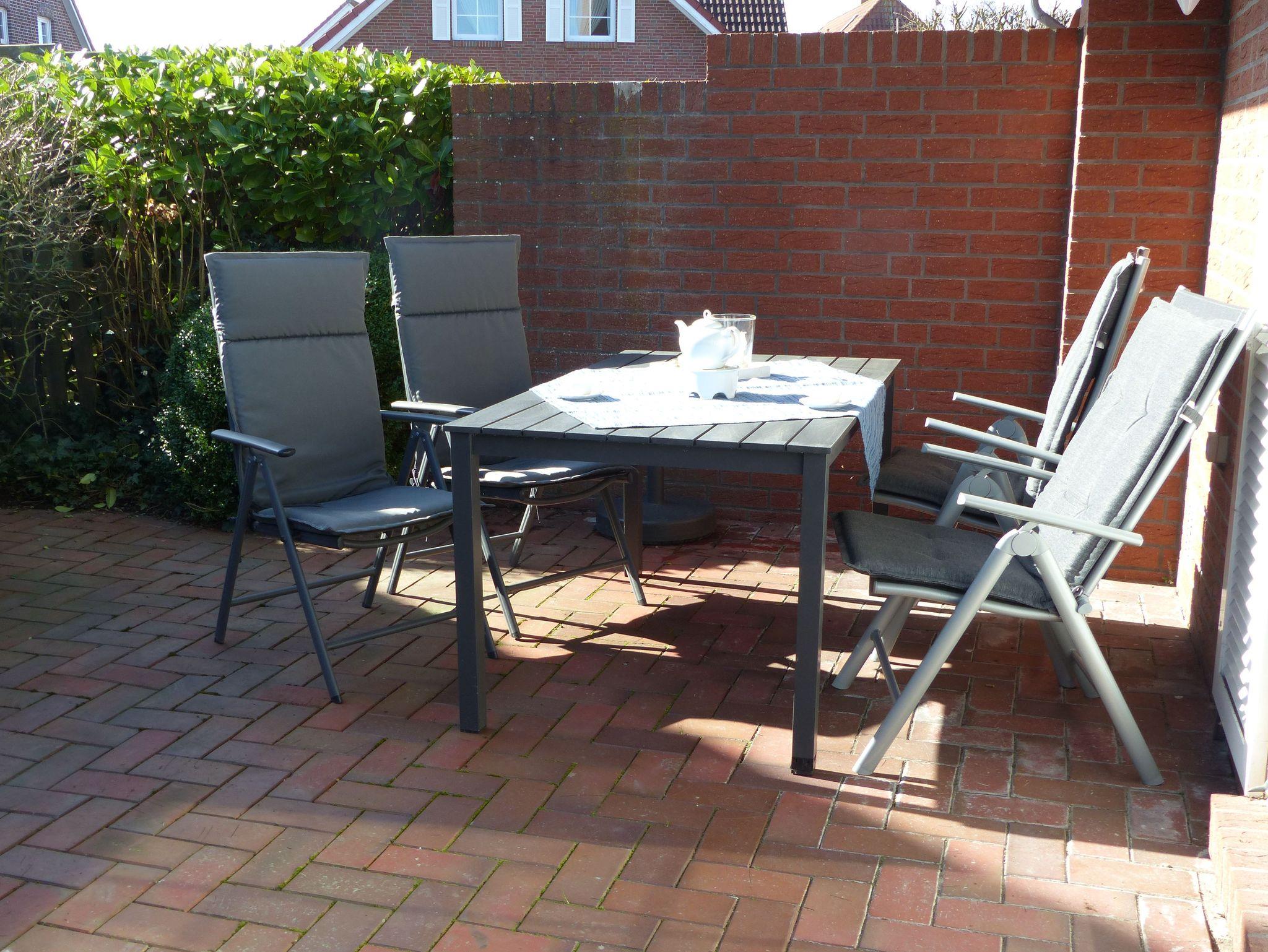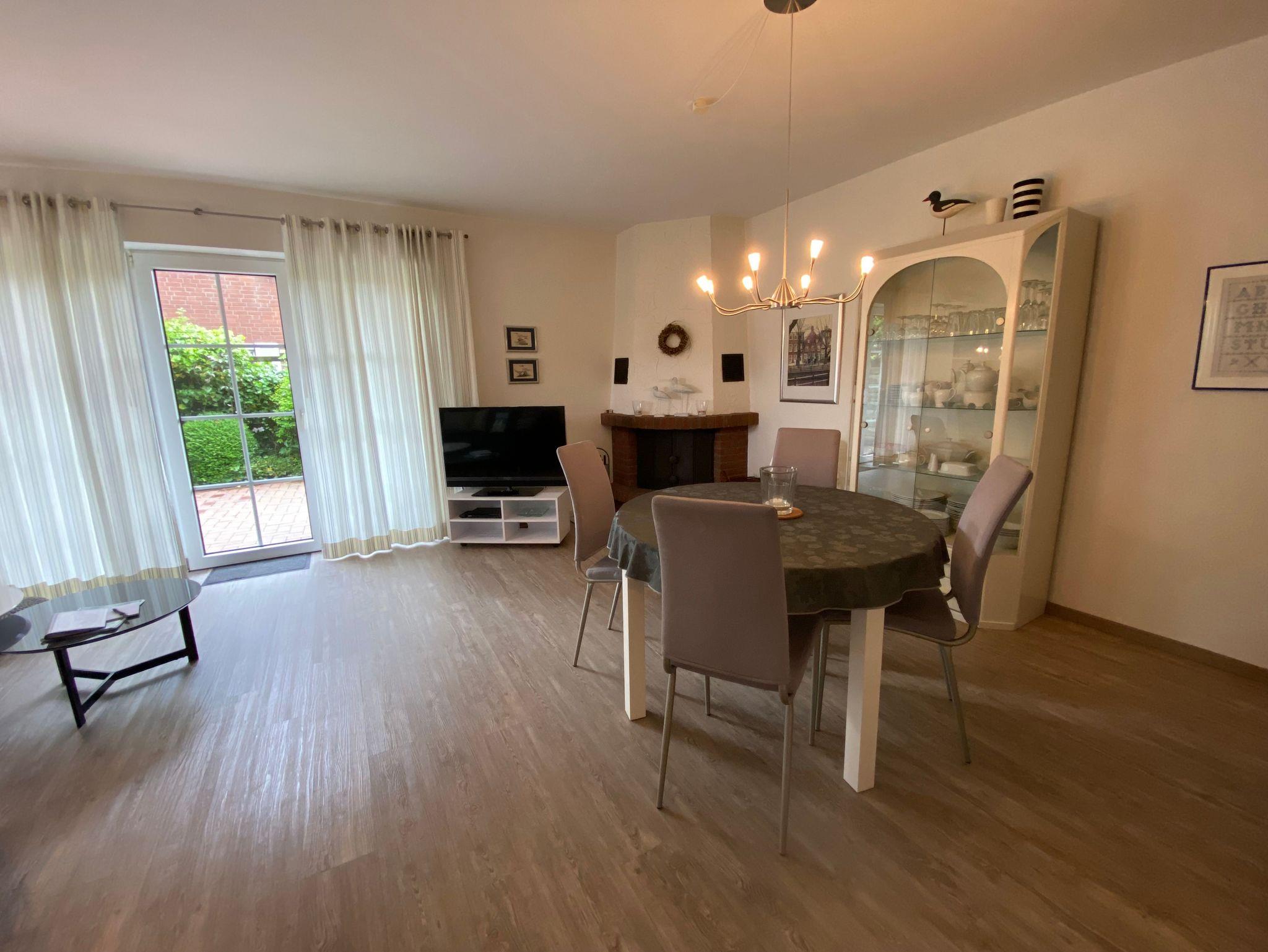 Gemütliche Erdgeschosswohnung mit Kamin, Terrasse und Garten in Greetsiel für erholsame Ferien.