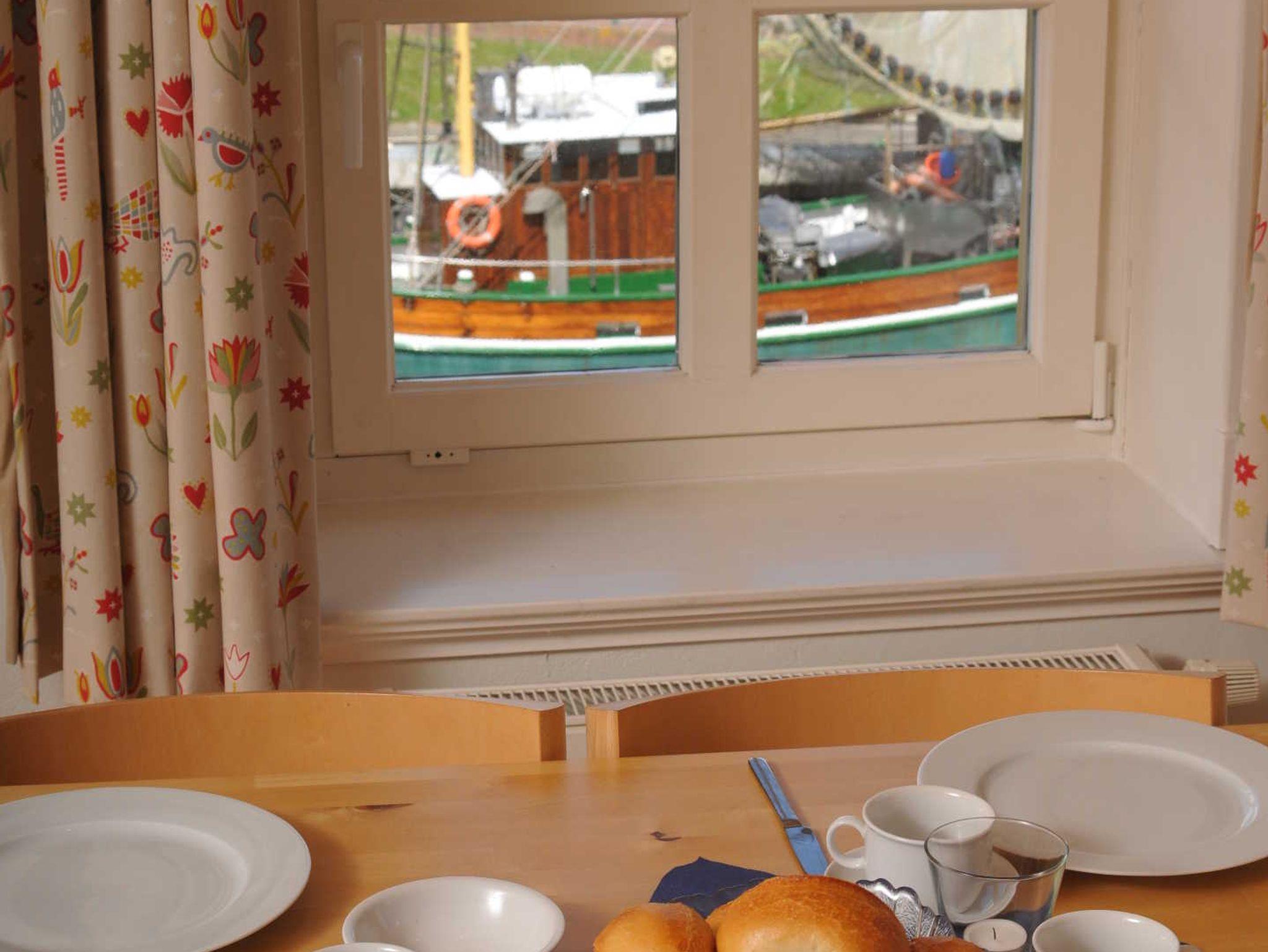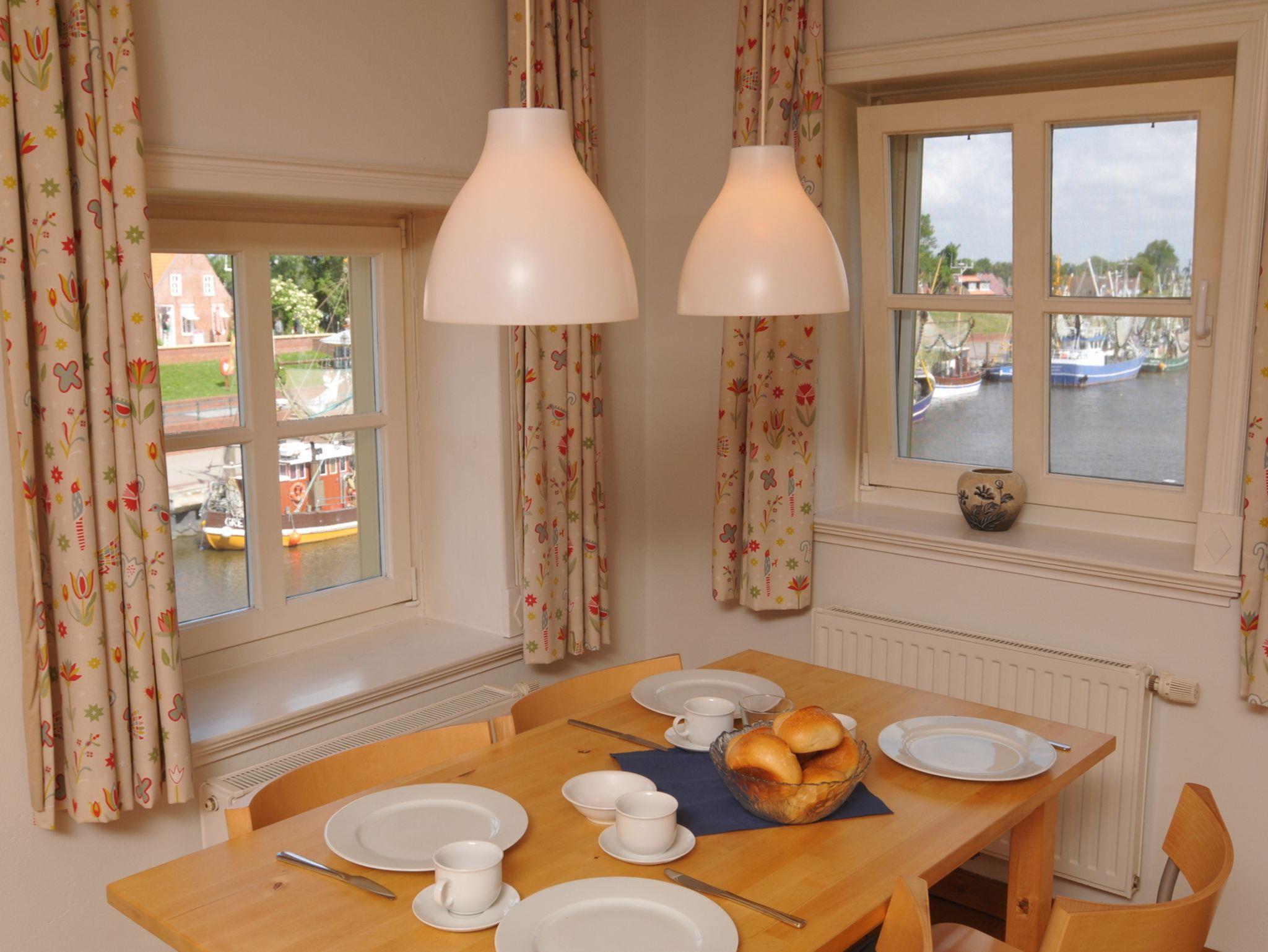 Die Wohnung sieht direkt auf dem Hafen von Greetsiel aus. Tagsüber sieht man auf das lebendige Treiben am Hafen - am Abend und nachts ist es sehr ruhig.