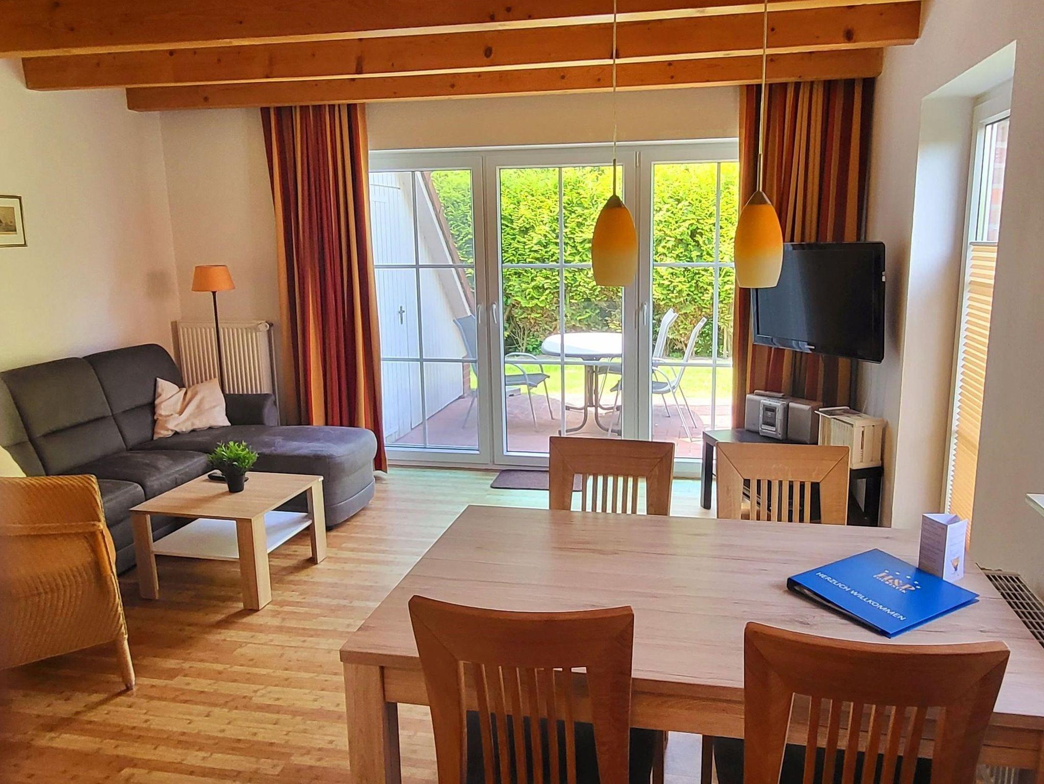 Der helle Wohnraum mit bequemer Couchgarnitur lädt zum Entspannen und Verweilen ein. Ob Spieleabend, Filmabend oder einfach gemütliches Beisammensein ? hier kommt Urlaubsstimmung auf. Für Unterhaltung sorgen SAT-TV, ein Blu-ray-DVD-Player sowie eine Mini-HiFi-Anlage mit CD-Player.