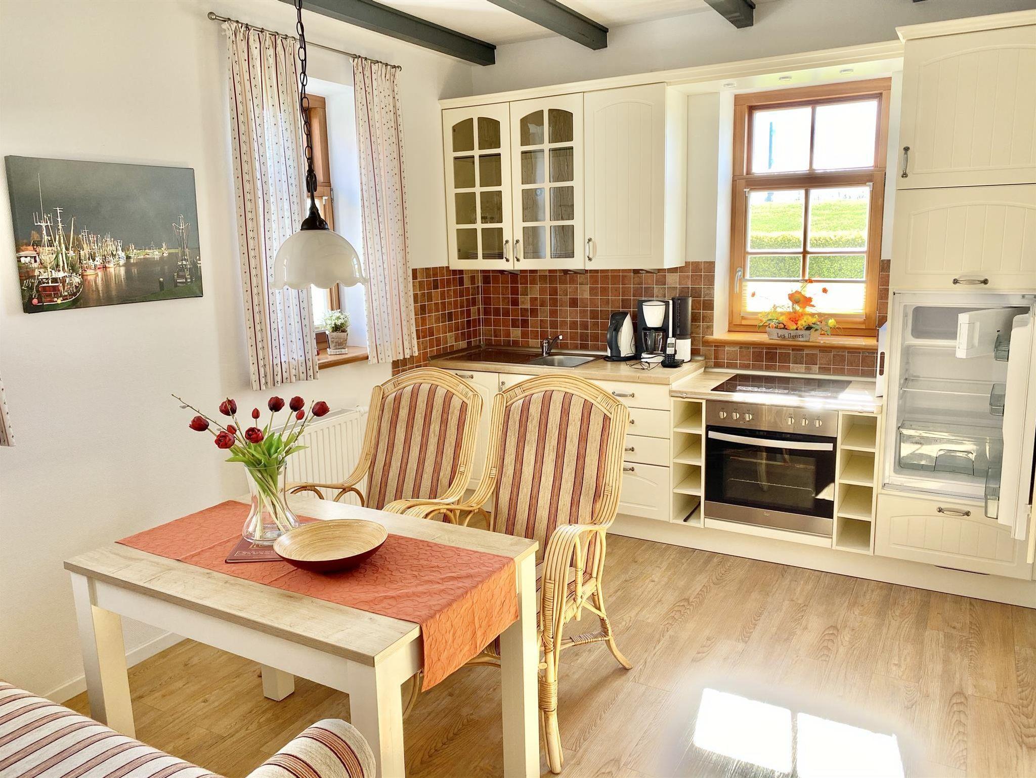 Wohnung 1 hat eine Wohnfläche von 60 m² und besteht aus einer Wohnküche mit einer Einbauküche, einem Schlafzimmer mit TV, einem Badezimmer und einem Wohnzimmer mit einer zusätzlichen Schlafgelegenheit. Aus dem Wohnzimmer heraus haben Sie einen wunderschönen Blick auf den Yachthafen mit den vielen Segelbooten und auf den malerischen Fischereihafen mit der größten Krabbenkutterflotte an der norddeutschen Küste.