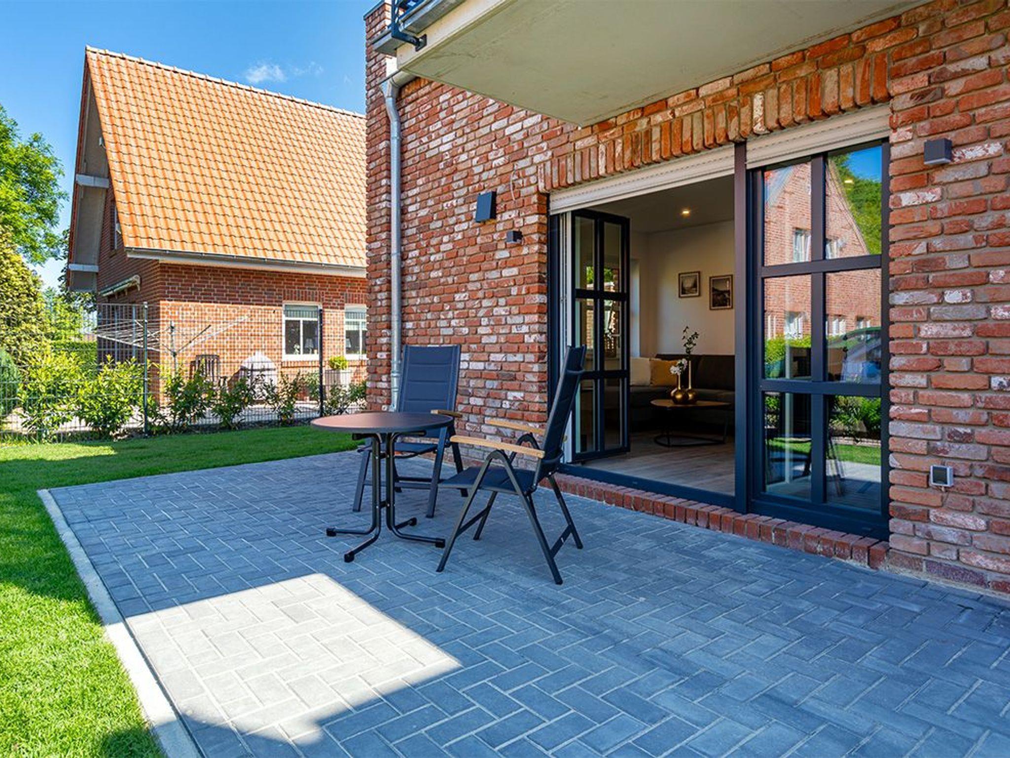 Moderne Ferienwohnung FriesenKOJE 2 mit Terrasse und umzäuntem Garten in ruhiger Lage nahe Greetsieler Mühlen.