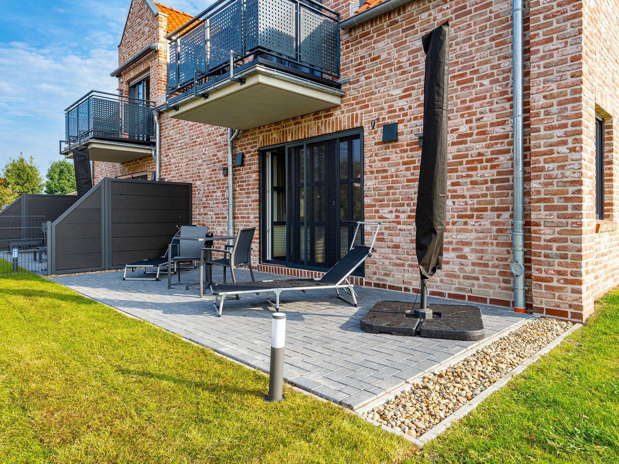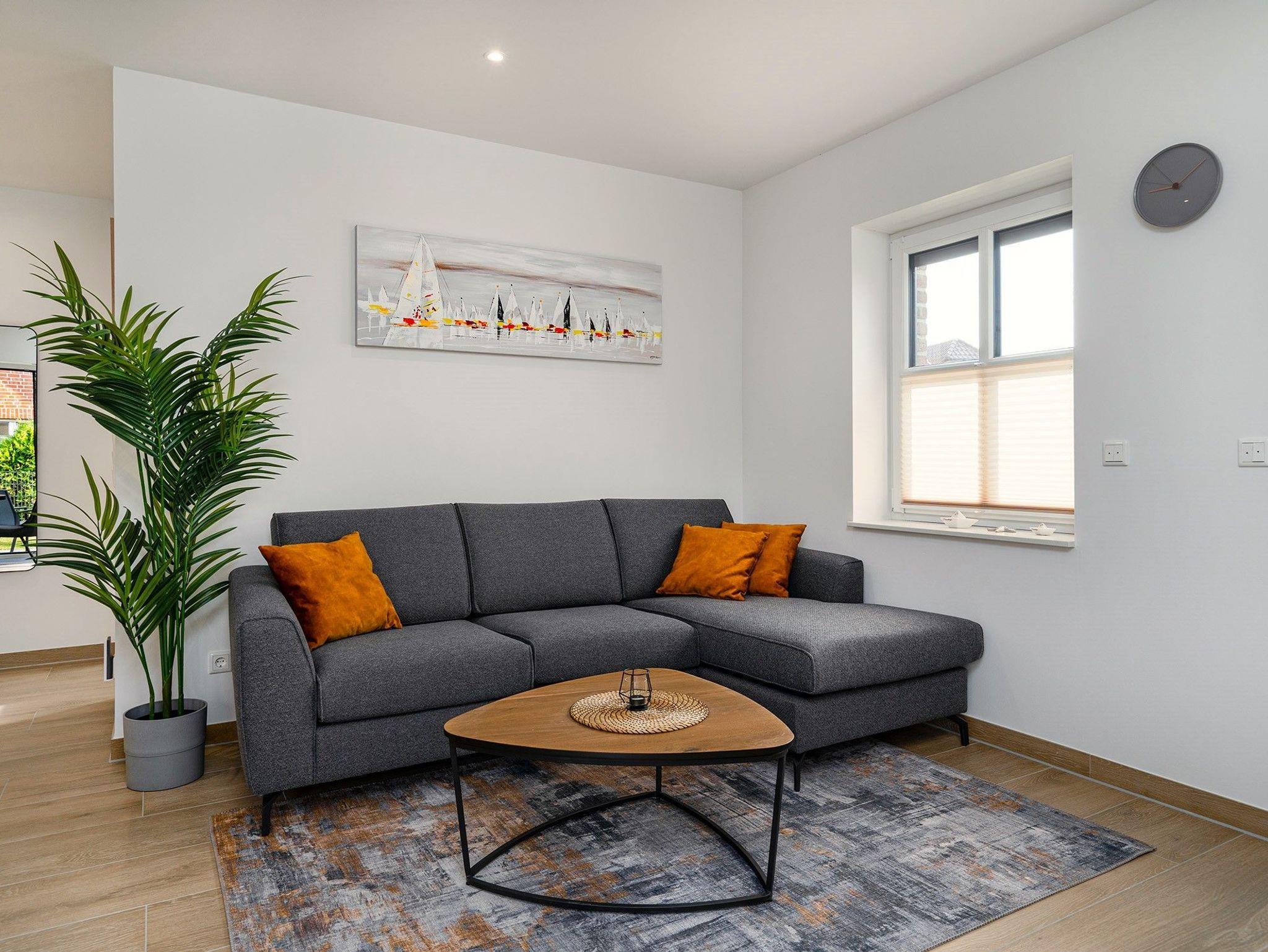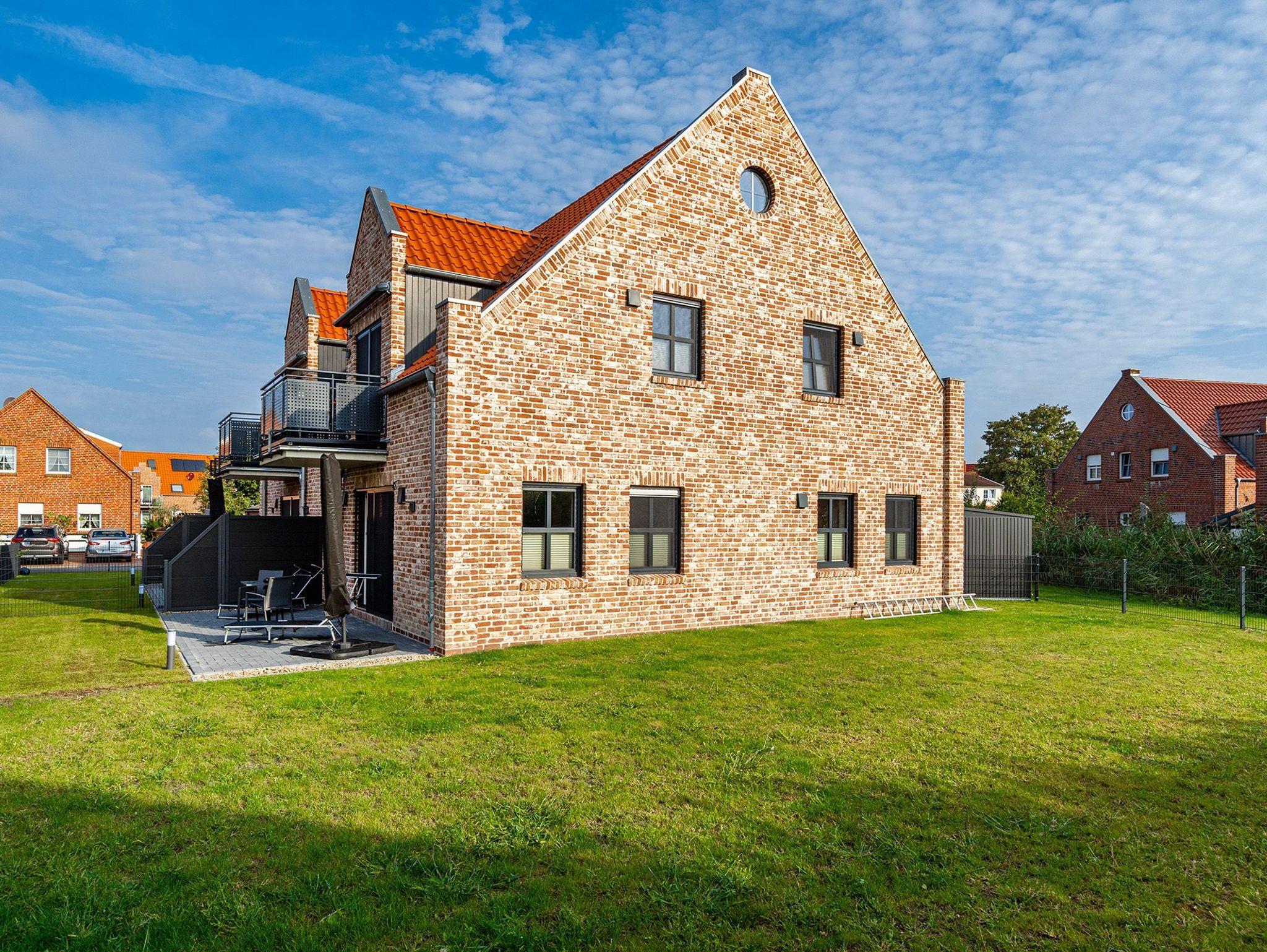 Moderne Ferienwohnung Vista 9 in Greetsiel mit Terrasse, Garten, E-Bike-Ladestation und hundefreundlichem, umzäunten Grundstück.