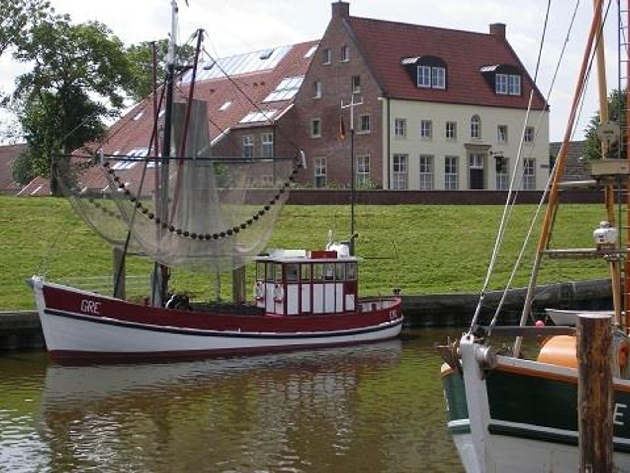 Das Amtmannshaus Hauen in Greetsiel bietet eine komfortable Ferienwohnung direkt am Fischerhafen mit Garten und Parkplatz.