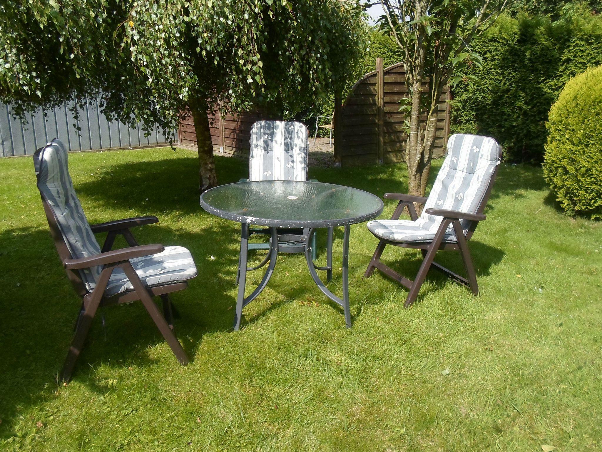 Die ca. 50 qm große Ferienwohnung in der 1. Etage hat ein Wohnzimmer mit Couchgarnitur, Sat TV, Radio und Schrank. Eine separate Küche mit Backofen, Ceranfeld, Kühlschrank, Kaffemaschine usw. finden Sie ebenfalls. Die Schlafzimmer sind aufgeteilt in einem Doppelzimmer mit kompletter Einrichtung und ein Einzelzimmer bei dem auf Wunsch ein Zustellbett (für Kleinkinder) mit rein gestellt werden kann. Im Badezimmer befindet sich eine Dusche. Handtücher werden kostenlos gestellt. Großer Garten mit Grillmöglichkeit zur Verfügung.