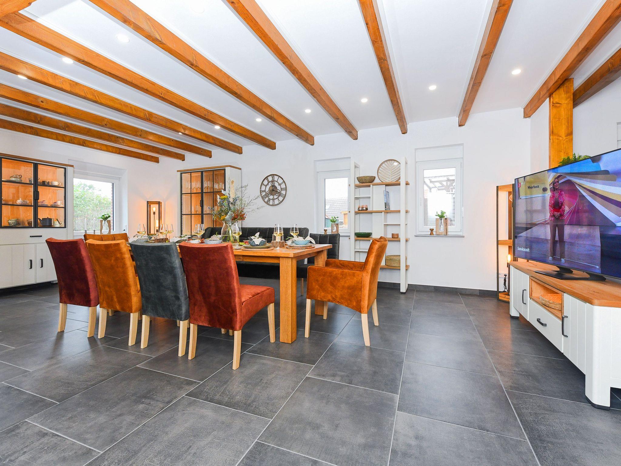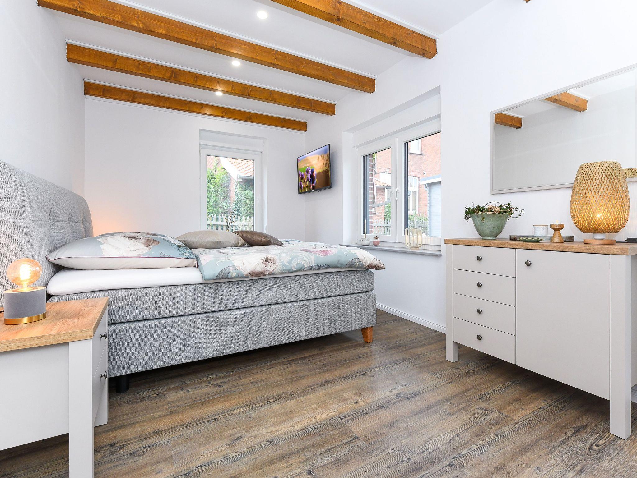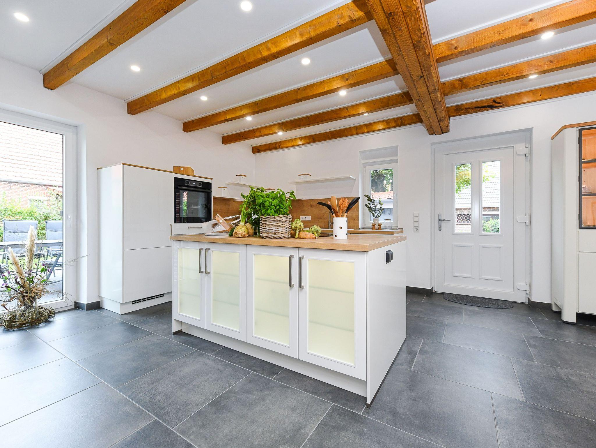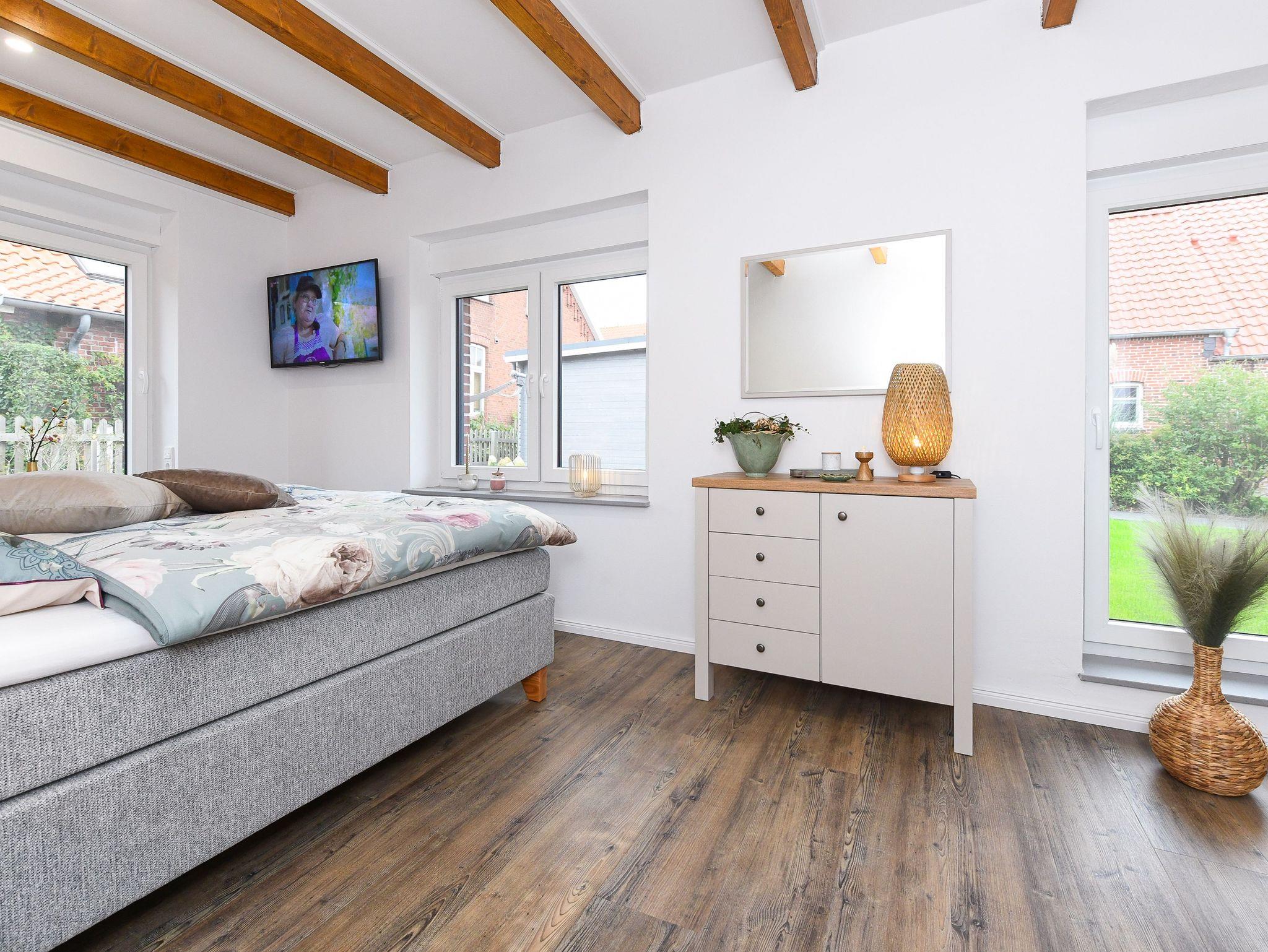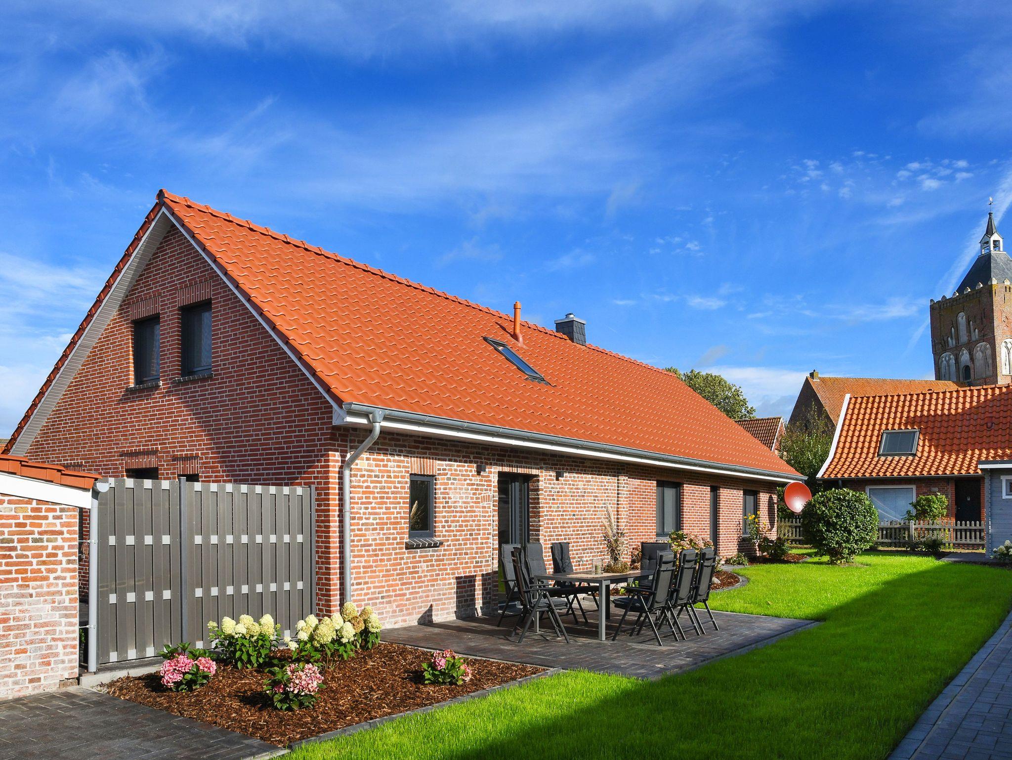 Ferienhaus Friesenkrone in Pilsum bietet modernen Komfort und zwei Terrassen, nahe dem Nationalpark Wattenmeer und Nordsee.