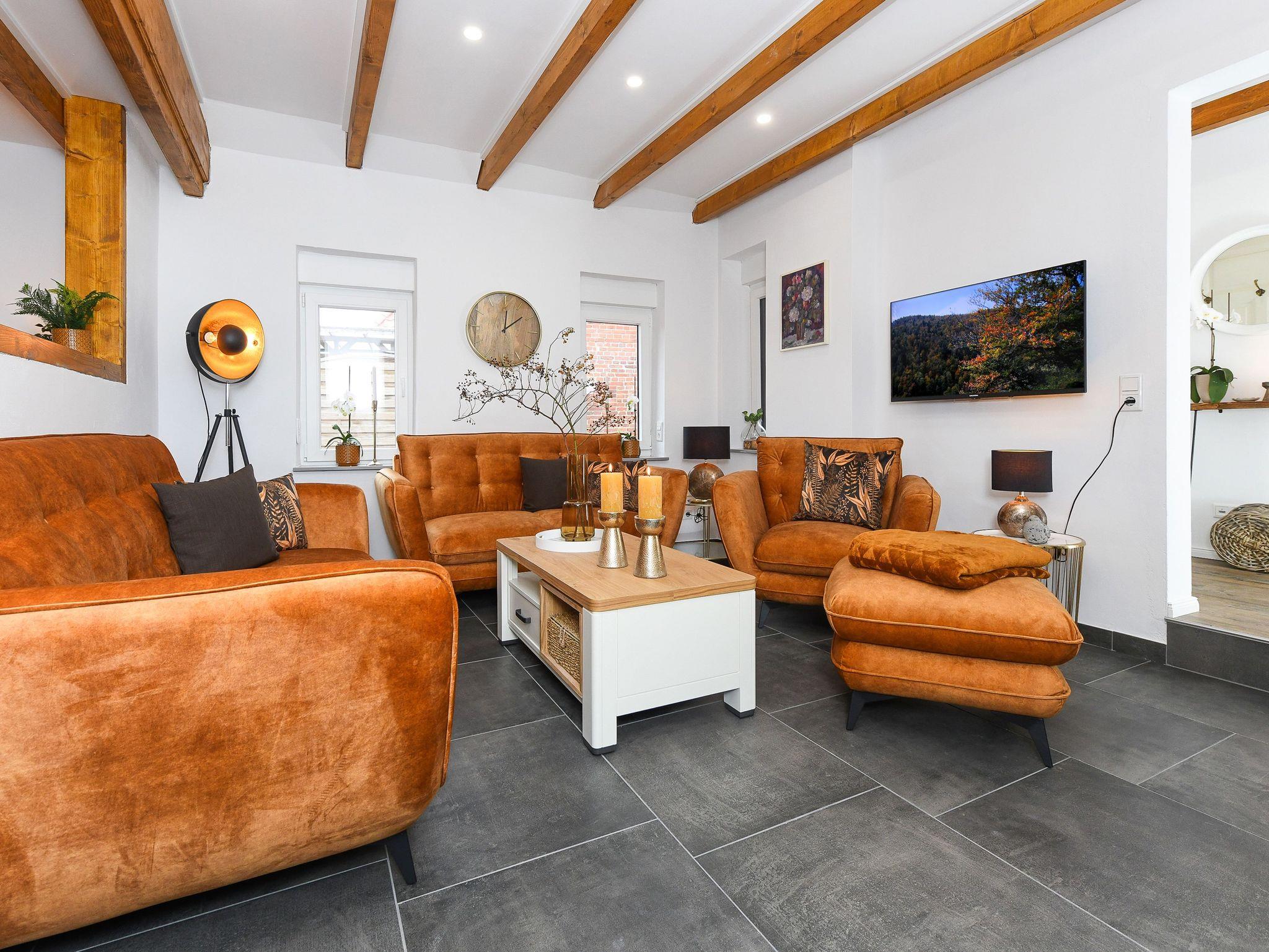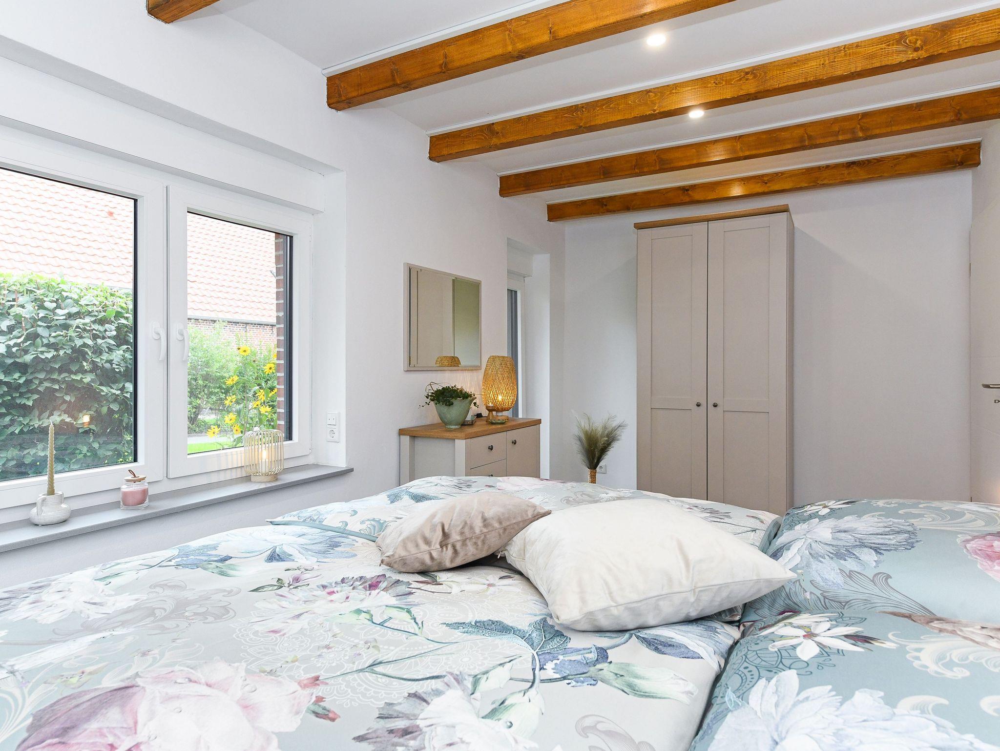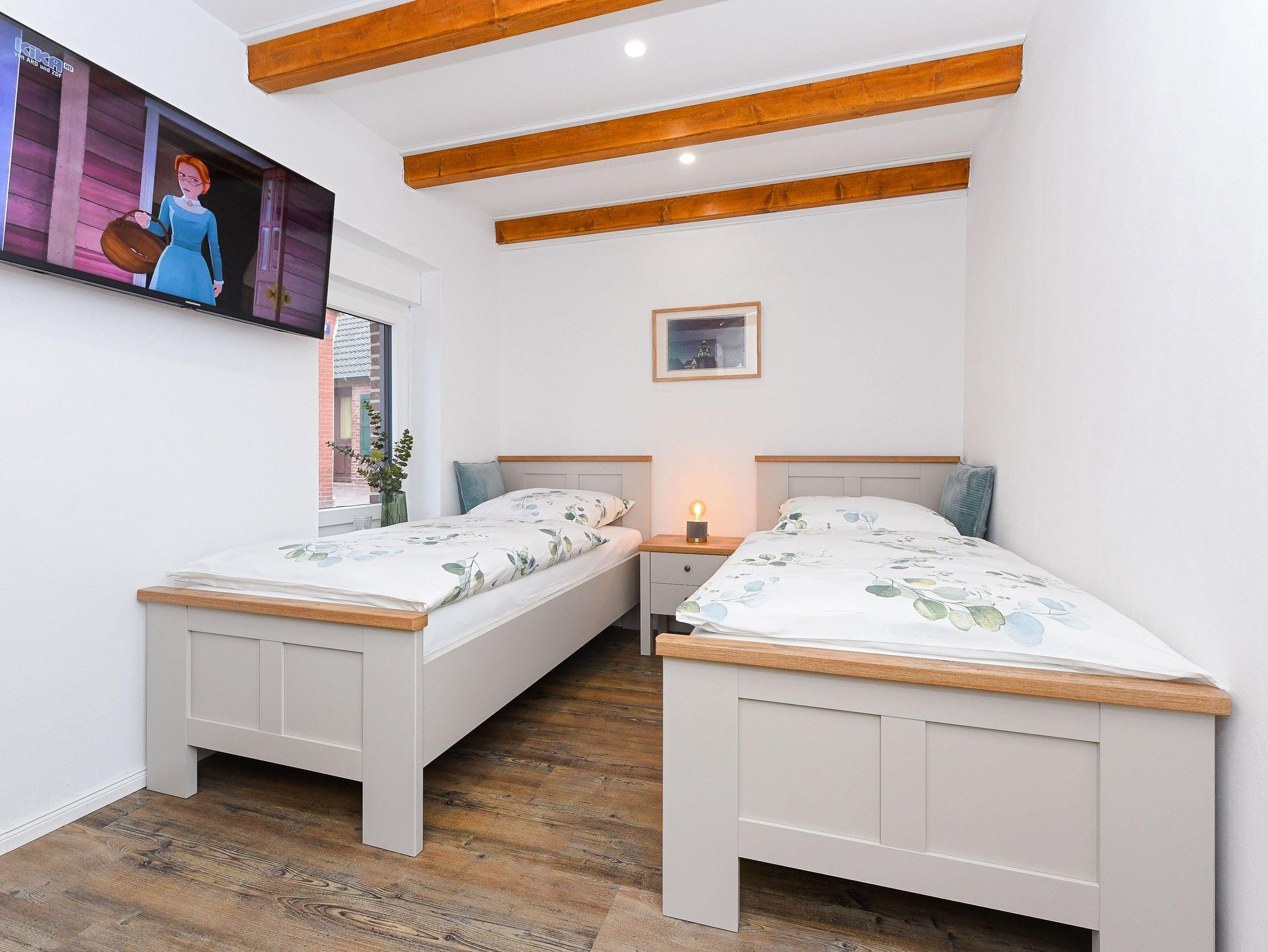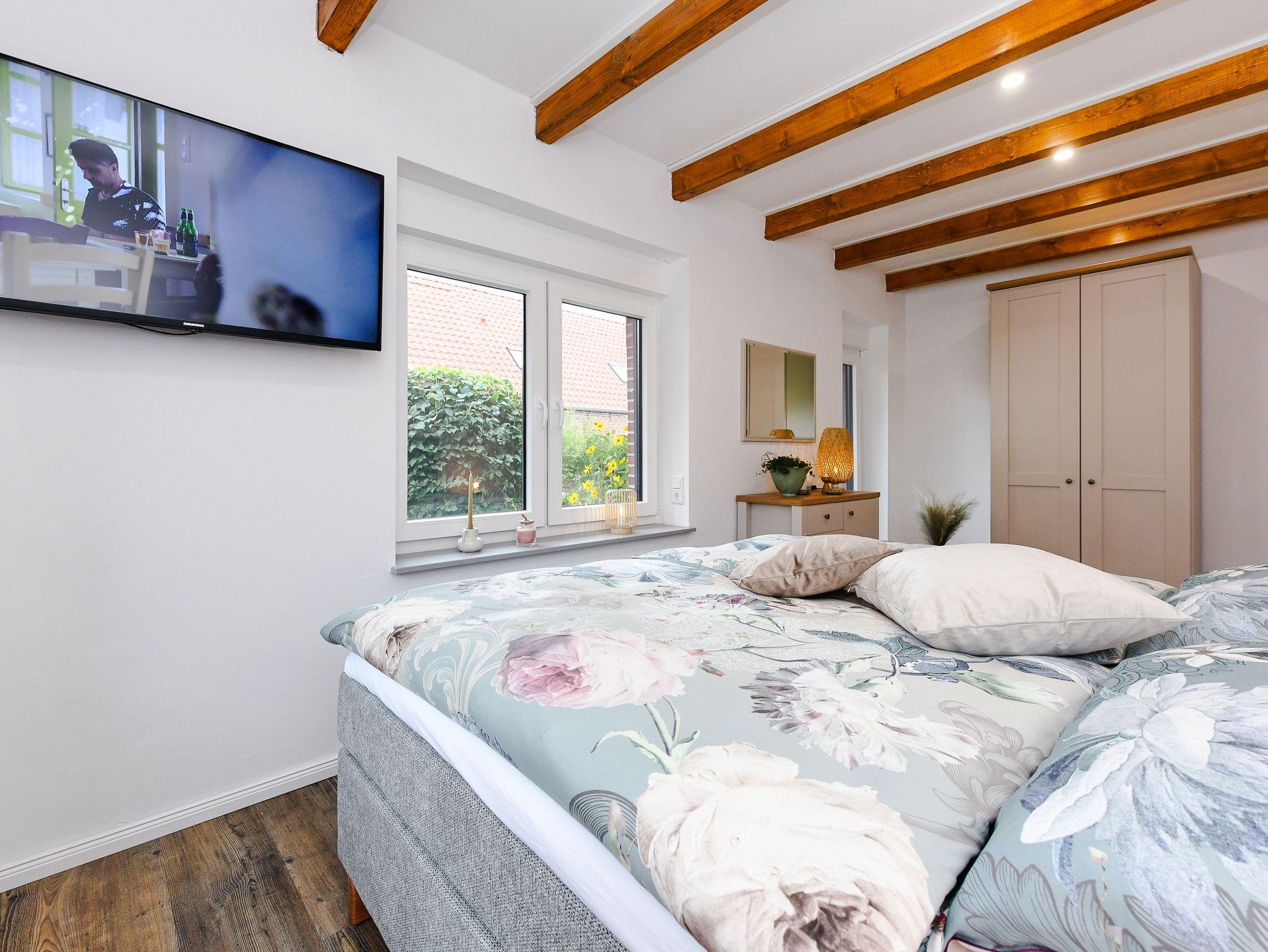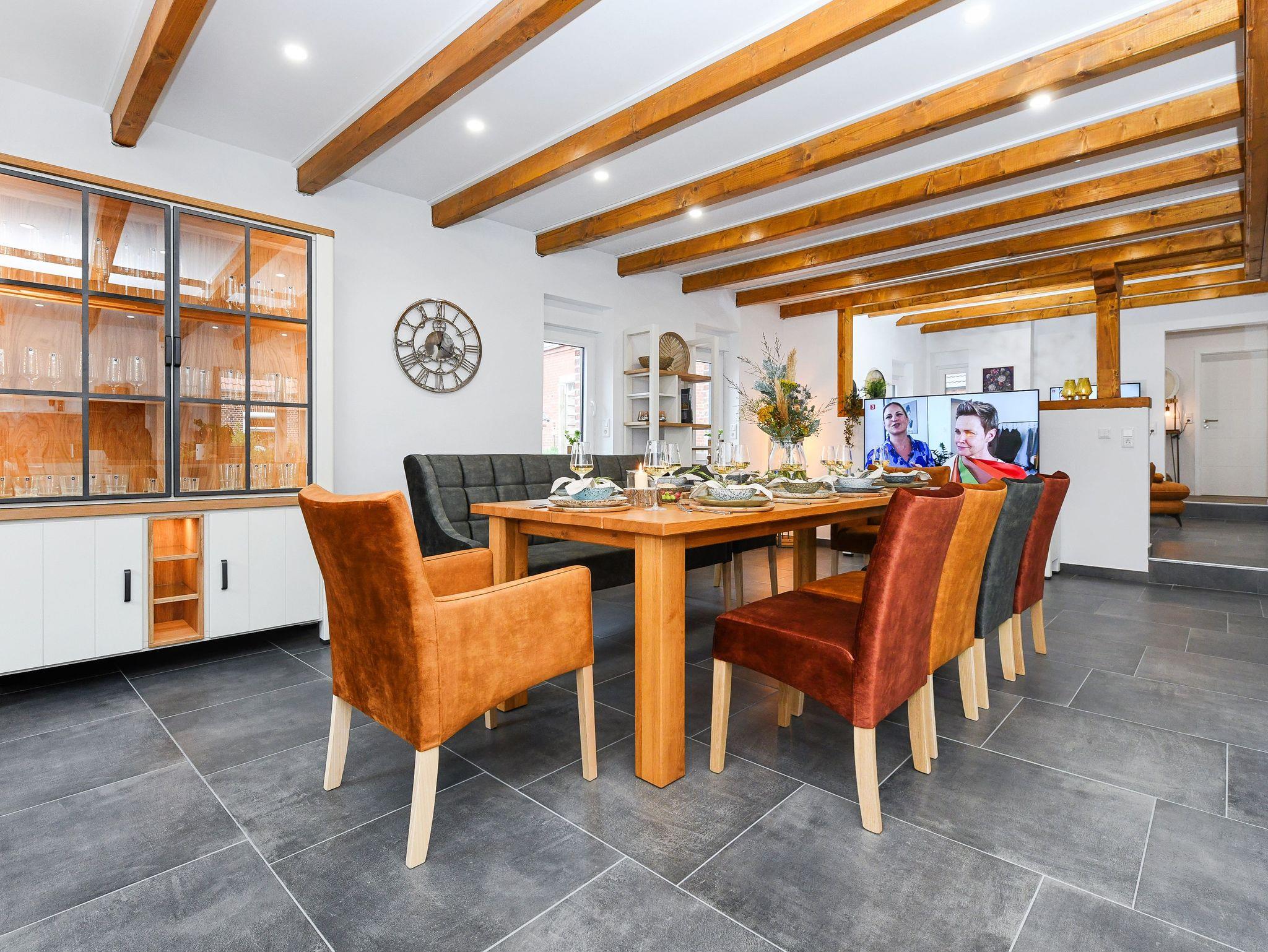 Ferienhaus Friesenkrone in Pilsum bietet modernen Komfort und zwei Terrassen, nahe dem Nationalpark Wattenmeer und Nordsee.