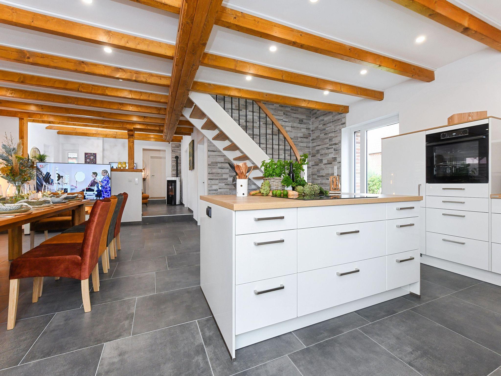 Größe ca. 160 Quadratmeter, Wohnzimmer, Küche (60 Qm Essen, Kochen und Leben), Schlafzimmer, zweites separates Schlafzimmer, drittes separates Schlafzimmer/Kinderzimmer, viertes separates, Schlafzimmer/Kinderzimmer, Badezimmer mit Dusche, 2 Waschtischen und WC, zweites Badezimmer mit Dusche, Waschtisch und WC, Erdgeschoss, Obergeschoss, 2 Terrassen, ausschließlich für Nichtraucher, Blockhaus als Abstell-/Kofferdepot, Internetzugang über WLAN möglich, optimal für 2 bis 8 Personen und zusätzlich zwei Kleinkinder.
