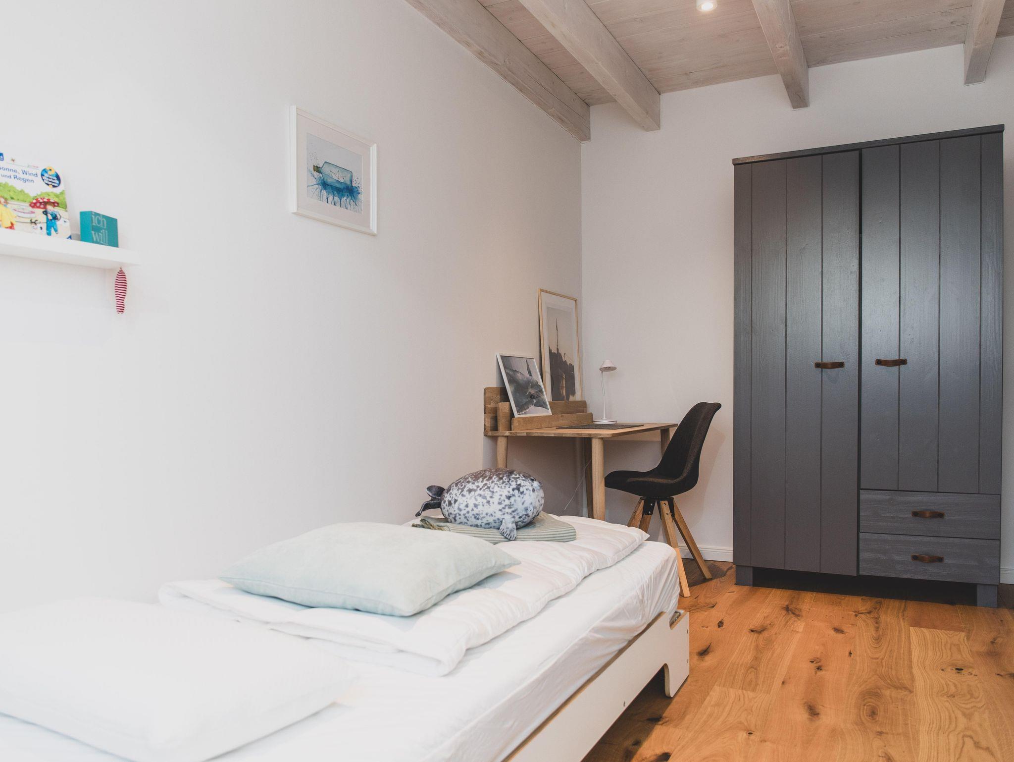 Im Schlafzimmer II befinden sich 2 große Einzelbetten (1,00 m x 2,00 m) sowie ein Schreibtsch.